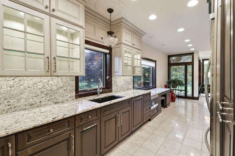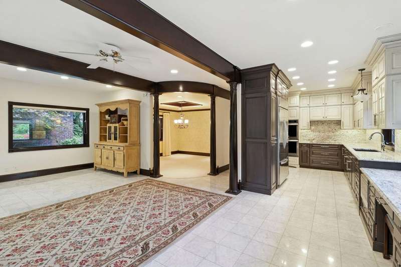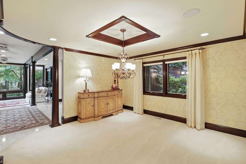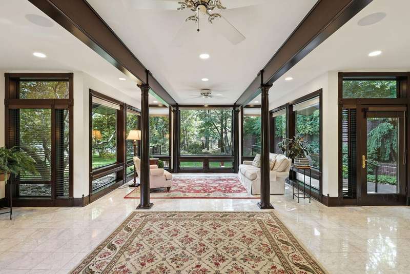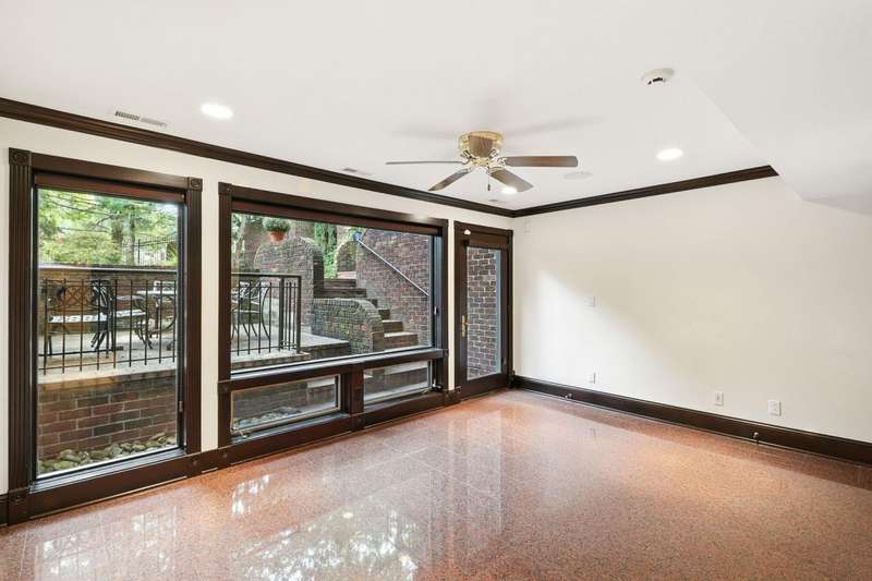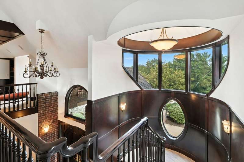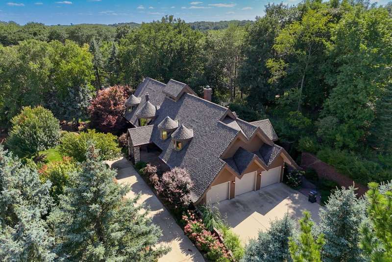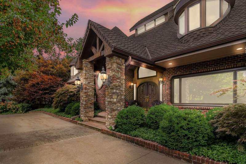 This ch�teau-style luxury residence combines timeless design with modern comfort. Set on a private hillside with nearly an acre of established landscaping, the home offers 4 bedrooms, 3 full baths, a half bath, and more than 5,000 sq ft of custom finishes.From the circular drive and stone exterior to the grand marble foyer, every detail speaks of elegance. The remodeled chef's kitchen opens to a family room with three walls of windows, while formal living and dining spaces showcase cherry paneling and a granite-surround fireplace.The primary suite is a true retreat with vaulted ceilings, a fireplace, a walk-in closet, a private deck, and a spa-inspired bath. Additional bedrooms include walk-in closets and built-in seating. The upper-level catwalk leads to a wood-paneled study/gaming room.The walkout lower level is designed for entertaining with a granite-floored recreation area, full wet bar, flexible rooms for hobbies or a guest suite, and patio/hot tub access.An oversized heated/cooled 3-car garage, advanced home systems (including security, sound, radon, central vacuum, and zoned HVAC), and extensive outdoor lighting complete this one-of-a-kind property.
