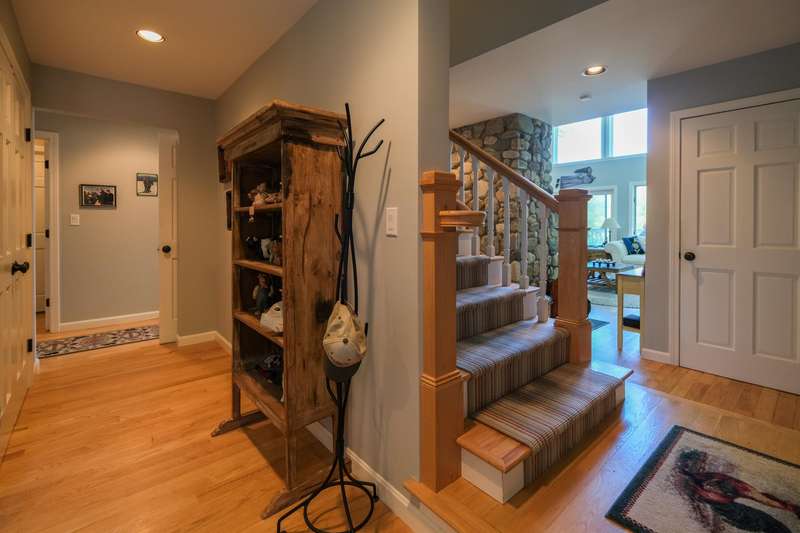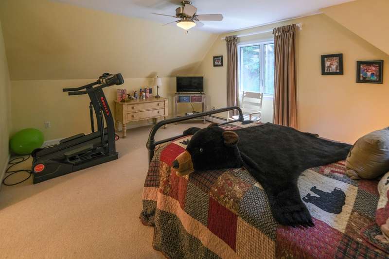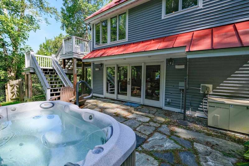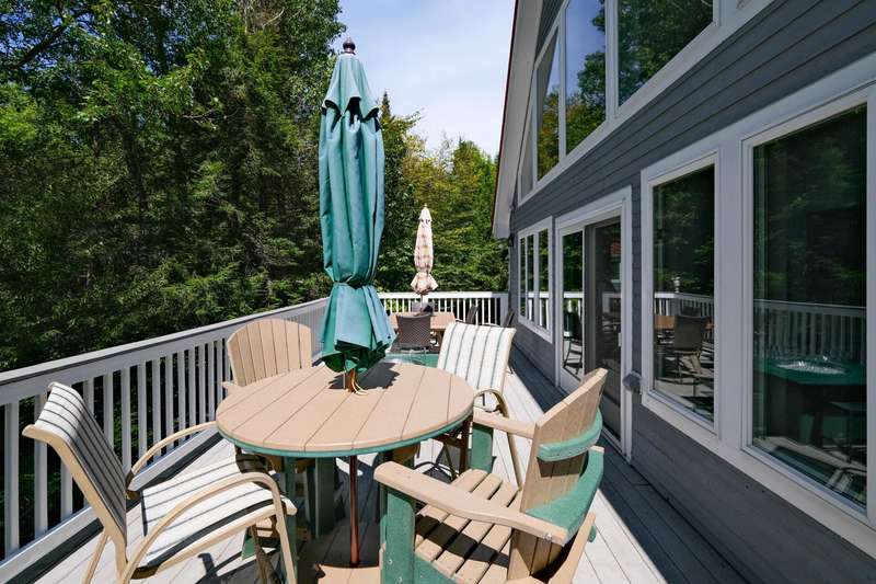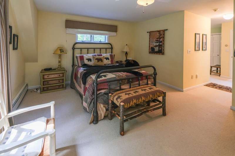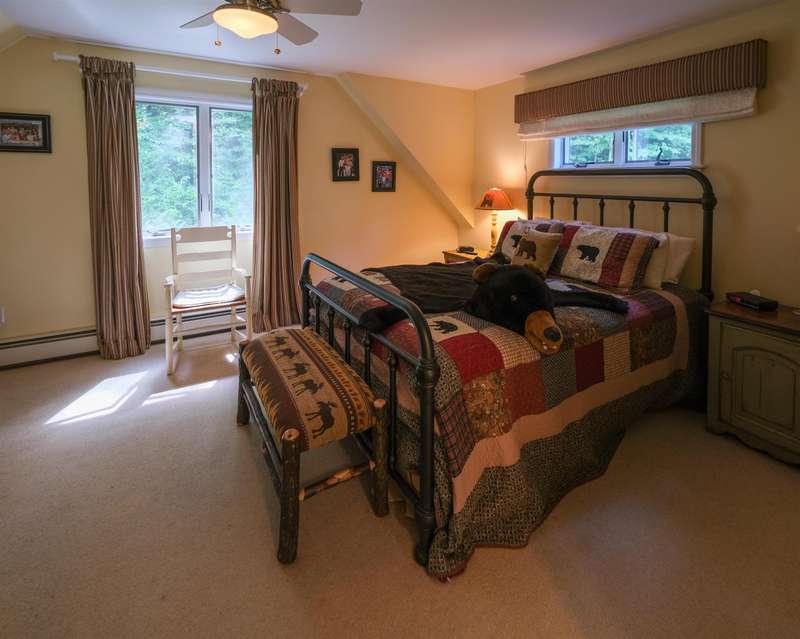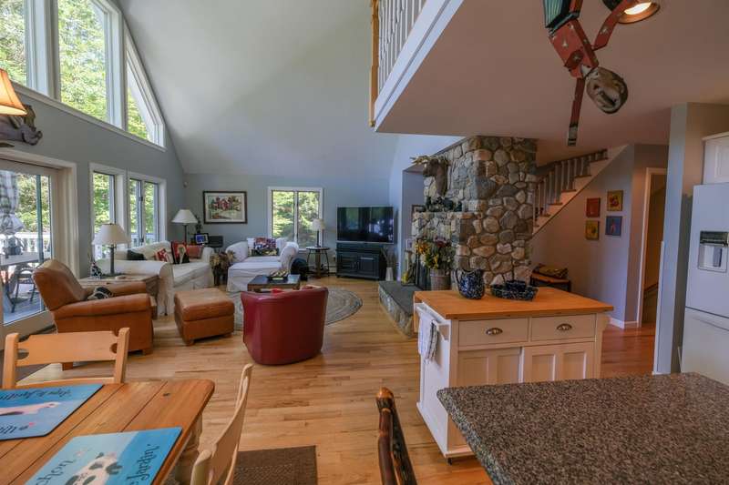 Okemo Valley home that offers total privacy and beautiful mountain views. Three floors of living include a ground-level family room (designed for both kids and adults), a game room, wood floors, quality cabinetry with a wine fridge and sink, a small office/bonus room, a 3/4 bathroom, and a laundry room. The main level features a soaring open floor plan with a stone wood-burning fireplace, two guest rooms, and a full bath. The kitchen has stone countertops and a convenient breakfast bar. The upper level is a private en-suite with a loft sitting area, office space, full bathroom, and bedroom. The front yard offers a stone wall and gardens equipped with a sprinkler system. The backyard is fully fenced with a stone patio and a hot tub surrounded by natural shade. The property offers a detached two-car garage with unfinished studio/storage space above. A must-see property view the tour for full details! Visit the Okemo real estate community today. Taxes are based on current town assessment