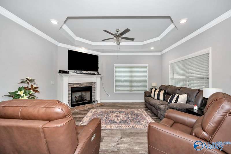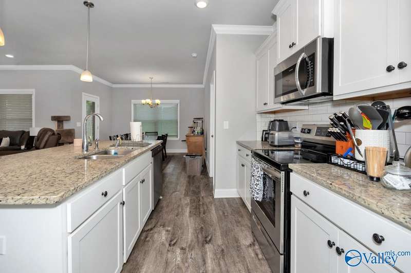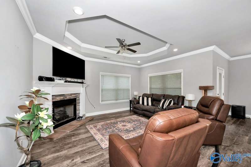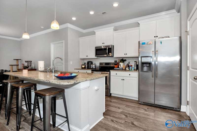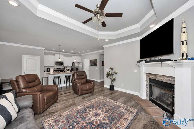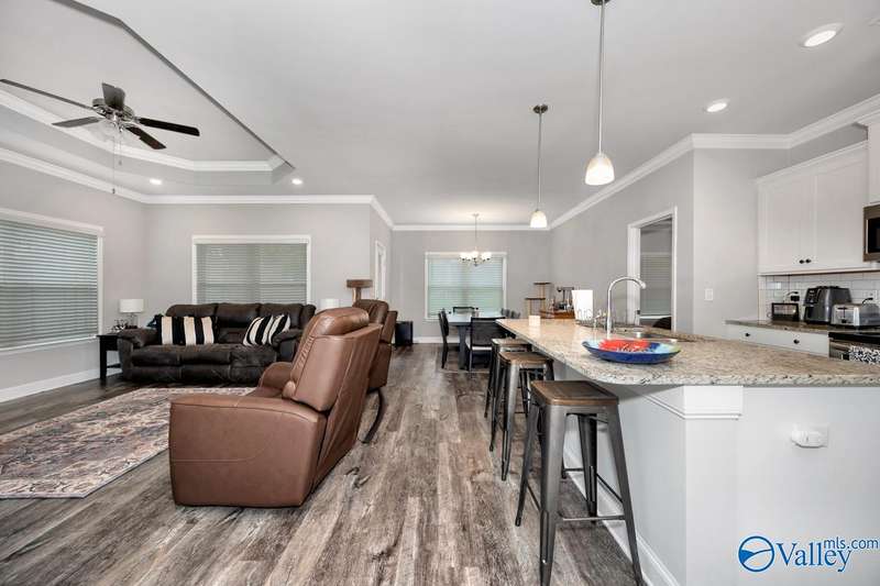 Full Brick, 3 Bedroom, 2 Bathroom Home for Sale in Madison City! Conveniently located near Trash Pandas Stadium, restaurants & amenities! 326 River Rock Dr. is a well-maintained home offering Granite Countertops & Subway Tile Backsplash in the kitchen. The dining room easily sits an 8-person dining table for entertaining. Perfect timing to cozy up by the gas fireplace in the Living Room for cool fall & cold winter weather. The Owner's Suite features trey ceilings, recessed lighting, ceiling fan & walk-in closet. Owner's Suite bathroom features separate shower, garden tub, double vanities, & private water closet with bidet. The two car garage features a high powered outlet for EV charging!