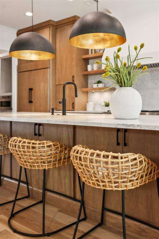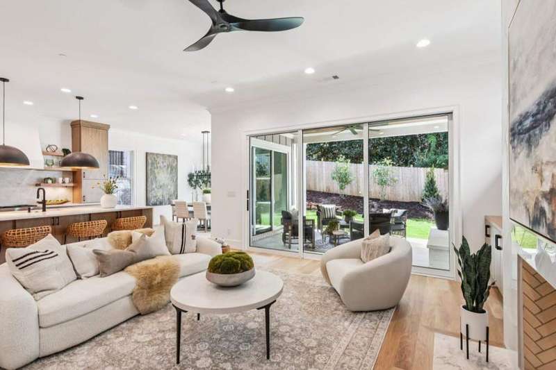 Now is the perfect time to secure your dream home near historic downtown Marietta! Completed in September 2025, this luxurious residence combines modern comfort with timeless design and is ideally located near upscale dining, boutique shopping, wine bars, and seasonal festivals. This home offers 4 spacious bedrooms, 3 full baths, a large flex room, and a dedicated office. The gourmet kitchen is the heart of the home, boasting a Sub-Zero refrigerator, Wolf gas range, Bosch dishwasher, Sharp microwave, stone countertops, custom inlaid soft-close cabinetry, walk in pantry with built in cabinets and drawers and a large prep island with open views to the family room. A stylish bar area adds convenience for entertaining and casual gatherings. Throughout the home, you'll find 5" site-finished hardwoods, abundant natural light, and designer details including high end light fixtures and upgraded tiles. The primary suite is a private retreat with a custom accent wall, while the spa-like bath showcases vaulted ceilings with beams, dual vanities, a free-standing soaking tub, a frameless glass shower, and a spacious walk-in closet with direct access to the laundry room. A main-level guest suite provides comfort for visitors, while upstairs offers two additional bedrooms plus a versatile bonus room perfect for media, play, or relaxation. Enjoy outdoor living year-round on the covered patio with a large fireplace. Built with exceptional attention to detail, this home features a 30-year architectural roof, tankless hot water heater, spray foam insulation, and rounded wall corners blending efficiency with beauty.