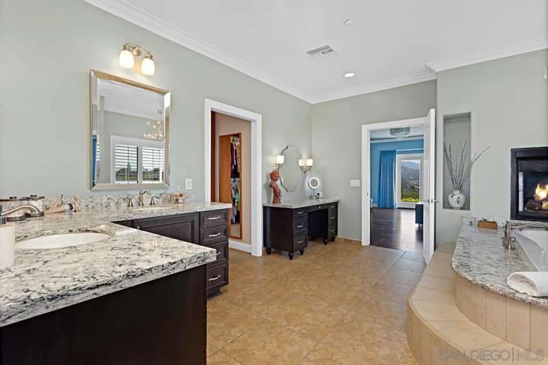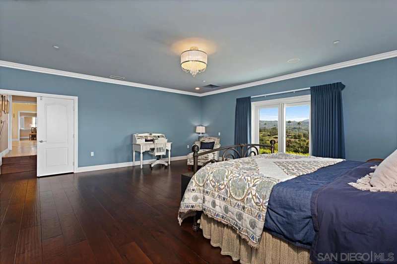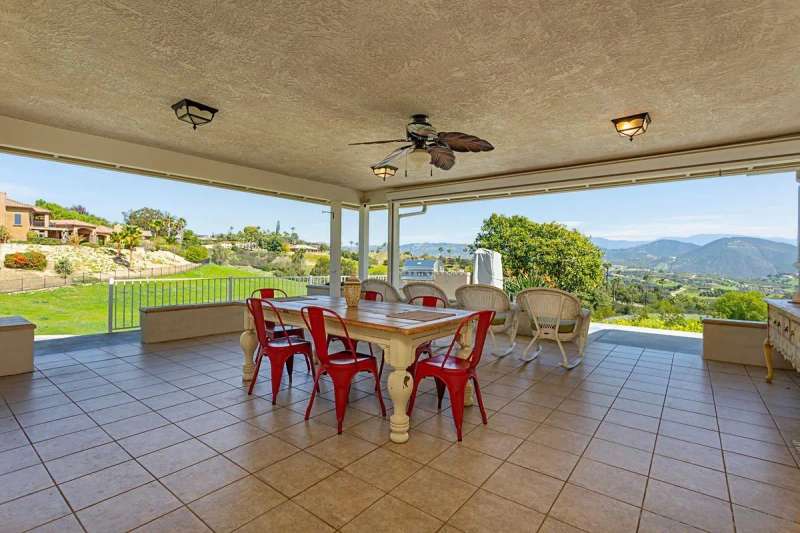 Welcome Home to Serene Country Living with Panoramic Views! Experience the perfect blend of luxury and tranquility in this stunning single-story gated home. Step through custom double wooden doors into spacious great room featuring a cozy fireplace w/custom mantle and french doors, seamlessly flowing into the gourmet kitchen. Designed for the culinary enthusiast, the kitchen boasts high-end stainless steel appliances, including a Sub-Zero refrigerator, Thermador 6-burner range w/hood, convection double ovens, wine chiller and a convenient pot filler. Granite countertops, a large island, soft-close cabinets w/pullouts, and ample storage complete the space. The main house offers a den with bay window and built-ins. 3 generously sized bedrooms, each w/ensuite bath and walk-in closet. The primary suite is a private retreat, featuring an extravagant spa-like bath w/ jetted tub, chandelier, dual-sided fireplace, separate walk-in shower, and dual quartz vanities. Throughout the home, you'll find distressed hickory wood plank and tile flooring, crown molding, plantation shutters, and newer windows. Solar tube lighting enhances a bright and airy ambiance. Paid Solar Electric w/backup. For added flexibility, a separate 1-bedroom potential ADU w/ 3/4 bath and covered courtyard provides additional living space, ideal for guests or rental income. Det. 3-stall garage offers ample storage w/available RV Parking. Covered patio w/powered shade screen w/breathtaking views, all while living in a home designed for comfort and elegance. Seller pays no electric bill!