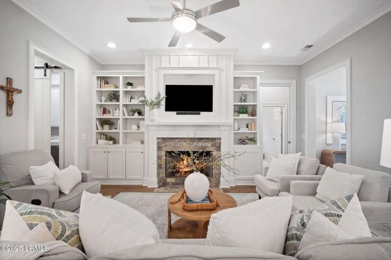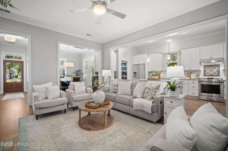 Welcome to your dream home in the sought-after Celadon community! Discover this stunning four-bedroom, three-bathroom home built by Artisan Homes that perfectly blends comfort with chic design. Step onto the welcoming front porch and enter into this beautiful home with an elegant open floor plan highlighted by the natural light and luxurious hardwood floors. The living room, anchored by a tasteful gas fireplace with custom-built shelving, offers a cozy haven for relaxation or entertaining guests. The culinary enthusiast will adore the kitchen, equipped with soft-close cabinetry, a spacious island, pantry, and a tile backsplash that provides both style and function. High-end Kitchen Aid stainless steel appliances, including a 5-burner gas range and a French door refrigerator. Convenience is key in this thoughtfully designed home with a primary bedroom suite located on the first floor. This peaceful retreat features an en suite bath and ample closet space, ensuring a private and serene space to unwind. An additional private guest bedroom and full bath on the first floor provide perfect accommodations for family or visitors. The upper level features two spacious bedrooms, a versatile sitting area, and a full bathroom, creating ideal spaces for various uses including a home office. The walk-in attic storage adds practical appeal to the attractive layout. Never worry about losing power as this home is equipped with a 13KW Home Standby Generator with 200 amp automatic switch! Easy outdoor living with a fenced backyard and a large screened back porch set among beautiful native landscaping and mature trees, perfect for enjoying Lowcountry evenings. Celadon's top notch amenities enhance this home's allure, offering a fitness center, spa, pool, tennis courts, a community garden and dog park, all just moments from charming Downtown Beaufort with its array of shops and restaurants. Experience the perfect blend of style, comfort, and community in a home that's built to impress and designed to last. Your next chapter starts here! Seller offering concessions towards closing costs, and or rate lock buydown with acceptable offer! This material is based upon information, which we consider reliable, but because it has been supplied by third parties, we cannot represent that it is accurate or complete, and it should not be relied upon as such.