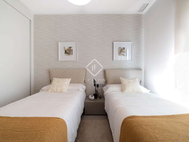 Discover your new home in an unbeatable location! This spectacular new build apartment, located in Benidorm, offers 3 spacious bedrooms, 2 full bathrooms, 100 m² of living space, and a 32 m² terrace that guarantees you can enjoy the Mediterranean climate to the fullest. Upon entering, you'll be greeted by a modern open-plan kitchen connected to the dining room and living room, from which you can directly access the terrace through elegant sliding glass doors. This design allows for abundant natural light, creating a warm and bright atmosphere. The main bedroom has an en-suite bathroom , built-in wardrobes , and direct access to the main terrace, offering privacy and comfort. The other two bedrooms share a bathroom located in the corridor. One of them also has access to the terrace, perfect for relaxing moments or gatherings with friends and family. This exclusive residential complex boasts exceptional communal areas : swimming pools, jacuzzis, a gym, a playground, sports courts, and over 1,000 m² of green areas to enjoy. The apartment also includes an outdoor parking space, all designed for your convenience. Located just a 10-minute walk from one of the best beaches on the Costa Blanca, with its fine, golden sand, this apartment is an excellent opportunity for those seeking quality of life in a privileged setting. Don't miss this unique opportunity! Come see this ideal home that combines comfort, modern design, and a strategic location.