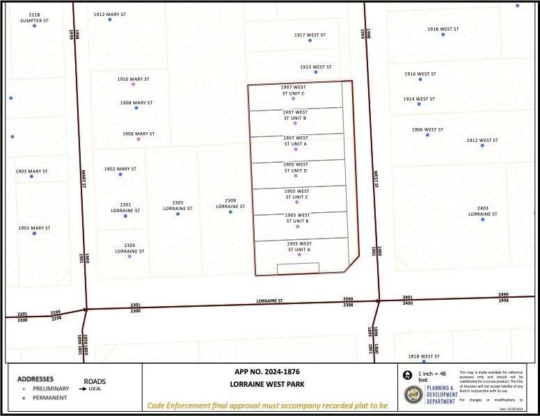 WELCOME TO 2319 Lorraine Street & 1911 West Street! Builders and investors—this is your opportunity to secure a prime development site in the heart of Houston! This expansive 18,188 SF lot includes two replotted addresses and is fully replatted for 7 new construction patio homes, making it a turnkey development opportunity. Located just minutes from Downtown Houston, this property is ideally positioned in one of the city's fastest-growing urban corridors. The area is surrounded by new construction, reflecting strong demand and long-term growth potential. Enjoy close proximity to major destinations such as the East River Development, East River 9 Golf Course, and other thriving commercial and entertainment hubs. Whether you're planning to build for resale or long-term investment, this lot offers unparalleled flexibility and upside in a rapidly appreciating neighborhood. Don’t miss this rare opportunity to develop in one of Houston’s most desirable infill locations!