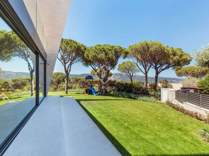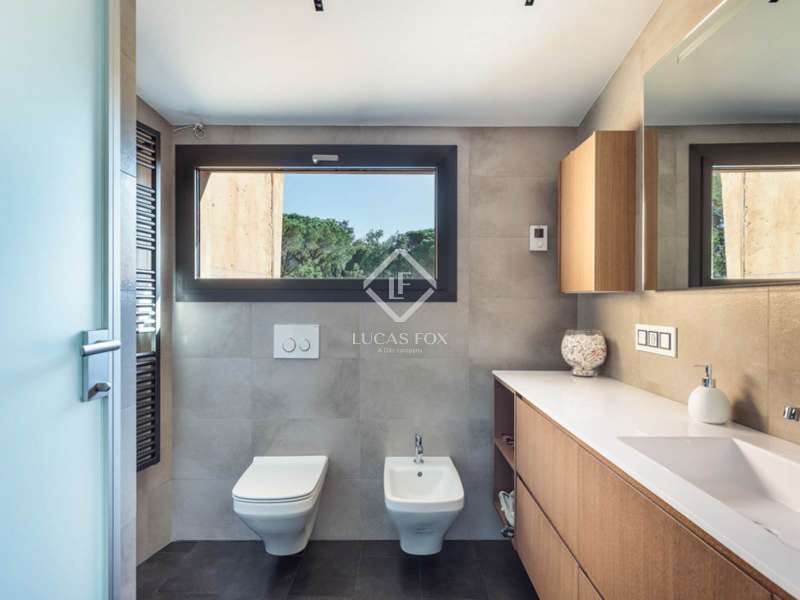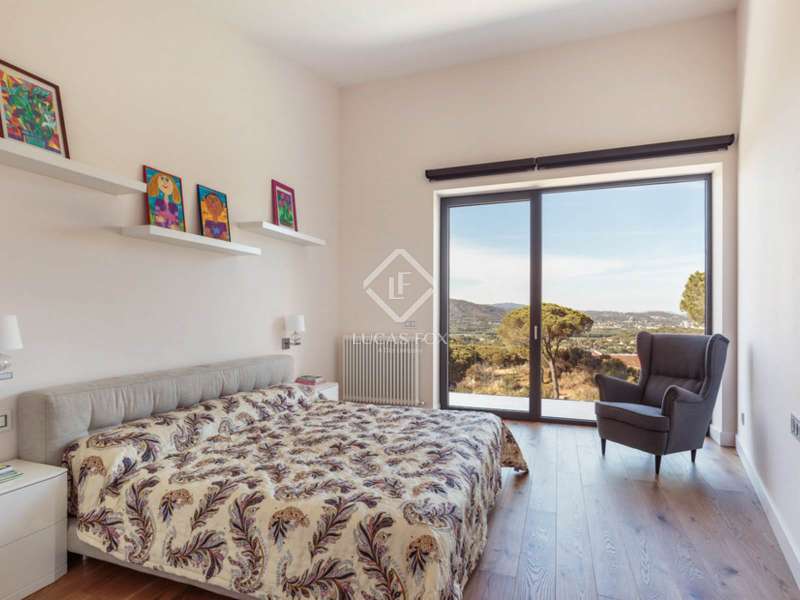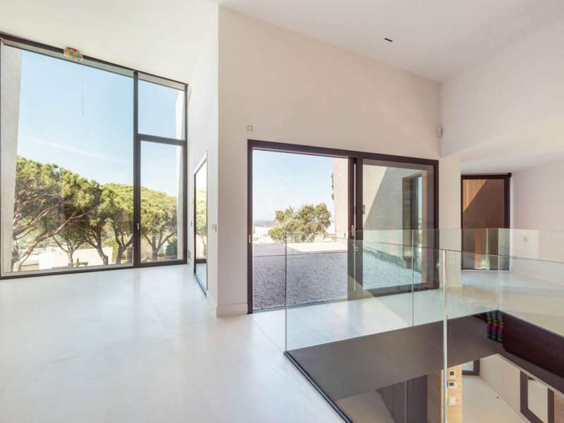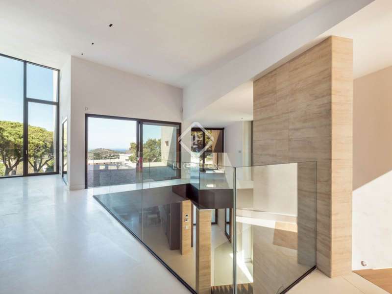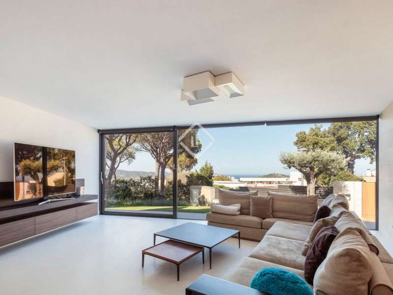 Beautifully designed, modern property for sale built in the year 2016. This property, located on a hilltop in the 'Baterias' area of Sant Feliu de Guíxols, combines stunning architecture with incredible sea and mountain views to create a truly special home on the Costa Brava. Entrance is via the ground floor of the property which comprises the kitchen, living area and dining area in one open space maximising natural light and offering incredible views from Palamos to S'Agaro. There are also 2 suites located on this floor. On the lower ground floor we find a further living area, a suite, bedroom, bathroom, sauna and laundry room. The 2 remaining suites are located on the first floor along with yet another spacious living area with access to a wonderful terrace from which the splendid sea views can be appreciated. To the front of the property a newly laid lawn with a children's play area, rockery garden and trees provide pleasant outdoor space and there is also a 20m pool with terraces for relaxing in the sun. The plot, which measures over 1,400m², borders onto protected woodland area, a peaceful and private home. There is a high-level security system and a lift for total security and comfort. An exciting option for families or investors seeking a modern, spacious property in a peaceful location on the Costa Brava.