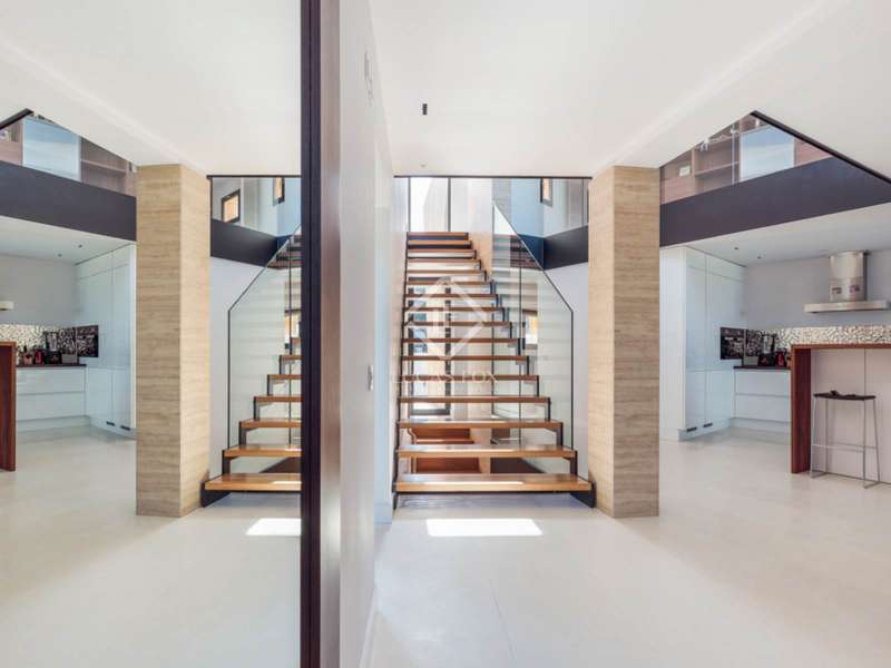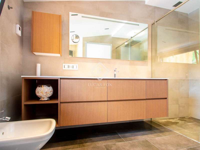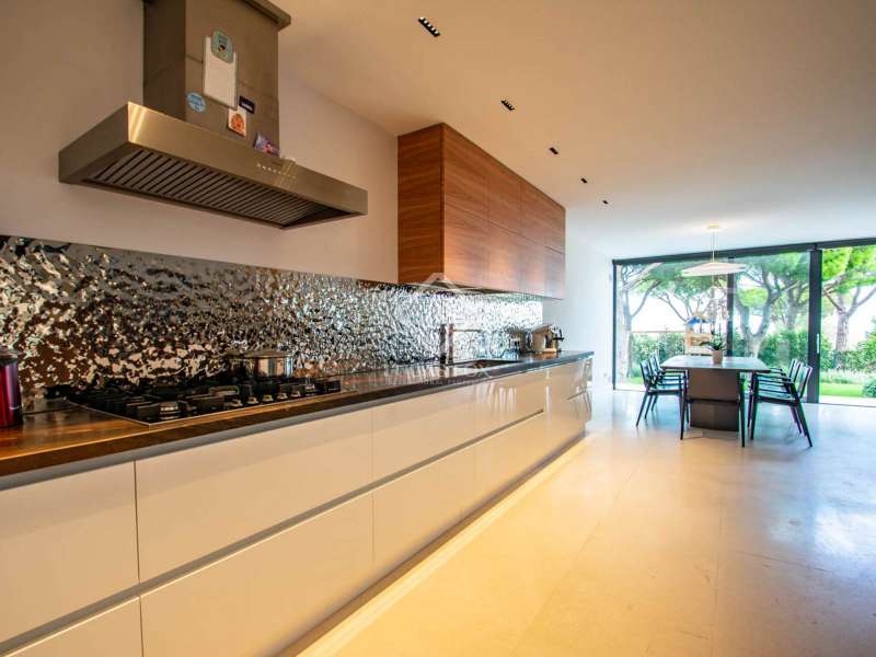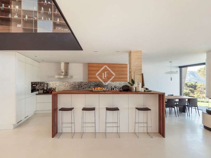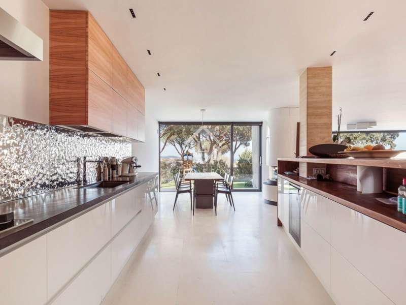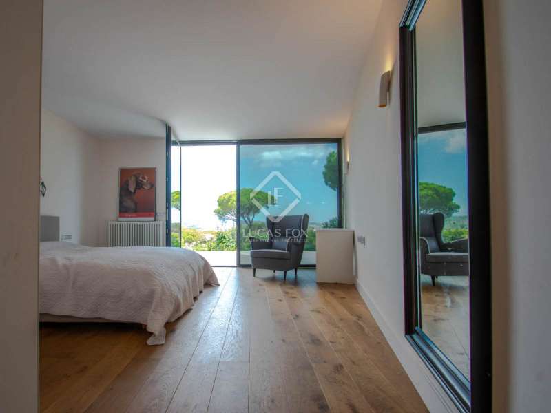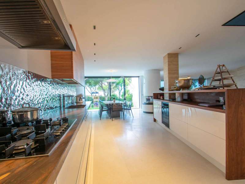 Beautifully designed, modern property for sale built in the year 2016. This property, located on a hilltop in the 'Baterias' area of Sant Feliu de Guíxols, combines stunning architecture with incredible sea and mountain views to create a truly special home on the Costa Brava. Entrance is via the ground floor of the property which comprises the kitchen, living area and dining area in one open space maximising natural light and offering incredible views from Palamos to S'Agaro. There are also 2 suites located on this floor. On the lower ground floor we find a further living area, a suite, bedroom, bathroom, sauna and laundry room. The 2 remaining suites are located on the first floor along with yet another spacious living area with access to a wonderful terrace from which the splendid sea views can be appreciated. To the front of the property a newly laid lawn with a children's play area, rockery garden and trees provide pleasant outdoor space and there is also a 20m pool with terraces for relaxing in the sun. The plot, which measures over 1,400m², borders onto protected woodland area, a peaceful and private home. There is a high-level security system and a lift for total security and comfort. An exciting option for families or investors seeking a modern, spacious property in a peaceful location on the Costa Brava.