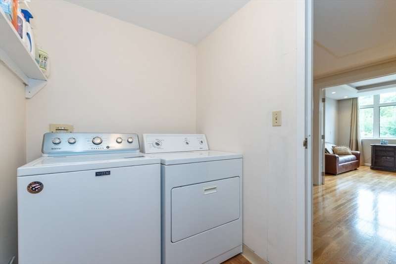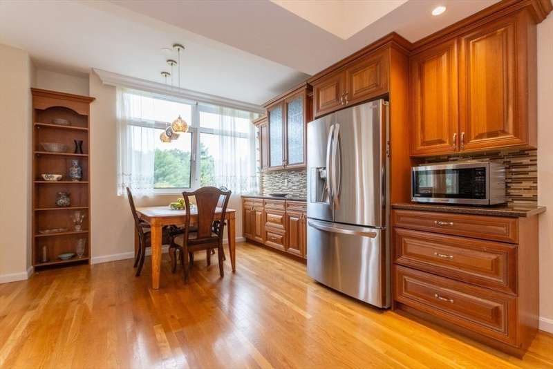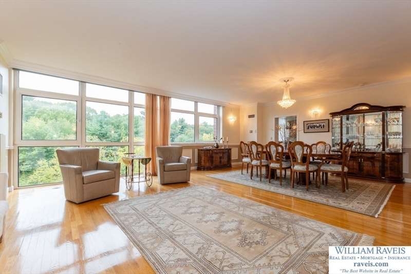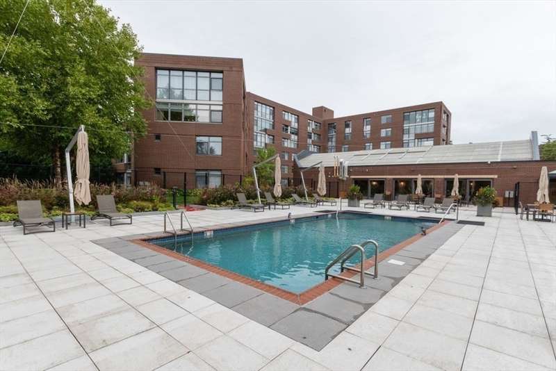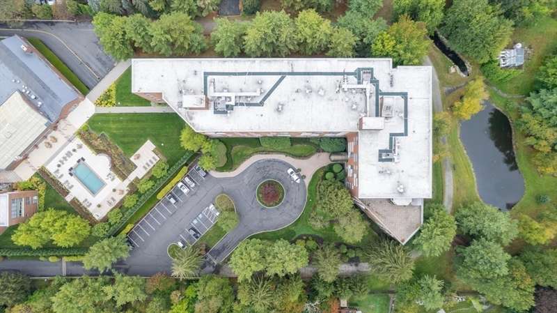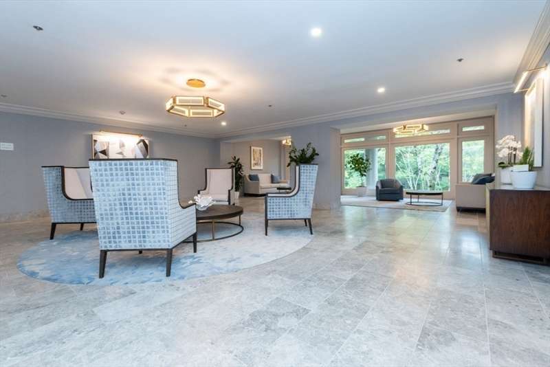 Welcome to the ultimate luxury at Hampton Place! Experience effortless entertaining in this extra spacious back-facing corner unit - the epitome of elegance. It offers grand Living / Dining room complemented by architectural details, hardwood floors, a fireplace, abundant closets, and a full in-unit laundry room. The primary suite features a spa-like marble bath w/ whirlpool tub, separate shower, and double vanities. A second en-suite bedroom, separate office/den, and powder room add versatility. Enjoy coveted serene views of the pond, rare four-car garage parking, extra storage, and a full time concierge. Renovated "Country Club" common area facilities offer indoor and outdoor pools, a spa-inspired fitness center w/locker rooms & sauna, grand function room, numerous inviting entertainment spaces. Ideally located near Wegmans, The Street, Chestnut Hill Mall, public transportation and major roads. This residence offers space, elegance, and easy living!