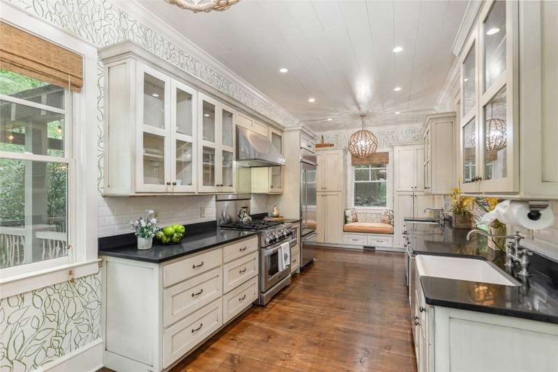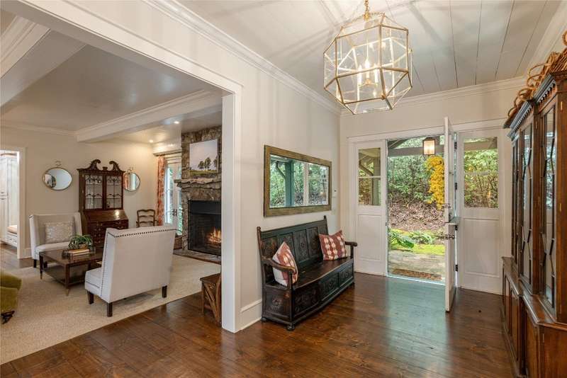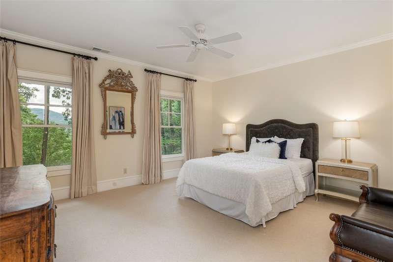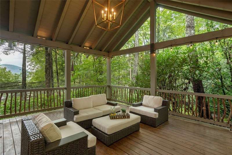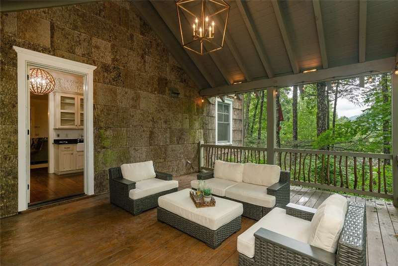 Nestled in the coveted Chattooga Club, one of the most sought-after communities, this delightful, fully furnished home (with few exceptions) combines charm, comfort, and stunning mountain views. Ideally located five minutes from the vibrant town of Cashiers - with its shops, restaurants, brewery, and picturesque Village Green - this property offers the perfect blend of privacy and convenience. Designed with spaciousness and comfort in mind, this home boasts multiple ensuite bedrooms, ensuring privacy and relaxation for family and guests. The inviting great room features soaring ceilings, a beautiful stone fireplace with a gas starter, and an open-concept design that flows seamlessly into the dining area - ideal for intimate gatherings and larger entertaining. The galley kitchen, a dream for the home chef, is complemented by a covered porch with its own wood-burning fireplace, perfect for year-round enjoyment. The primary suite is a true sanctuary, offering a private sitting area with built-in bookcases, a luxurious bathroom with a garden tub, a separate shower, dual vanities, and a spacious walk-in closet. Upstairs, additional sitting areas, a media room/study, and generously sized guest rooms with their own ensuite bathrooms ensure comfort and privacy for all. Step outside to take in the breathtaking views of Rock Mountain and Chimney Top, two of Cashiers' most iconic vistas. The expansive deck and covered porch provide the ideal setting to unwind and savor the beauty of the home's surroundings. The property is beautifully landscaped, with a moss garden adding to the serene and tranquil atmosphere. Additional features include a circular driveway, a porte cochere, ample guest parking, and a generator for added peace of mind. The home's cedar shake siding and stone accents create a welcoming curb appeal, while the interior boasts hardwood floors, generous closet space, and plenty of storage. As an invited member of Chattooga Club, enjoy a wealth of amenities, including fine dining, croquet, tennis, pickleball, bocce ball, a putting green, spa treatments, and a heated saline pool with a covered pavilion. Families can take advantage of children's play areas, and members can relax at Mac's View scenic overlook and the Victory residential garden. This exceptional home offers the perfect combination of privacy, space, and mountain living - minutes from Cashiers.
