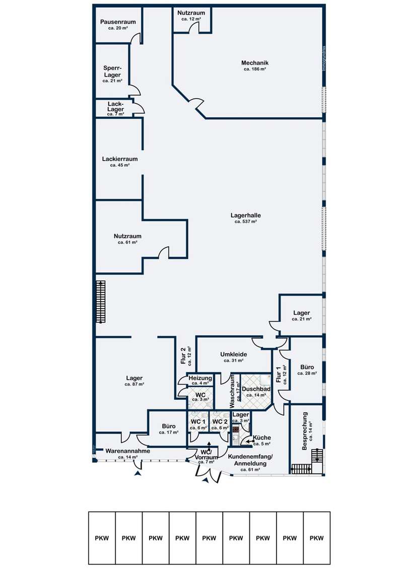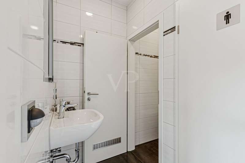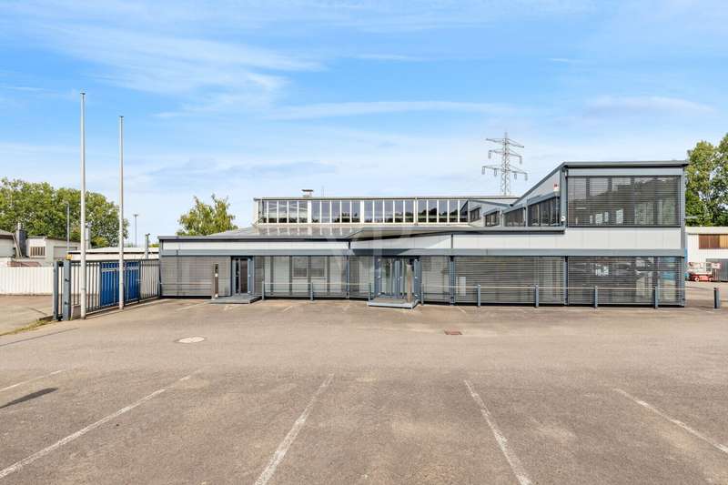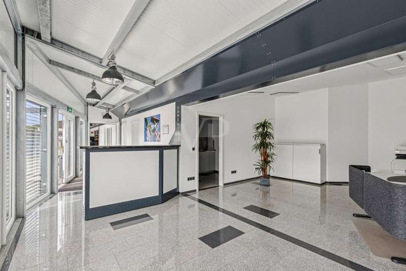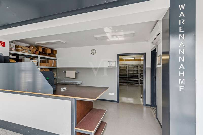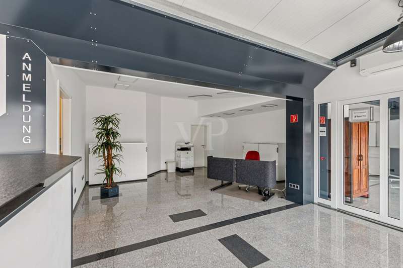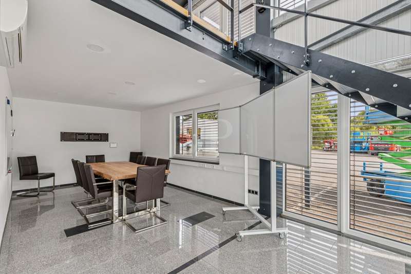 Welcome to your new commercial unit - where function meets fascination! With its urban look, stylish design details and a generous area of approx. 1,400 m², this modern commercial unit impresses with its well thought-out room structure and versatile usage options. The front section from 2019 was built as a modern new building in a trendy industrial style. A striking sheet metal façade with durable sandwich panel cladding gives the building character and a professional appearance. Generous window areas with electric external blinds provide light, security and a pleasant working atmosphere. Inside, sophisticated functionality meets contemporary design. The reception area with a custom-built customer reception desk is both inviting and efficient, while on the upper floor an open 360° office with fine end-grain parquet flooring and sweeping views as well as a high-quality meeting room create space for creativity and communication. At the same time, the operational area of the new building offers ideal conditions for logistical processes: short distances, clear processes and a direct connection to the adjacent warehouse enable smooth handling of all delivery and order-related processes. The warehouse, built in 1990, offers enormous potential - whether for production, storage or assembly. Among other things, it is equipped with a paint booth including a crane, as well as two indoor cranes, each with a load capacity of 5 tons and an impressive span of 25 meters. Thanks to two electrically operated roller shutters with remote control, deliveries can be made easily at any time, even with larger vehicles or trucks. This property is the perfect symbiosis of modern architecture, well thought-out planning and flexible use. It is ideal for companies that want to combine office, storage and production space in a single, prestigious location - and value style, efficiency and sustainability.