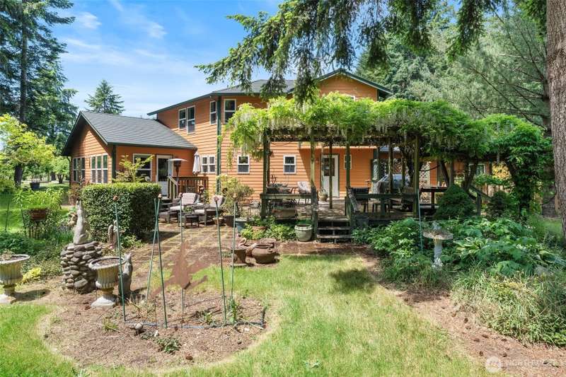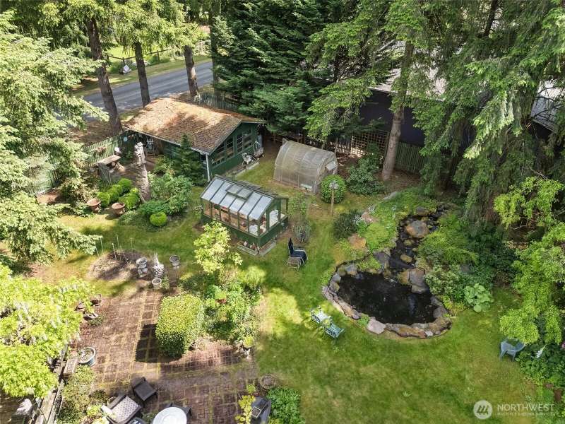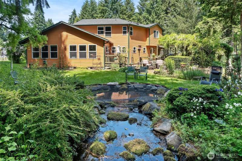 Huge price drop!!! See this gorgeous home before it's gone. Welcome to your private, incredibly landscaped, oasis on 1.1 acres! This 2,741 sq ft home offers 3 bedrooms, 2.5 baths, and incredible outdoor living. The kitchen beautifully updated and includes a wonderful Viking range. The home includes flex spaces, currently used as office, craft room and exercise room with seperate entrance. Spacious Primary overlooks pond and backyard. Outside, enjoy a landscaped yard with a tranquil pond with cascading waterfall, a wisteria-covered patio, and a basketball court. Outbuildings include a greenhouse, shop, and two sheds. An upgraded metal tile roof adds lasting durability.