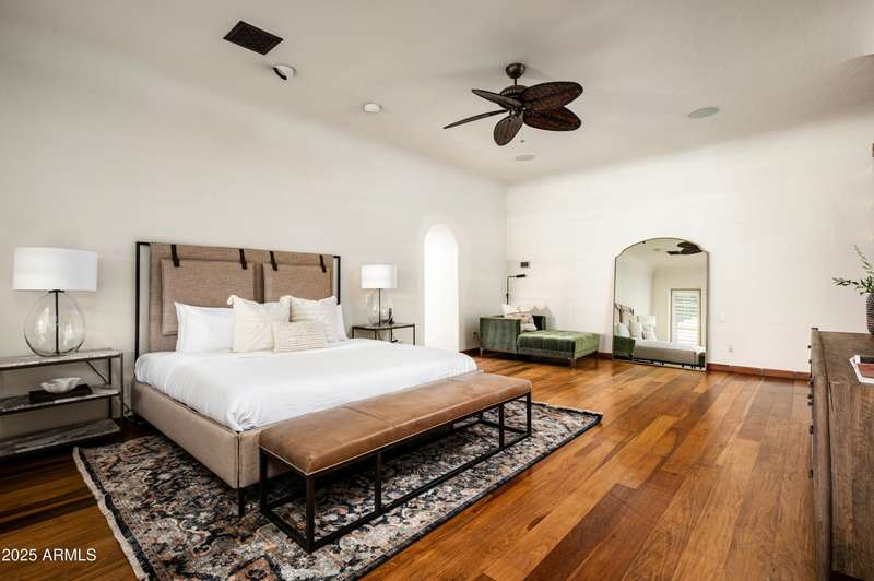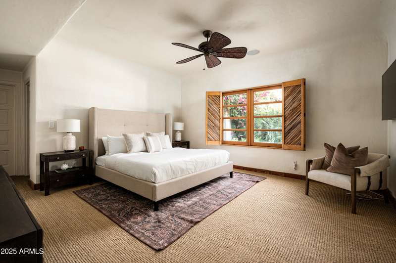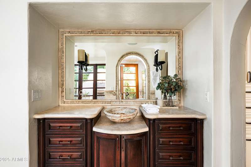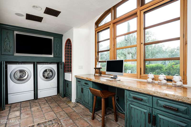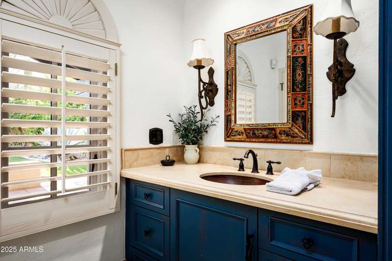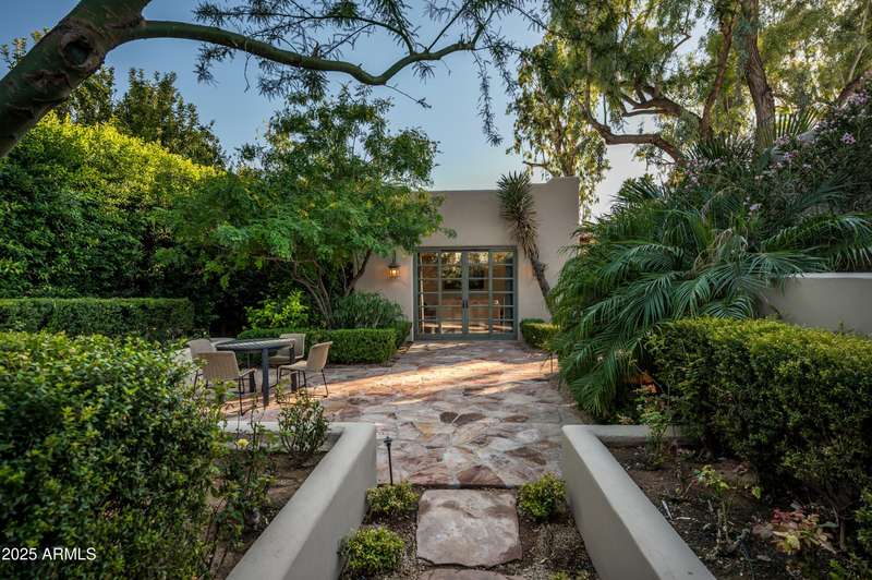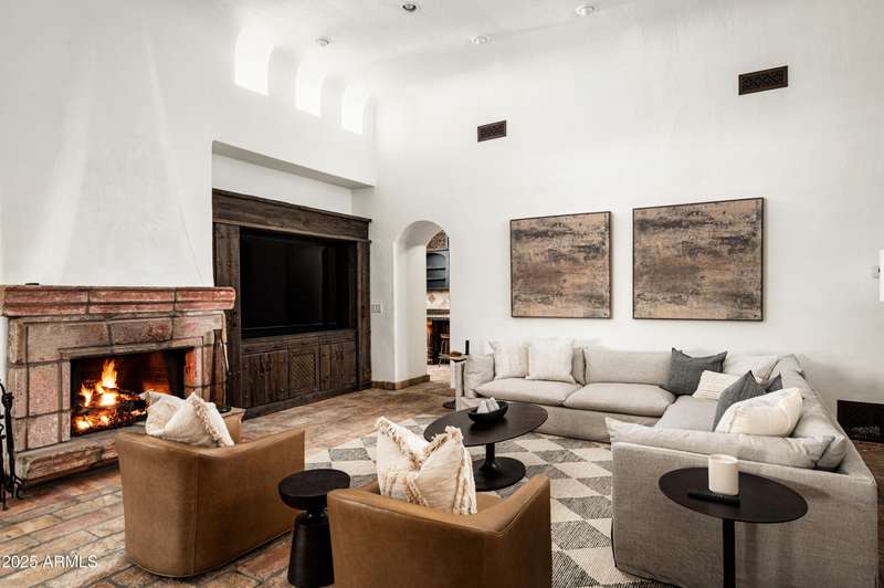 A Timeless Masterpiece in the Heart of Paradise Valley! Tucked away at the base of Camelback Mountain, this one-of-a-kind estate captures the essence of Arizona living with a bold embrace of authentic Southwest design. Thoughtfully crafted by Lash McDaniel, a Phoenix Home & Garden Master of the Southwest, and built with precision by Kitchell, every inch of this stunning residence tells a story of artistry, heritage, and intention. Classic stucco walls, red tile roofing, and hand-carved wood details create a striking first impression. A winding Saltillo-tile path and private wooden gate lead to a lush, fountain-adorned courtyard setting the tone for the tranquil, transportive experience that lies beyond. Inside, you'll find curated textures and custom elements at every turn from reclaimed French roof tile flooring and ornate ironwork to dramatic vaulted ceilings and archways. A hexagonal entry with soaring ceilings gives way to the sun-filled great room, where clerestory windows, hand-carved saguaro rib shutters, and a grand stone fireplace establish a warm yet elevated ambiance. Seamless indoor-outdoor flow is enhanced by vintage screen doors and bespoke hardware that open to expansive covered patios. Entertain with ease in the stunning chef's kitchen beneath a vaulted brick ceiling, where rustic beams frame clerestory windows and artisan stonework surrounds the custom range hood and fireplace. High-end appliances, a live-edge granite island with copper sink, and a butler's station with built-in Miele coffee maker elevate every culinary moment. Just off the kitchen, a generous laundry room and access to one of two 2-car garages make daily living effortless. The owner's suite is a private sanctuary, marked by handcrafted wooden doors, serene sitting areas, and patio access that leads directly to the pool. The spa-like bath features radiant heated floors, an onyx soaking tub, and a peaceful courtyard with fountain and outdoor showeryour own private resort. With multiple guest suites, a charming office with kiva fireplace, a detached fitness center, and a separate guest casita, this estate offers unparalleled flexibility. Entertain beneath the vaulted outdoor ramada with fireplace, grill, and dining space, or unwind beside the 75-foot saltwater lap pool accented by tiled spillways, sculptural agaves, and a watchful lion carved into the wall. Set on a full acre, this property is both a peaceful retreat and a functional entertainer's dreamsurrounded by lush landscaping, citrus trees, tranquil walkways, and vibrant outdoor living spaces. This is not just a homeit's a legacy. A timeless blend of strength, beauty, and soul in the very heart of Paradise Valley.
