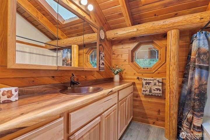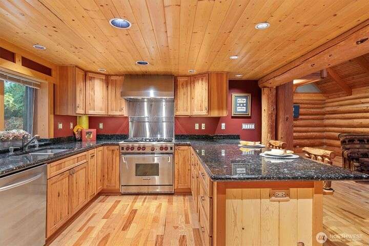 PRIME Location on 1.6 Acres in the Heart of Woodinville! Nestled just minutes from Wine Country, This charming LOG home offers the perfect blend of Rustic Character & Modern Updates. Thoughtfully Remodeled Kitchen shines w/a 6-burner Wolf range, Granite counters,2 Lazy Susans, Custom lighting, Generous Breakfast bar, Newer Flooring & Gorgeous Etched Entry Door. The Soaring ceilings & Great room design create an airy, open feel, plus an office/den. Updated Main Bath w/New Flooring, New Cabinet, New Countertop, New Sink & Fixtures! ATTENTION Hobbyists, Collectors, or Car Enthusiasts, this property is a true DREAM: massive 48 x 30 garage/shop w/ loft and storage, PLUS an additional 20 x 16 garage/shop with attached Carport. Room for RV & MORE!