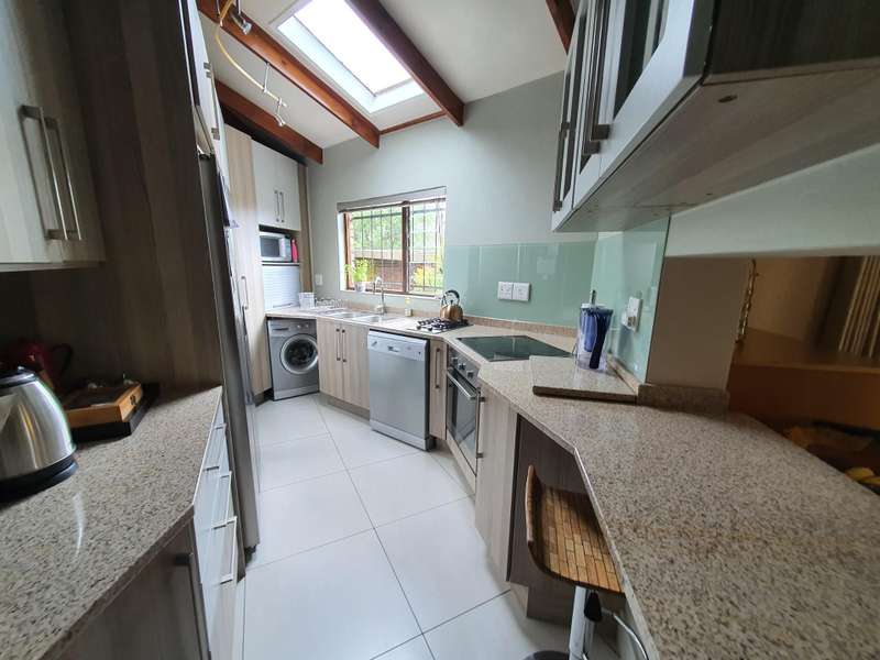 Its not often that a home so special and different comes onto the market. Entering the house through the glass walled sun room , you will be amazed by the views. The open plan dining room, living room area with a fire place and beautiful focus wall of stone leads to the compact but well fitted modern kitchen. Skylight , granite work surface , space for 2 appliances and gas stove.