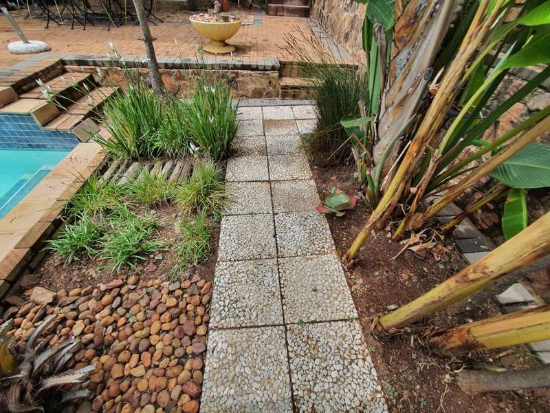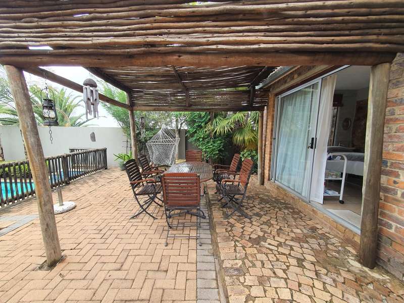 The entertainment area of this home is paved with areas of perfect maintained garden, adding greenery and atmosphere. The sparkling blue pool is the perfect size, very private with a covered patio area. A entertainment room currently in use as a salon , can also be perfect as a work from home office.