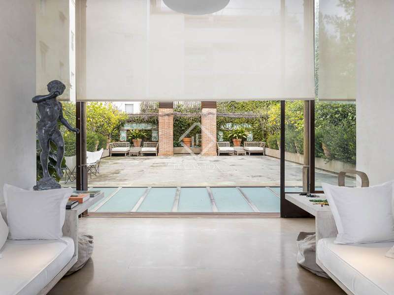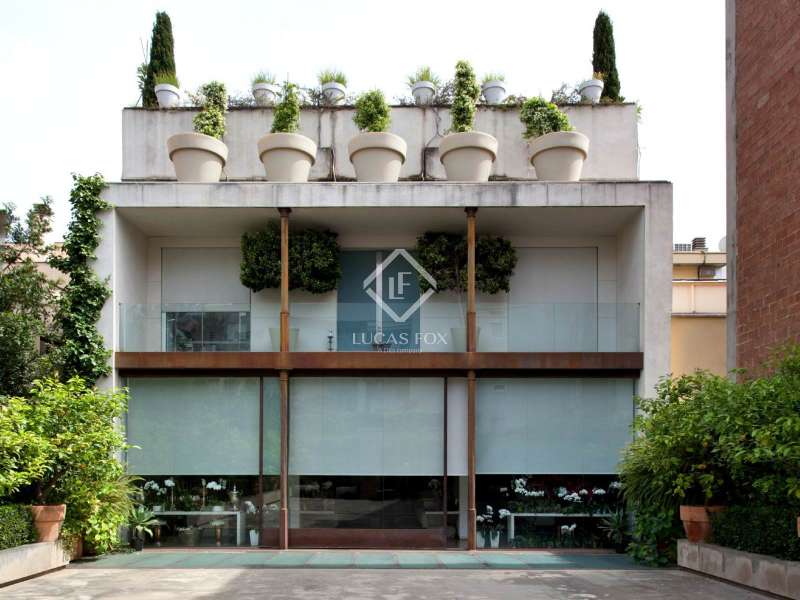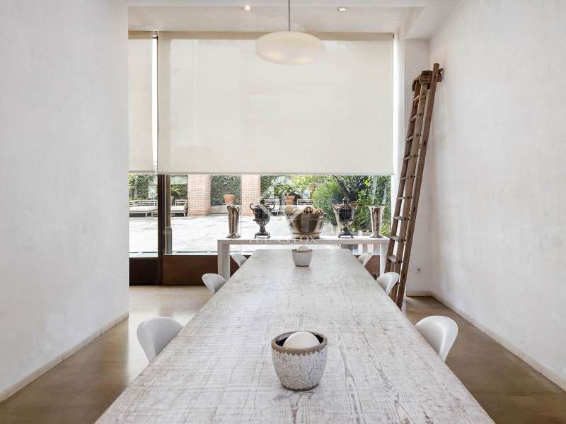 Lucas Fox presents this spectacular contemporary house for sale located in the centre of Sarrià, a privileged area of Barcelona. The spacious three-story property has a surface area of 574 m² and over 446 m² of exterior space. It is notable for its original facade, which dates back to 1895. The functional layout of the property features four very bright floors, which have large windows on both sides of the house and even inside. The main floor can be accessed by elevator or via the majestic staircase that separates the day area . Two immense living rooms with enormous windows allow for multiple seating areas and relaxation areas . There is a large dining room with windows that provide direct access to an impressive terrace, maintaining the building's contemporary style. The kitchen, adjacent to the dining room, is fully equipped and features a central island. The night area on this floor houses a fully equipped master suite, a small hall living room , and a service area that includes the laundry room room and a double suite. The second floor comprises two master suites overlooking the terrace, each with a shower bathroom , dressing room, study area, and a mezzanine with space for two additional beds. The other area of the floor features a spectacular master suite with two bedrooms, currently used as dressing rooms, and two shower rooms. Finally, on the rooftop, one of the jewels of the house, we find a swimming pool with a retractable deck, allowing it to be covered if additional space is needed on the terrace. From here, we can enjoy unparalleled views of Barcelona in the heart of Bonanova. The ground floor is access -only, where a spacious entrance hall welcomes visitors, followed by a garage with space for up to four vehicles. This enormous multipurpose space can be converted into a storage area or a small workshop, depending on your needs. The mezzanine level has a loft, which is currently used as a multipurpose room. It includes a toilet and an electronics and home automation room. As for the location, this property offers an excellent setting, close to international schools and easily accessible from all parts of the city by both private and public transport (train and bus stops), with a direct metro connection to the airport. The metro line will be opening soon. Don't hesitate to contact us for more information.