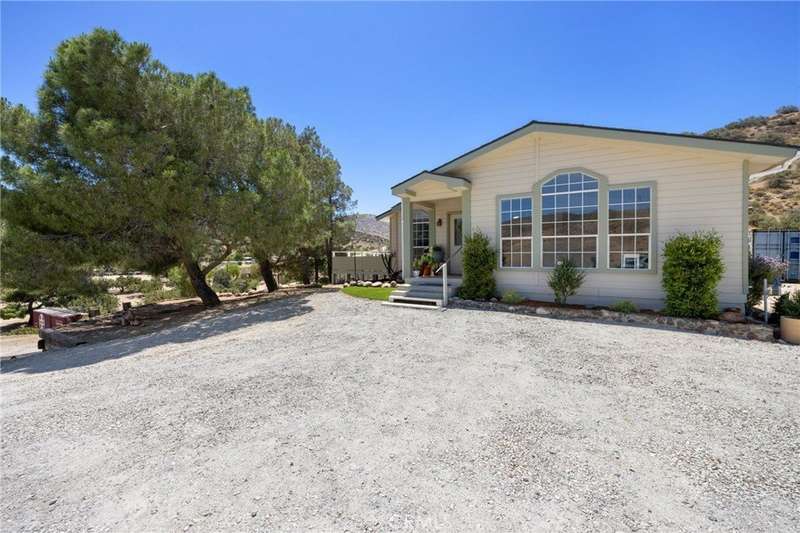 Welcome to your private oasis located on the East side of Acton! This beautifully upgraded 3 bedroom, 2 bathroom manufactured home offers 1,944 sqft of thoughtfully designed living space on just under 10 acres of usable land. Perfect for those who value privacy, space, and versatility. Step inside to a stylish and updated interior, featuring a bright and open layout ideal for both relaxation and entertaining. The backyard is a standout, recently refreshed with turf, decomposed granite, and drought-tolerant plants for low-maintenance beauty. Golf enthusiasts will love the custom short turf driving mat, where you can tee off right on your property toward a private turf hole below — a truly unique feature! Enjoy panoramic views from nearly every angle, and take full advantage of the property's horse infrastructure, offering excellent potential for equestrian use or other rural lifestyle needs. Whether you're seeking a peaceful retreat, a hobby farm, or room to expand, this property offers the flexibility to bring your vision to life. Don’t miss this rare opportunity to own a slice of Southern California serenity with all the modern comforts. Come for a visit. Stay for a lifetime. Welcome Home!