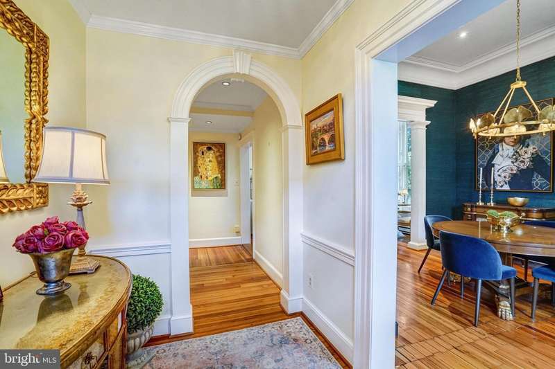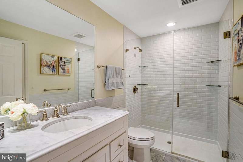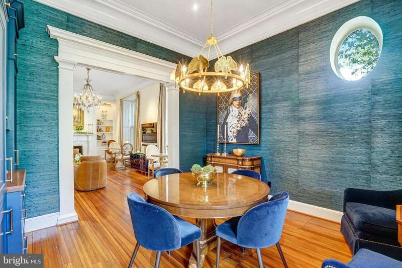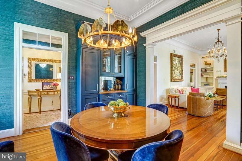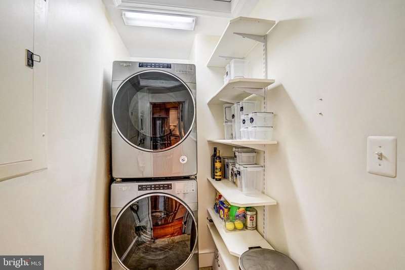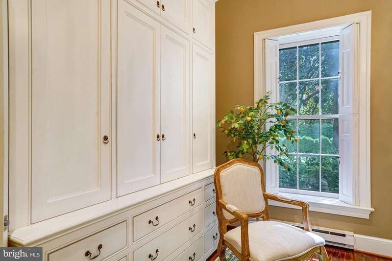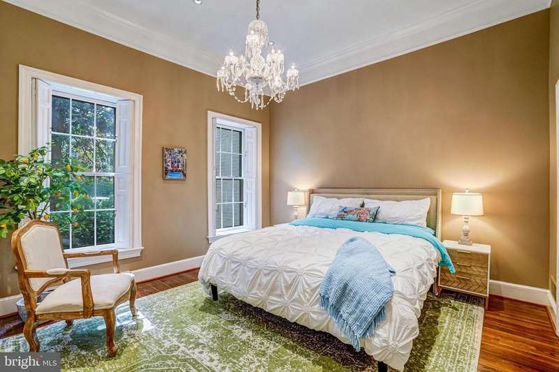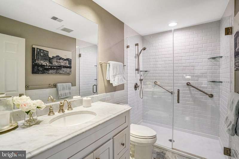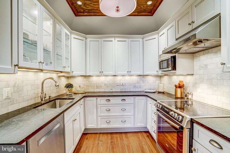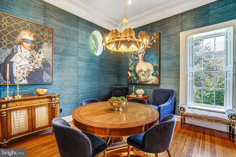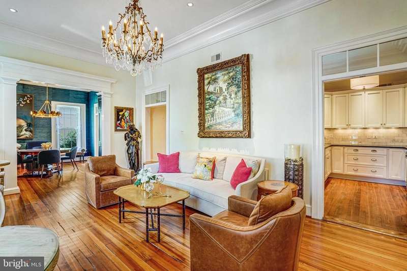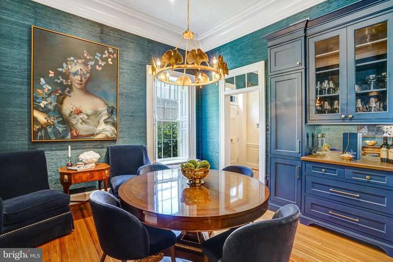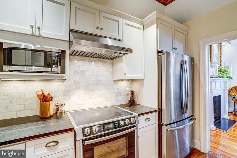 Perfectly positioned in the heart of Old Town, this exceptional Swann Daingerfield condo offers the rare convenience of single-level living on the main floor, complete with a private brick patio framed by lush plantings. The living room showcases over 11-foot ceilings, striking 8-foot windows, a fireplace flanked by custom bookcases, and original heart pine floors that accentuate the historic millwork. An adjacent dining room, featuring another tall window and a dramatic oval window, creates a breathtaking setting elevated by custom wine bar cabinetry. The chef's kitchen exudes character with a shiplap ceiling, soapstone counters, high-end appliances including Bosch stove and dishwasher, and a stylish backsplash. A hall lined with storage closets leads to two generous bedroom suites overlooking the gardens. The primary suite delights with an enormous walk-in closet and a beautifully renovated bath. A wall of custom cabinetry allows for even more primary room storage needs. The second suite also includes a wall of custom cabinetry, as well as ample closet storage, and updated private bathroom. Additional conveniences include a deeded assigned parking space (#2) and a private lower-level 10 x 8 foot storage unit for oversized belongings. This home masterfully blends the Old Town elegance with modern comforts-soaring ceilings, massive windows, and thoughtful renovations-making it truly one-of-a-kind. Built in 1802, own a piece of history at Swann Dangerfield condominium. Just moments away from the phenomenal restaurants and shopping that Old Town Alexandria has to offer.