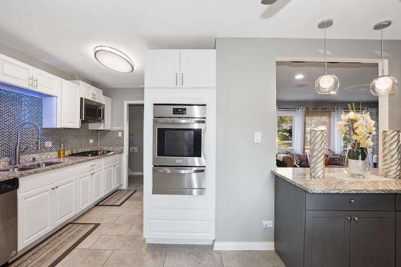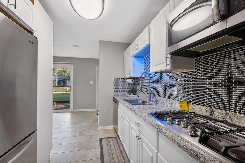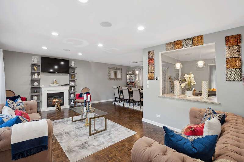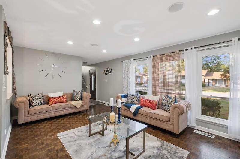 Welcome to this beautifully maintained and updated home perfectly blending comfort and modern finishes. This 3 bedroom, 1.1 bath home has been thoughtfully redesign from top to bottom with meticulous attention to detail. Custom finishes and expert craftsmanship! As you step inside, you'll be greeted by the bright and sunny atmosphere, thanks to the new front door, interior paint, new 6-panel doors, and new light fixtures throughout. The main level is a true showstopper, featuring a bright and sunny living room with recessed can lighting, perfect for relaxing and entertaining. The dining room is adjacent to the updated eat in kitchen, boasting new ceramic tile flooring, new cabinets, granite countertops, tile backsplash, under-cabinet lighting, stainless steel appliances, and a 5-burner stove top. The attached built-in island provides ample counter space and storage. Remodeled half bath completes the main level, featuring new flooring, vanity, toilet, and fixtures. The lower level offers a spacious family room with new epoxy flooring, perfect for a home gym or tv room. A laundry room with new cabinets and sink provides functionality. The 2 car attached garage offers ample parking and storage. Second floor is a serene retreat, featuring new hardwood floors throughout. The large primary bedroom boasts double closets and new light fixture, providing the ultimate in comfort and relaxation. Two more nice sized bedrooms offer ample space for family and friends. A new full hall bath completes the second floor, boasting a new vanity, tile, and shower. Exterior includes a fully fenced in yard with a concrete patio, perfect for outdoor entertaining and relaxation. A shed provides additional storage for outdoor equipment and tools. Convenient access to expressway, metra, public transportation, schools, shopping and entertainment. Don't miss out on this incredible opportunity to own this amazingly updated home, perfect for those who want to live in comfort and style!