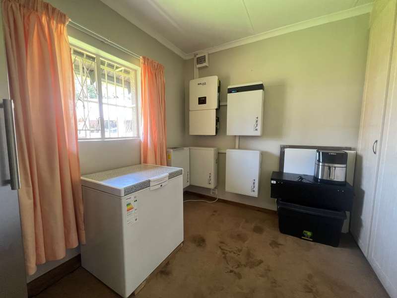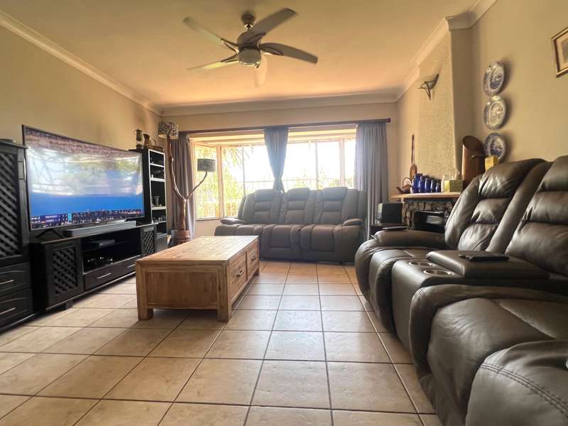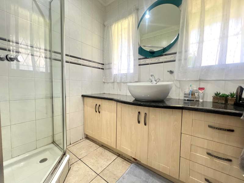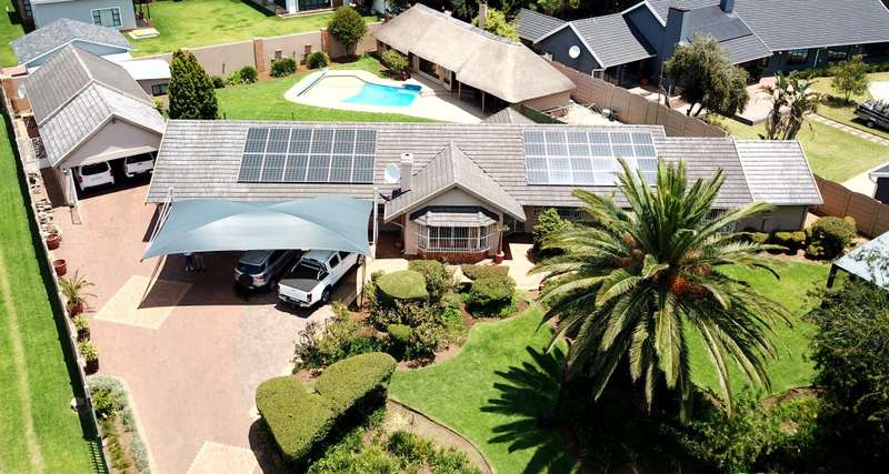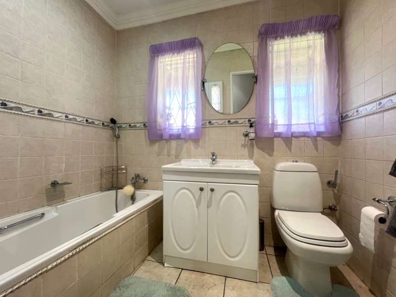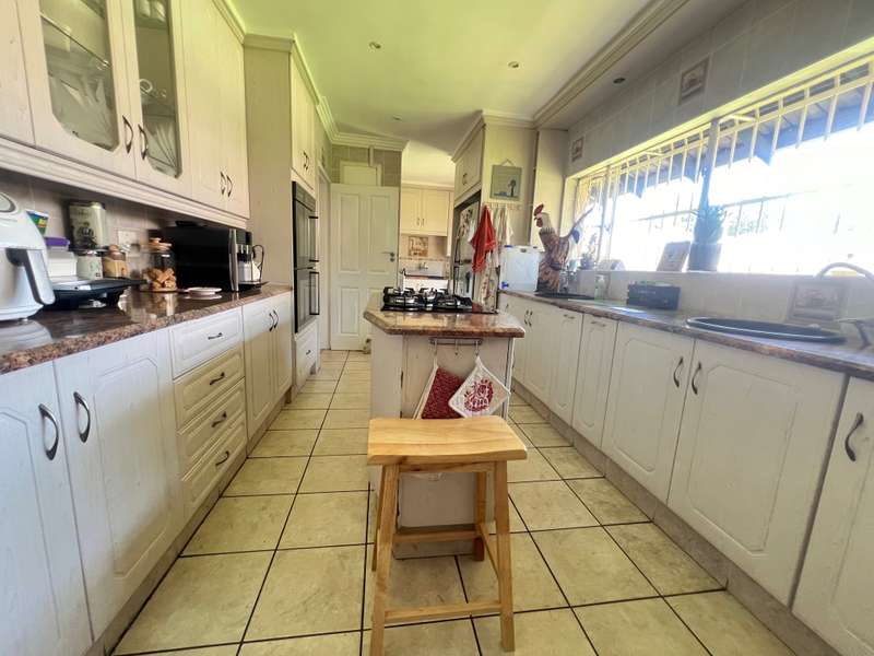 This home is situated within a boomed area and boasts 5 bedrooms with built in cupboards, 4 bathrooms,, 2 lounges, a study, dining room, kitchen with ample cupboards and a centre island gas hob. The garden is large with a lapa with a built in braai, bar, jacuzzi and a pool for those relaxing days. There is a solar system, domestic quarters and a good security system comprising of an alarm system, intercom and security gates. Complete with 4 garages and 2 carports. Situated close to the highway and all amenities as well.