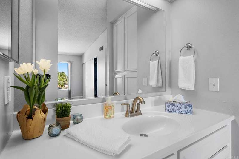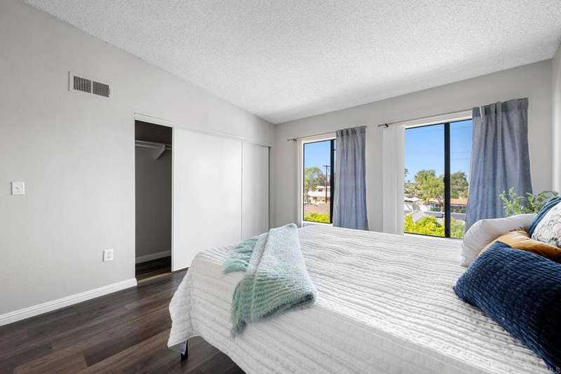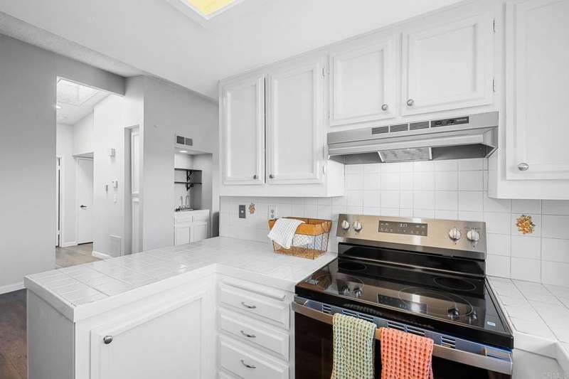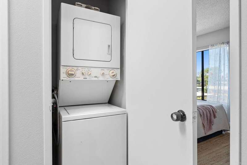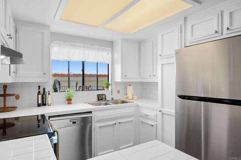 MOTIVATED SELLER! Move-in-ready, refreshed condominium in the highly sought-after Clairemont neighborhood of San Diego. NEW dishwasher, stove, range hood, kitchen sink, refrigerator, toilet and fresh paint! This residence offers a primary bedroom with en suite, a secondary bedroom and full bath, in 1,026 square feet of comfortable, single-level living space. The open-concept living area is enhanced by abundant natural light, fresh paint, and wide-plank laminate flooring. SECURED PARKING (2 cars) with additional storage in garage. IN-UNIT LAUNDRY and generous closet space, as well as the private patio/balcony, ideal for relaxation and entertainment. This TOP FLOOR unit is located on the back side of the complex offering serenity and cool breezes. Assigned tandem 2 car garage with storage. Safe, gated complex with app-controlled entry, elevator, pool and spa, as well as beautifully maintained thoroughfares. Its central location offers convenient access to major freeways, shopping centers, restaurants, parks, the airport, UCSD, SDSU, and downtown SD.
