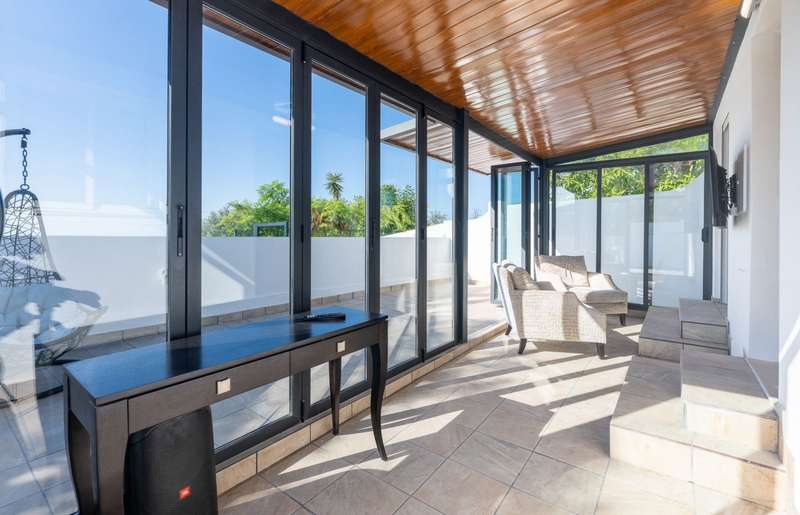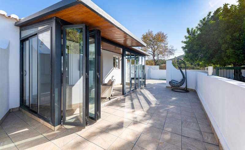 Picturesque 2 bedroom villa, completely renovated, with stunning sea and mountain views, located in a quiet area of Santa Bárbara de Nexe. This property is furnished and equipped, offering a welcoming atmosphere that combines comfort, elegance and functionality. It has two bedrooms and a practical mezzanine, ideal for additional storage. The master bedroom and kitchen are equipped with air conditioning, ensuring maximum well-being all year round. Outside, the villa benefits from a large, fully fenced plot, ensuring privacy and security. It also has a raised swimming pool, an inviting barbecue and lounge area, perfect for socializing, as well as private parking inside the property. All this privileged by magnificent views of the sea and the mountains. Located in a quiet area with good access, it is just 3 minutes from the center of Santa Bárbara de Nexe and within walking distance of all essential services. It represents an excellent opportunity both for investment and as a vacation home. CHARACTERISTICS: Plot Area: 1 260 m2 | 13 560 sq ft Useful area: 48 m2 | 515 sq ft Deployment Area: 48 m2 | 515 sq ft Bedrooms: 2 Bathrooms: 1 Energy efficiency: Free FEATURES: Single-storey house 2 bedrooms Recently renovated Sea and mountain views Large plot of land