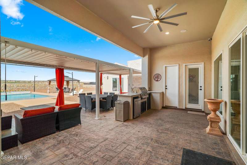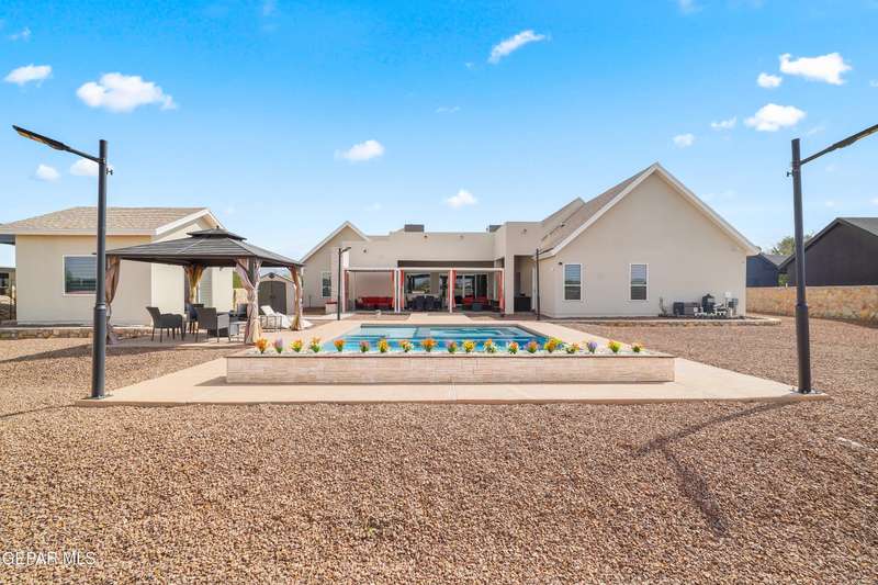 Step into this one-of-a-kind custom home that perfectly blends style, function, and sophistication. From the moment you walk in, you'll be captivated by the open-concept design, soaring ceilings, and high-end finishes throughout.The gourmet kitchen includes an upgraded island design with waterfall,designer lighting, sleek cabinetry, and top-of-the-line appliances. The spacious living and dining areas flow seamlessly together, making it the perfect space for entertaining family and friends. This home offers 4 large bedrooms,including a junior suite, and 4 luxurious bathrooms, along with a game room and a private office, giving you the flexibility to work, play, and relax all under one roof.Step outside to your own backyard paradise! Enjoy an expansive 1/2-acre lot with a sparkling pool, shaded patio with outdoor kitchen, and a separate spacious 336sqft gym house ideal for fitness enthusiasts or a private studio.Every detail of this home was designed for comfort and style.