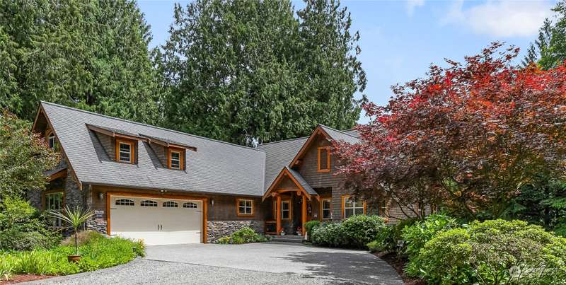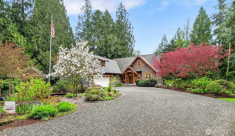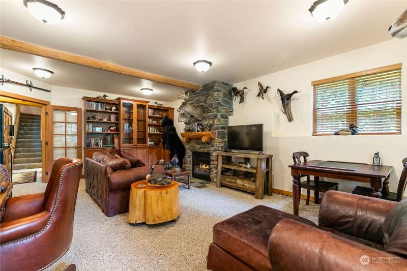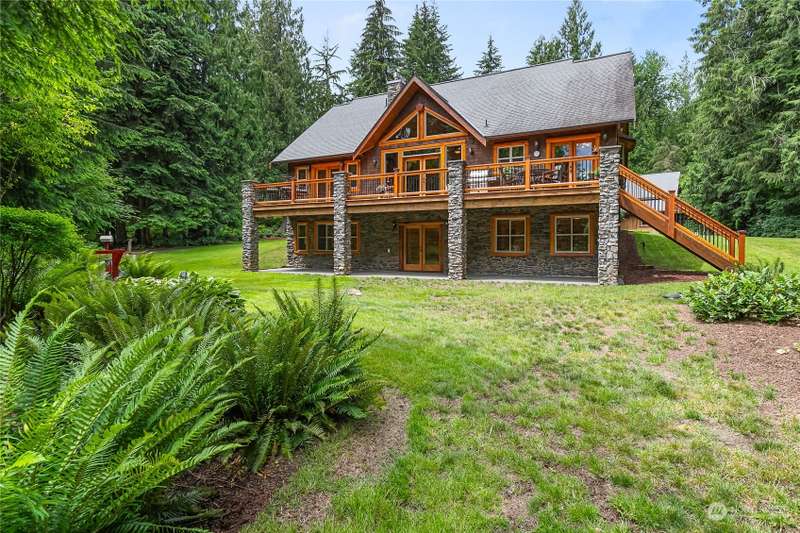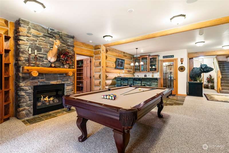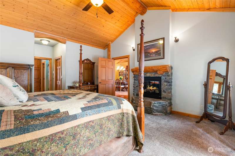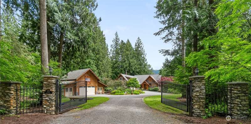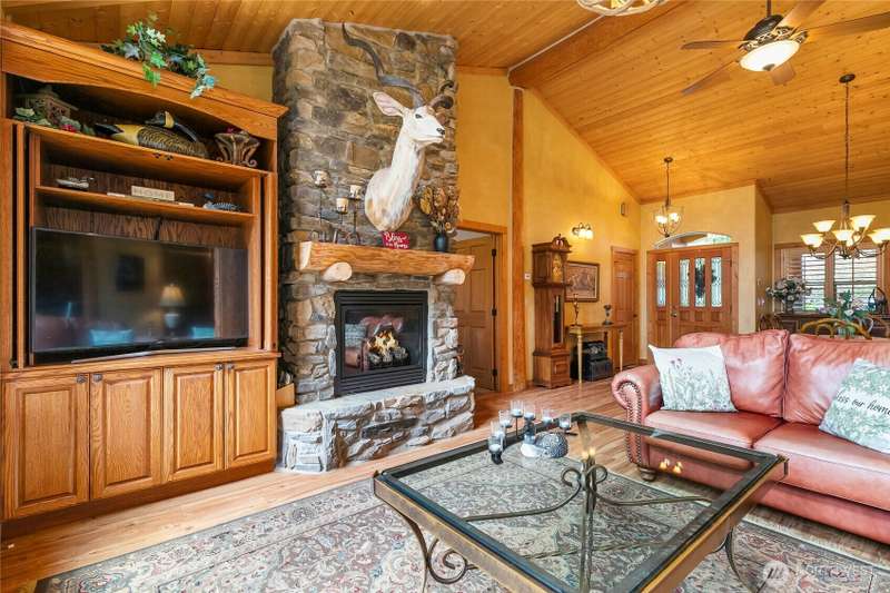 Nestled on 5 wooded acres, this remarkable custom stone & timber home seamlessly blends rustic charm with modern luxury. Featuring 3 bedrooms and 4 bathrooms, every space is designed with exquisite attention to detail. A gated entryway ensures privacy and tranquility, while the kitchen showcases honey oak cabinetry and granite countertops that carry into the baths. Radiant heat provides year-round comfort, and a hand-honed log staircase adds natural beauty. Ideal for gatherings, the home features four stone fireplaces throughout, creating warm and inviting atmospheres. Home is a gem! 1% lender credit(up to $7500) offered through my preferred lender, AmyBaker@movementmortgage.