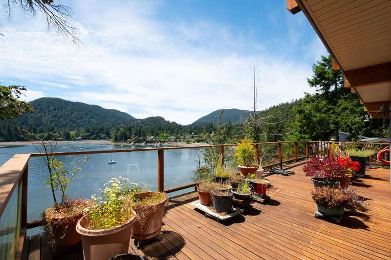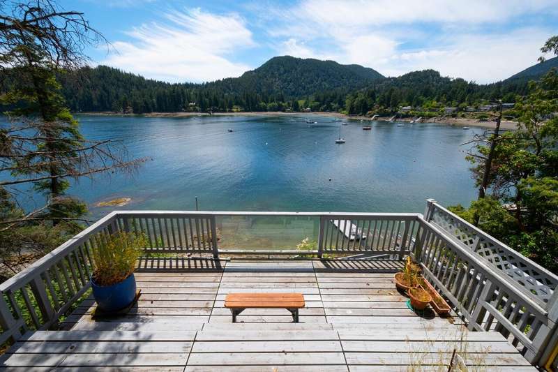This waterfront home sits overlooking Deep Bay - one of Bowen's most popular locations. 0.67 acres, with steps down to the water's edge below, places to put your paddle board, and plenty of privacy. Inside features an open plan on the main, with wood paneling throughout for a comfy and cozy feeling centered around a beautiful fireplace. Upstairs consists of 3 bedrooms. Soak up all day sun from multiple levels of wrap-around decks, and whale-watch from the comfort of your own home. Below features an covered yet open air area for woodworking and more. Moments away from Snug Cove and the ferry.