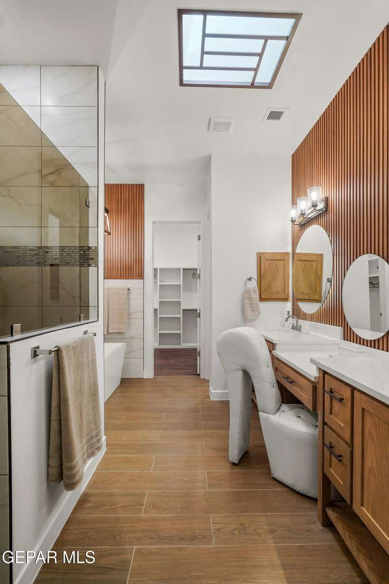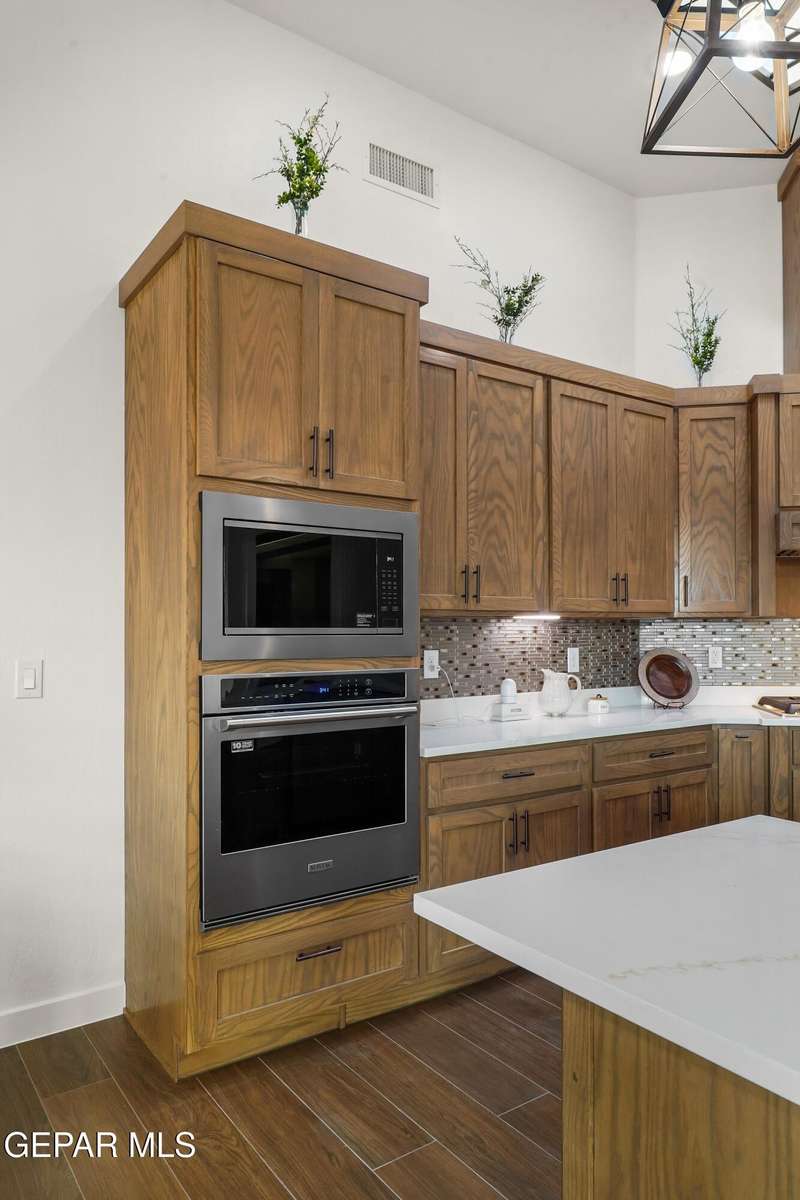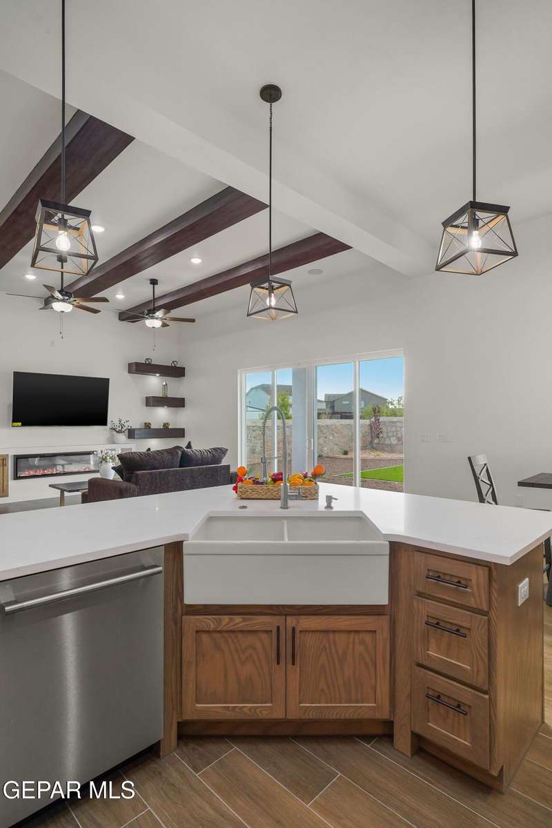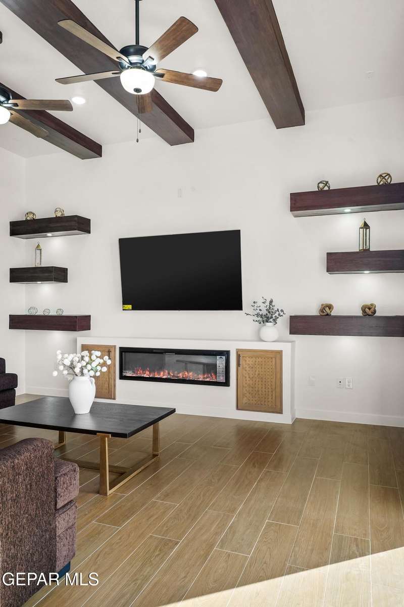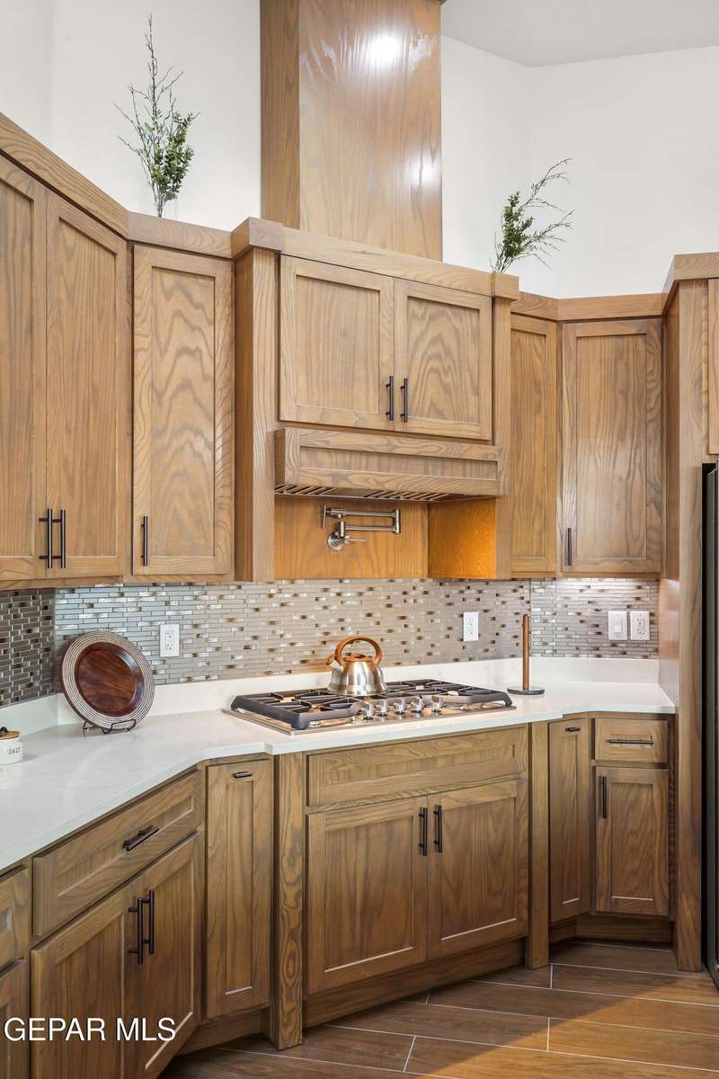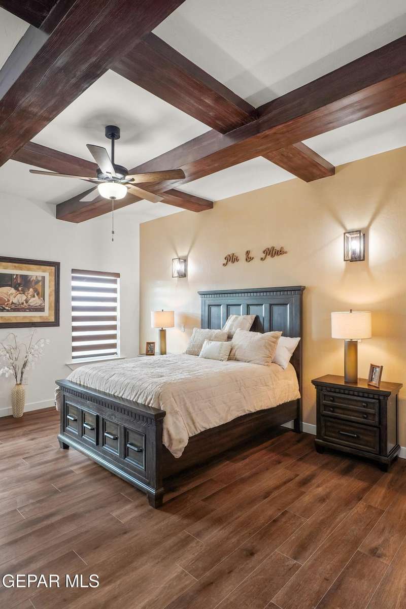 Experience modern elegance in this brand-new Custom Home, proudly featured in the 37th Annual Festival of Homes. Located on a corner lot in Horizon City, this transitional single-story residence spans 2,411 sq. ft. and offers 4 spacious bedrooms, 3 luxurious baths, and a private home theater. Step inside to discover bright, airy interiors highlighted by light-colored cabinetry, designer flooring, and detailed wall accents that create a warm, refined ambiance. The kitchen and baths showcase stunning finishes, including wall cladding, rounded mirrors, and elegant fixtures that exude style and sophistication. Enjoy seamless indoor-outdoor living with fully landscaped front and back yards-perfect for relaxing or entertaining. With its timeless design and thoughtful craftsmanship, this Custom Built Home is sure to impress even the most discerning buyer.