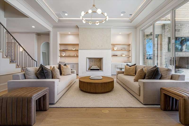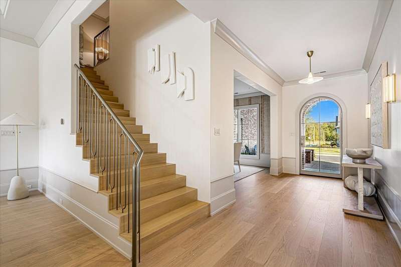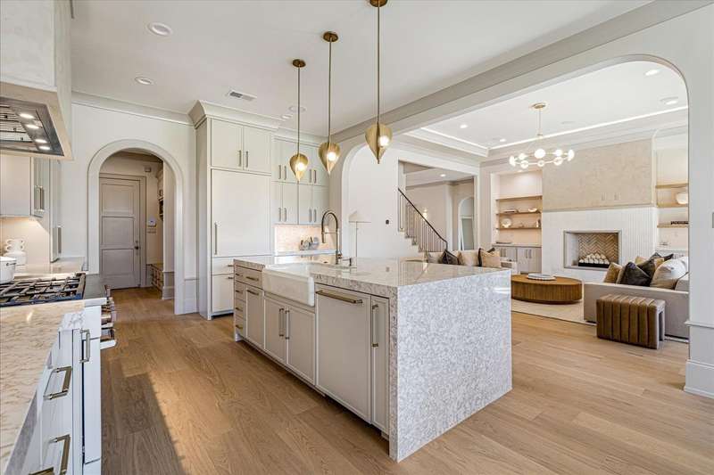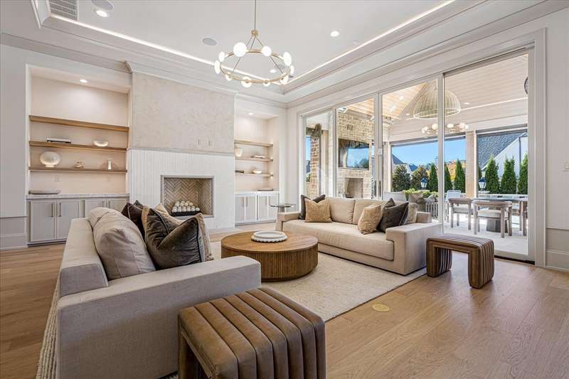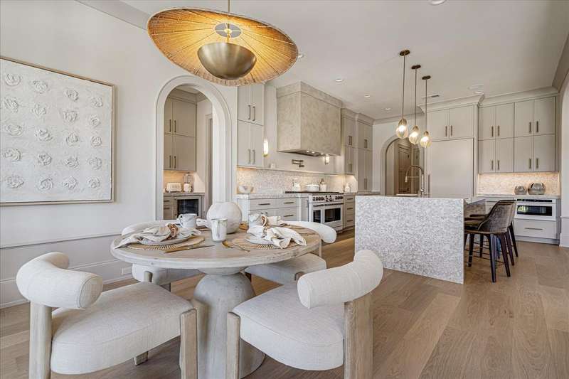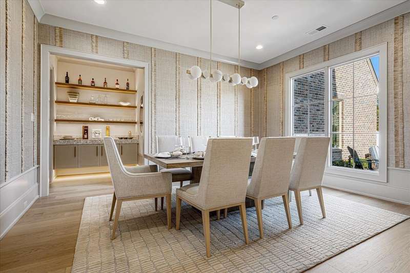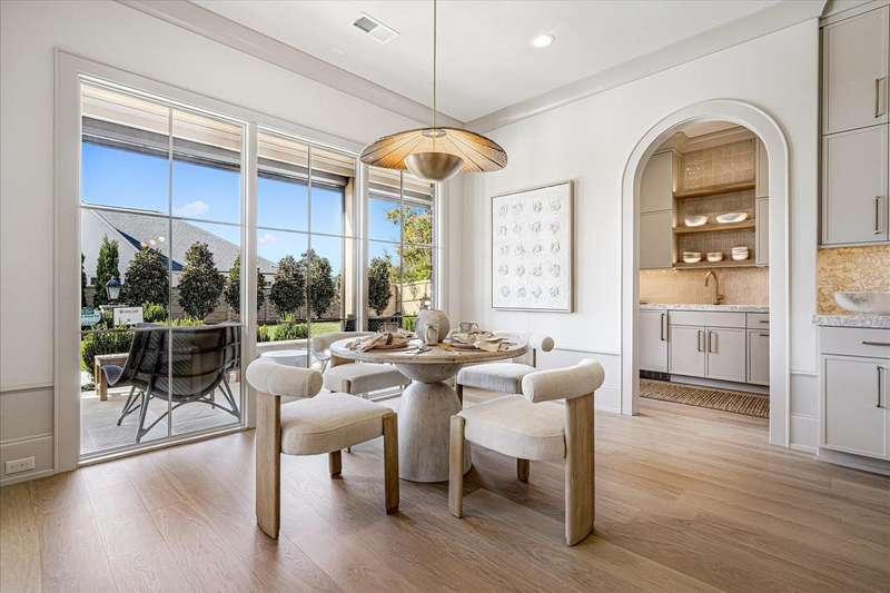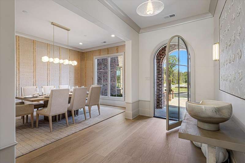 Eagle Builders by Taylor Lewallen & Crews Development presents this "Modern English Manor" Home for Fall Vesta 2025. Charm & character of old, yet open plan, decor & indoor/outdoor living of today. This home is fashioned with quaint historic architecture but contemporary interiors; a sophisticated & exciting combination! Highlights include an unexpected front veranda for welcoming guests & visiting with neighbors, a bright & open first entry impression with views through expansive glass to the "focal point" pool & a grand-sized vaulted porch with rich finishes, all creating a fun flow in & out. Select materials of cabinetry, Cambria countertops, a separate scullery/bar elements flows to the porch grilling station with a quaint spot for guests & family sit & join in on the fun. All this sets the tone for an exciting theme carried throughout the home.