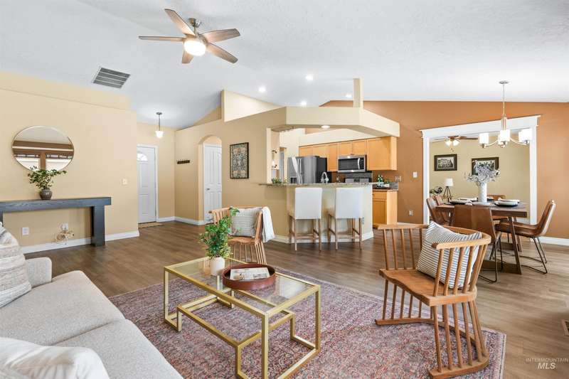 Well-maintained single-level, offering thoughtful updates & a versatile layout. The inviting interior features three spacious bedrooms, two full baths, an office & a flex room ideal for hobbies or 4th bedroom. The kitchen has been refreshed w/ newer countertops & stainless steel appliances. Vaulted ceilings & abundant natural light create an open, airy feel, seamlessly connecting the dining area, family room & kitchen. Updated LVP flooring, new high-efficiency Carrier furnace and A/C unit installed in 2021 & new roof in 2022. Outside, mature landscaping frames a private backyard retreat with a large paver patio, pergola, and raised garden beds, perfect for outdoor entertaining or quiet evenings. Additional highlights include a two-car garage and established curb appeal. Located minutes from the Optimist complex, shopping, the Ridge to Rivers trail system, and easy access to State St, Hill Rd and Hwy 55. Move in ready w/ included fridge, washer & dryer, this home blends convenience, comfort, and value in one.
