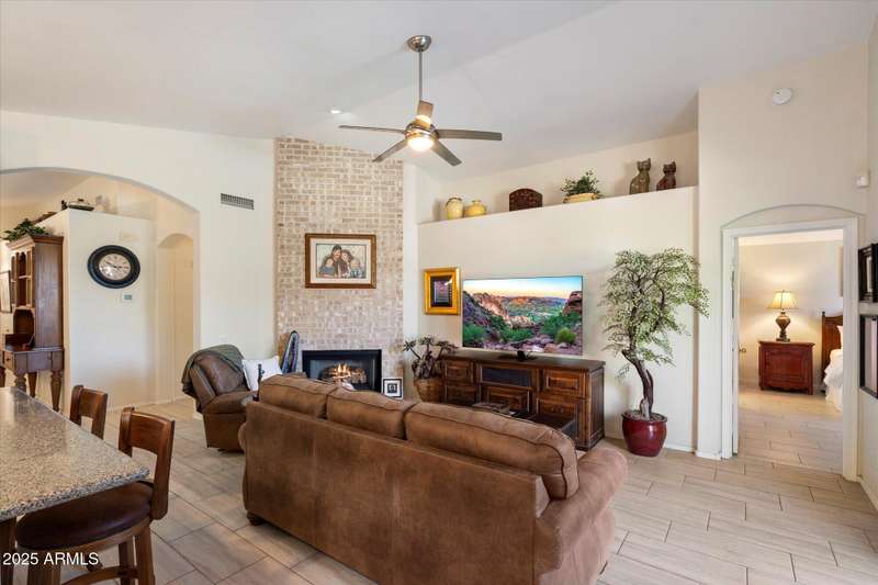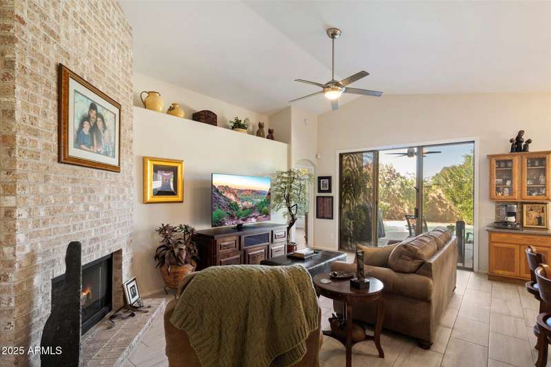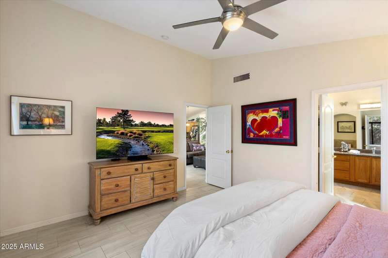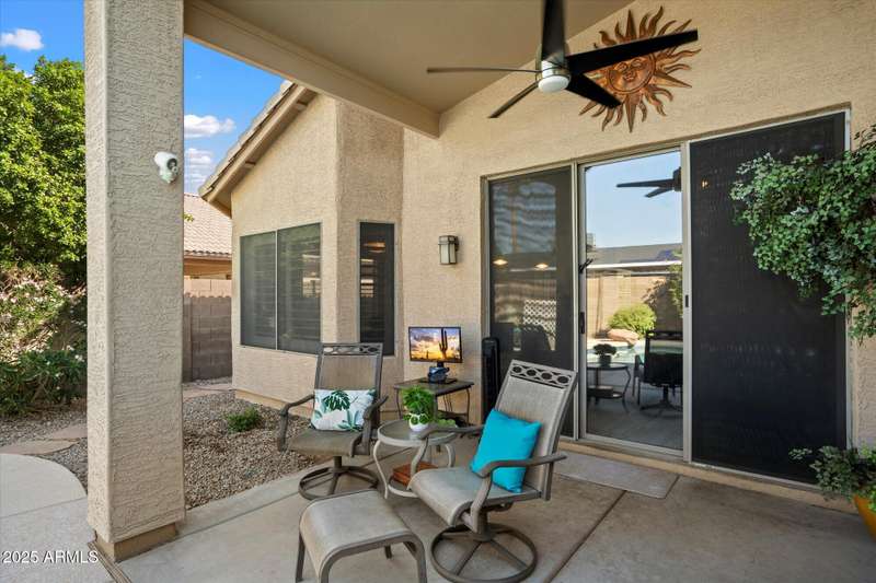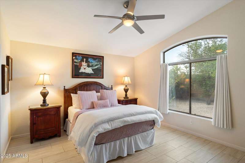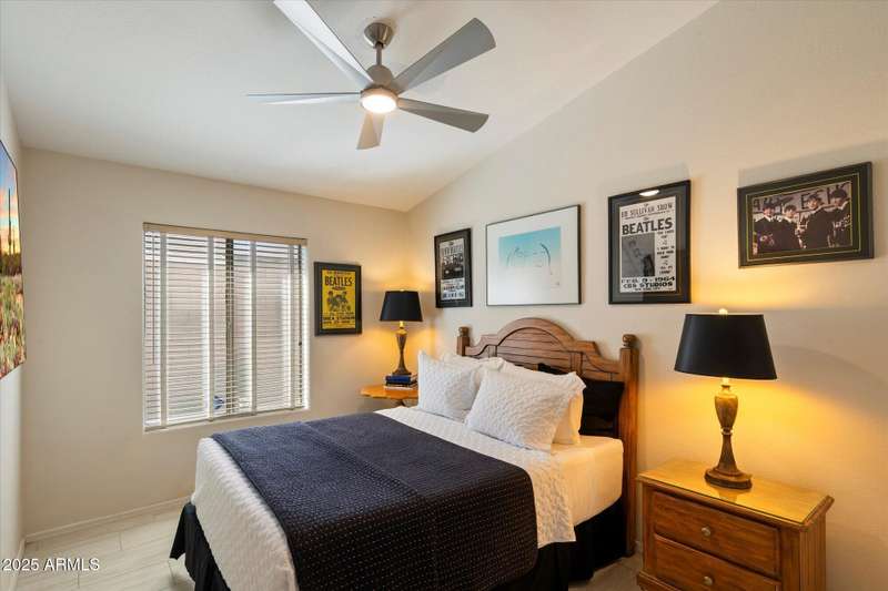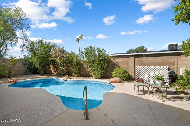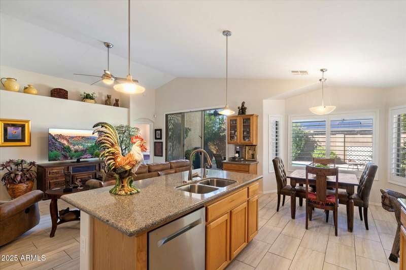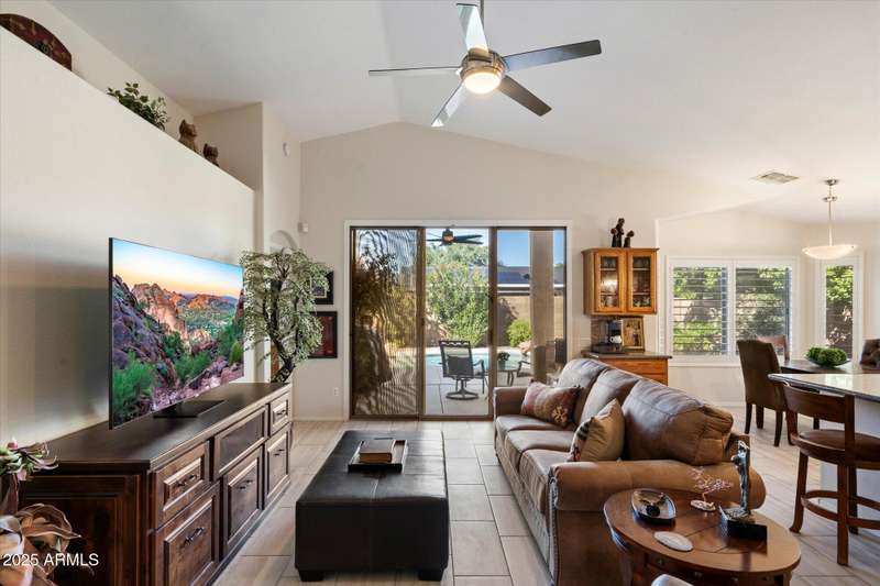 Conveniently located in Northeast Phoenix, this thoughtful Pulte floorplan will appeal to families, young professionals or couples looking for the next step. Vaulted ceilings throughout create a spacious open feel in this split floorplan. 2024/2025 updates include wide plantation shutters in main living areas, tile flooring, recessed cans, soft white interior paint and pool resurfacing (pebble tech!!) Tile flooring runs throughout with the exception of one bedroom, currently carpeted and used as an exercise room. Easy maintenance front and back, with a dog run, are huge bonuses! Neighborhood grassy area is just a few blocks away. Sweetwater Cove is a conveniently located Northeast Phoenix community with easy access to freeways, shopping, restaurants and hiking. Wonderful property!