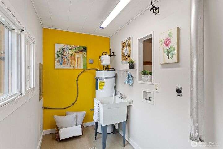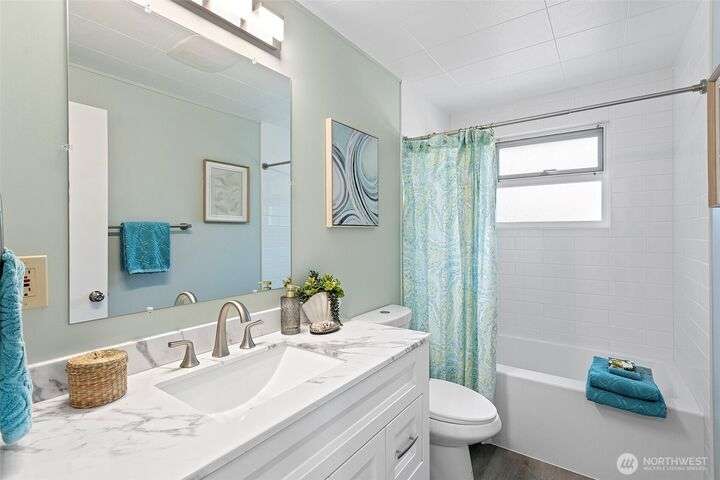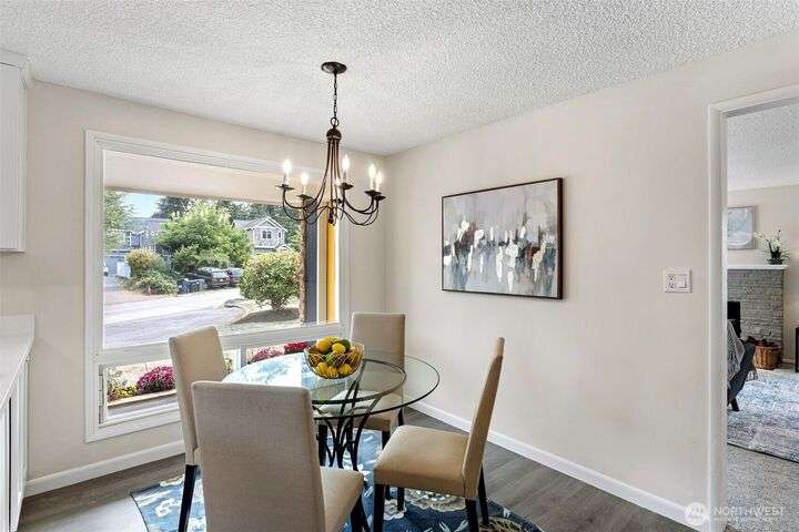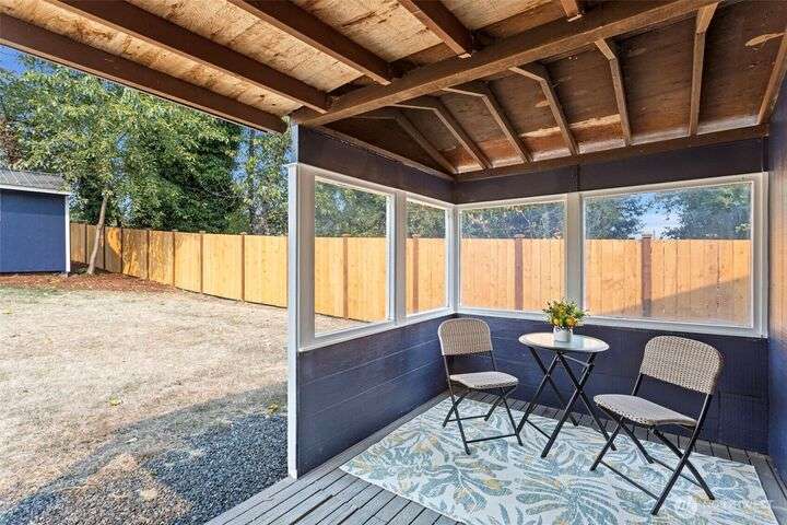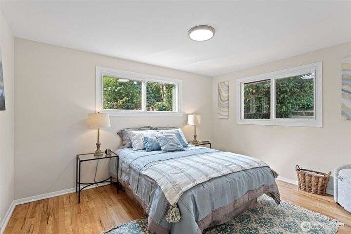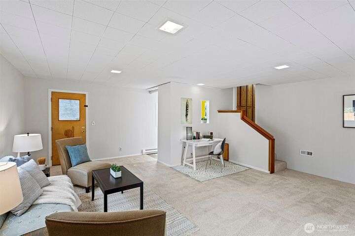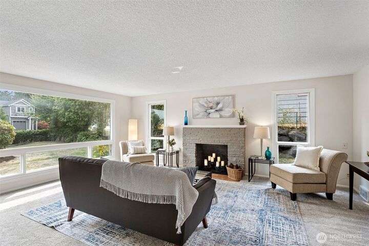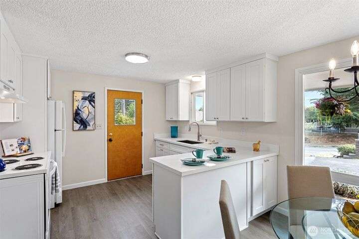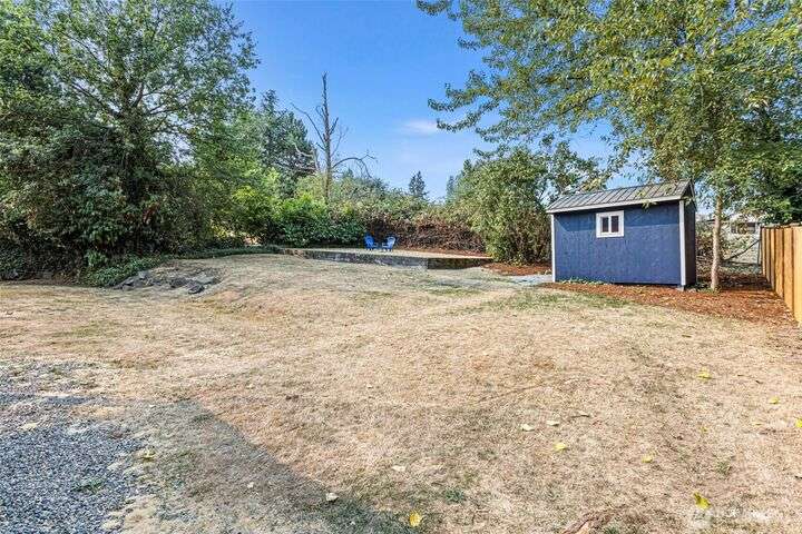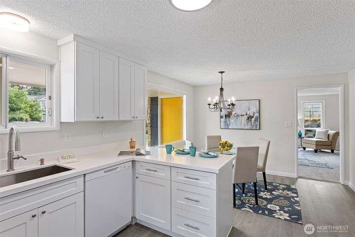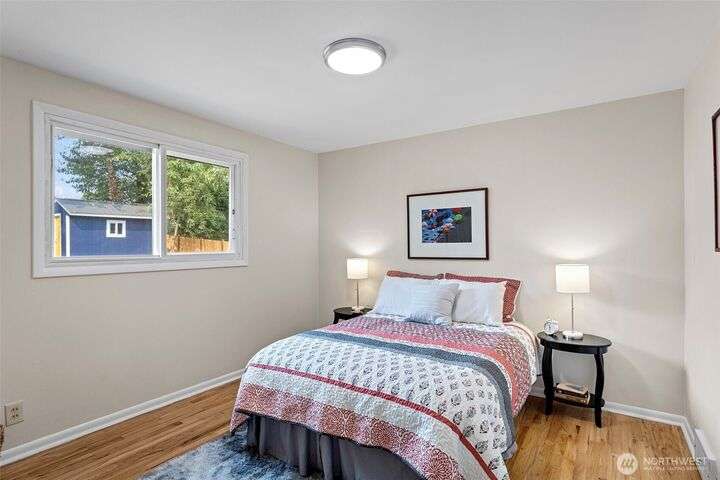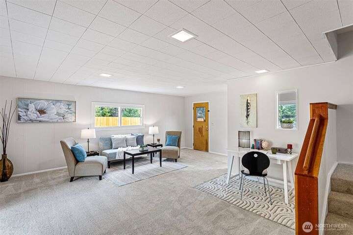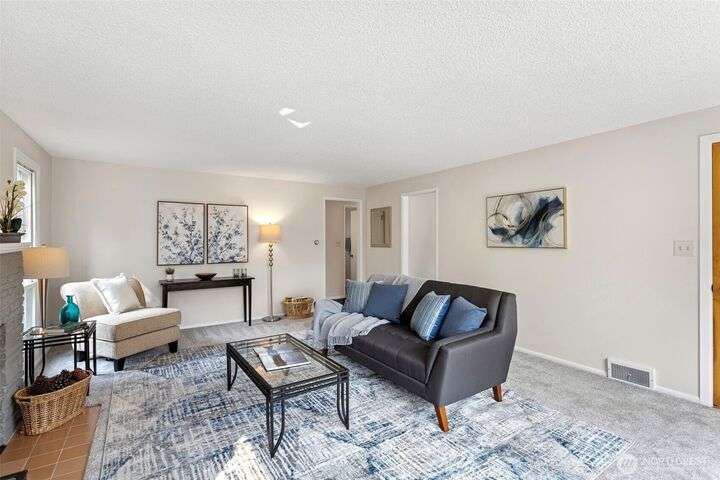 Need a third bedroom!? A spacious flex room steps in—privately set apart with laundry, exterior access, and room to stretch. This refreshed mid-century rambler greets you with crisp curb appeal, mature plantings, and a built-in sandstone planter. Inside, a brand-new kitchen with quartz countertops and all-new cabinetry opens to a generous dining area. The bath is fully renovated; hardwoods, LVP, and carpet are all updated; and fresh paint and doors complete the cohesive refresh. A bright living room with fireplace anchors the layout, while out back, a terraced yard offers privacy, new fencing, and a storybook shed full of potential. Ample off-street parking via the U-shaped driveway. Fully pre-inspected. Just move in and love living here...