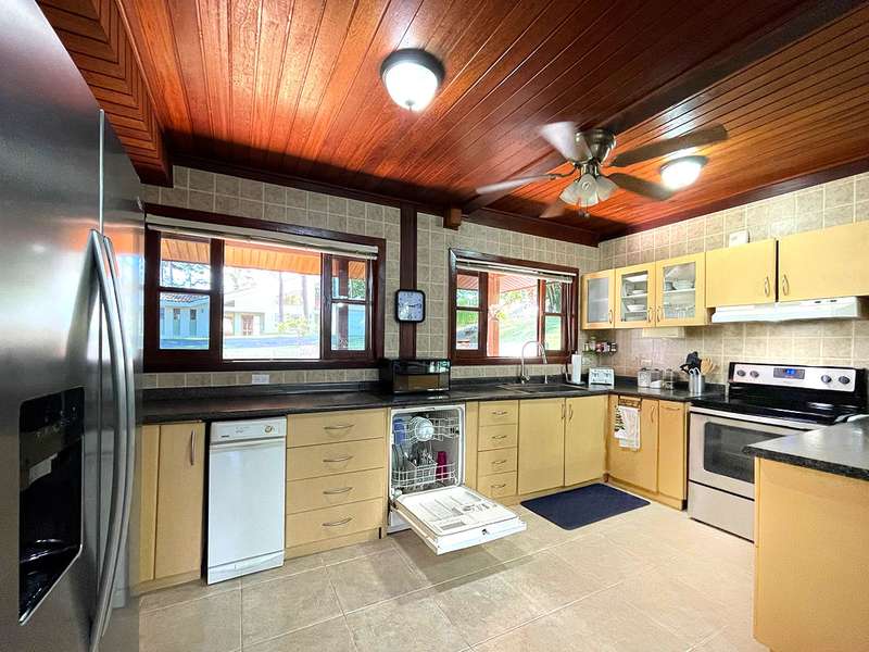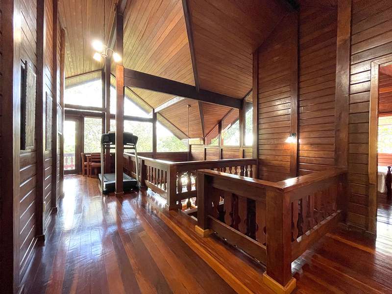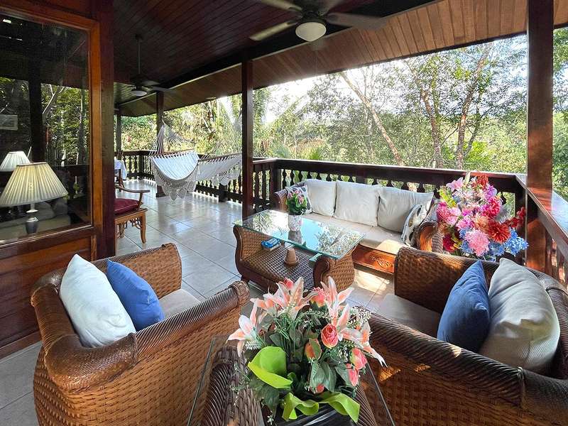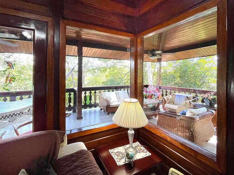 Riding on the inter-American highway toward the beaches, 30 km from Panama City and 50 km away from Coronado, it is hard to miss the gigantic COSTA VERDE sign announcing the commercial heart of la Chorrera, the third largest town in Panama and the capital of Panama Oeste -West Panama- province. In this ever-expanding hub, you will find EVERYTHING - from the local COSTCO equivalent, banks, clinics, and restaurants to a STARBUCKS. Imagine living just 10 km away, 30 minutes from Panama City, in a serene and peaceful setting. The gated BRISAS DE LOS LAGOS community is privately operated by a respected eye surgeon who has made it his home and is dedicated to preserving the lush environment. Two-thirds of the residents hail from Europe, the US, and Canada, and English is widely spoken. Among the 28 elegant homes, this one - built from Brazilian Almond hardwood, impervious to water and termites - stands apart. Mingle with this close-knit community at the lakefront clubhouse and relax.