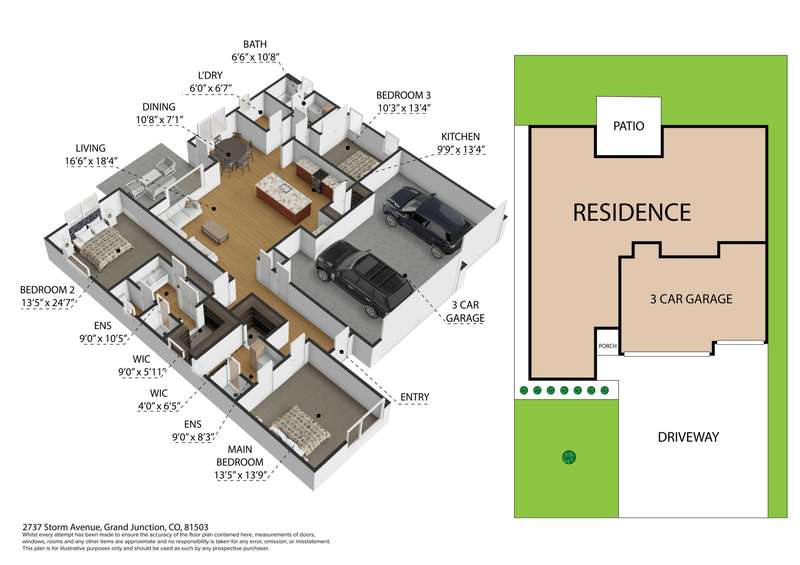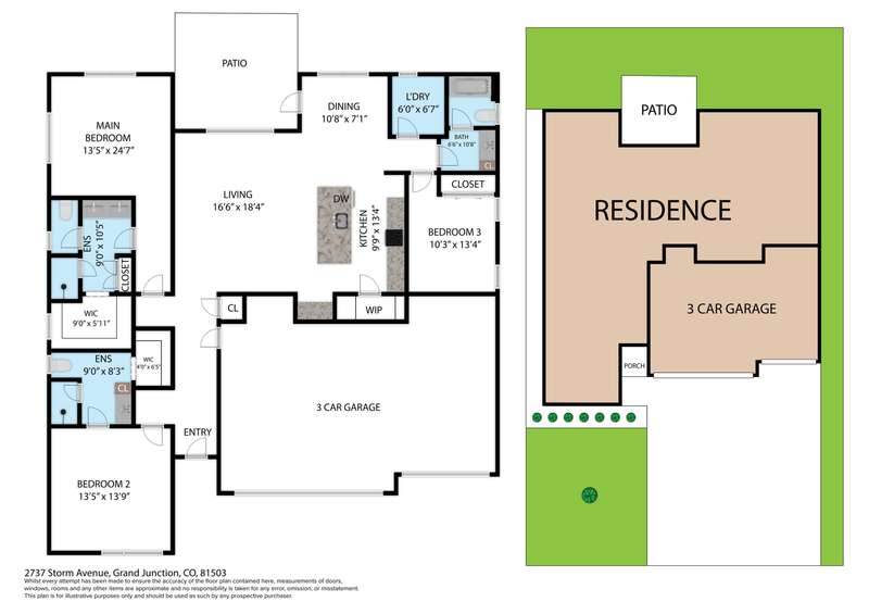 Starting Rate as low as 3.0% available. Call for details. Modern design meets Colorado living in this thoughtfully crafted patio home in Orchard Mesa. Featuring clean lines and a bold look, this home provides 1,792 square feet, 3 bedrooms, 3 bathrooms, and a 3-car garage - meeting your storage needs and room for a shop. Built for functionality this smart layout has a small footprint but is very open. Inside there are 2 primary suites with attached full bath and walk-in closets, as well as a third bedroom. The high 11' ceiling in the foyer & hall, opens to a large cozy common area with a living room that features a tray ceiling. Simple living combined with interior details brings comfort and practicality right to you. The covered patio invites you to enjoy quiet mornings and beautiful evenings outdoors. Low-maintenance living means more time to embrace Colorado’s lifestyle—300+ days of sunshine, mild winters, and endless opportunities for recreation. Spend your days golfing, wine tasting, hiking, or enjoying local cultural events—all just minutes away. No yard work, no hassle, just easy living in a modern home designed for efficiency and style. To make this opportunity even more attractive, buyers may choose one of three valuable incentives: 1. A 3-2-1 Interest Rate Buydown – reduce your monthly payments with a lower starting rate. 2. Backyard Landscaping Package – create your own outdoor oasis. 3. Custom Window Covering Package –style your home to fit your taste from day one. This isn’t just a house—it’s the lifestyle you’ve been waiting for.