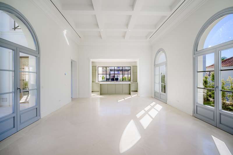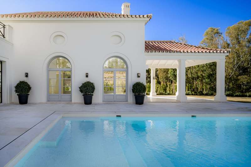 Nestled within the prestigious embrace of La Cerquilla, a vision of unrivaled luxury emerges. This magnificent residence, graced with timeless architecture echoing French provincial charm, resides in the heart of the Golf Valley, amidst the renowned Los Naranjos and Royal Las Brisas golf clubs. With graceful poise, this exquisite home epitomizes refined elegance and sophistication. Enveloped by a courtyard reminiscent of southern France, adorned with fragrant olive trees and lavender, it exudes the ambiance of a distinguished resort. Meticulously manicured gardens, secluded outdoor seating, and a serene swimming pool offer moments of leisure and conviviality under the sun's gentle caress. Internally, the villa boasts lofty ceilings and a meticulously equipped kitchen, seamlessly flowing to an al fresco dining area and BBQ, inviting versatile culinary experiences in an atmosphere of opulent luxury. Spanning three levels, the villa hosts five bedrooms, each adorned in tranquil h