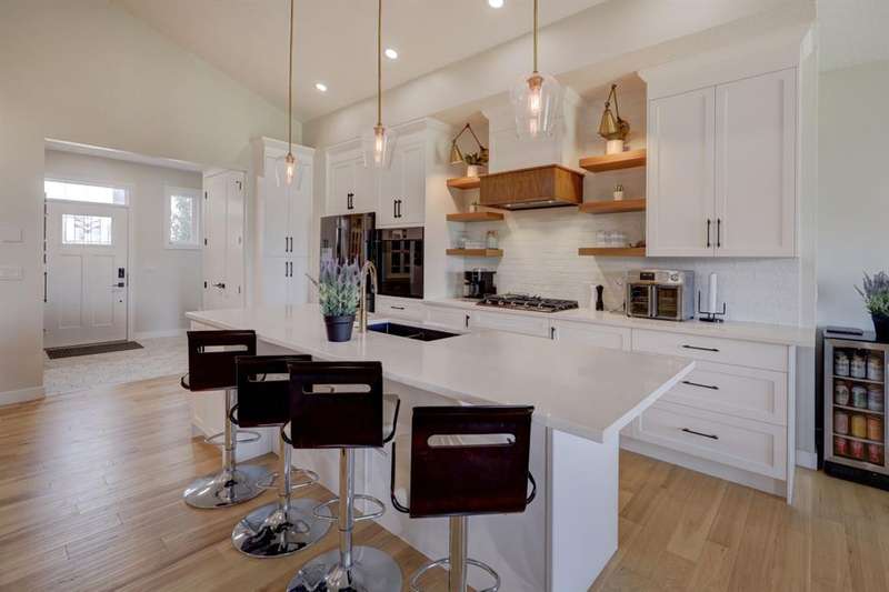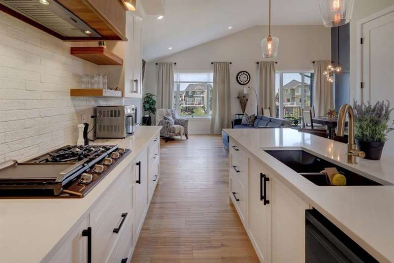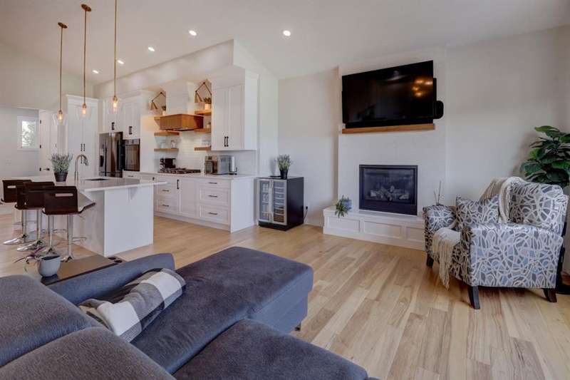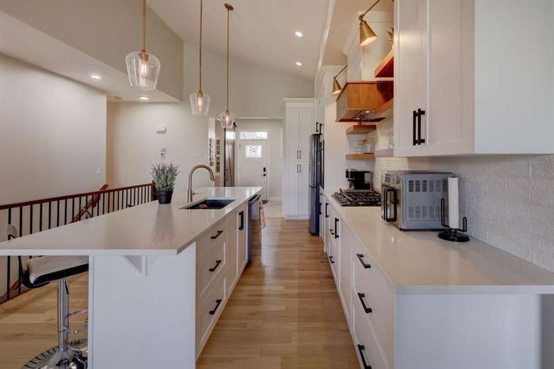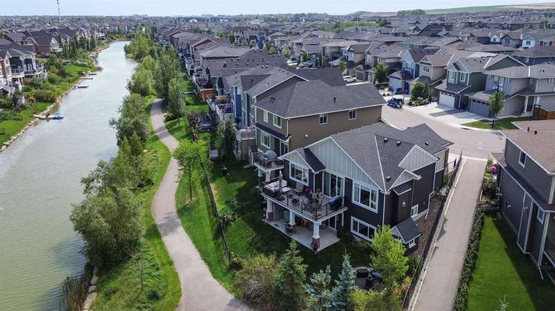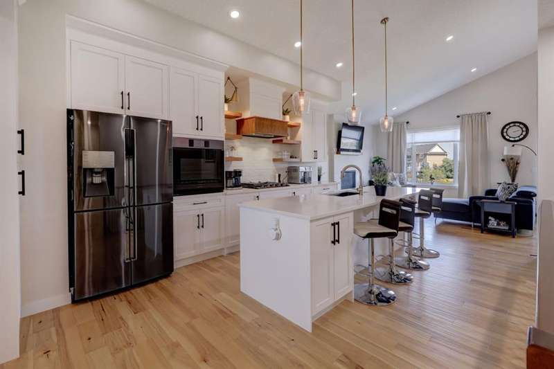 Beautifully Upgraded Bungalow on the Canals! This rare 4 bedroom, 4 bathroom home with a main floor office offers over 3000sqft of thoughtfully designed living space and a desirable west facing backyard overlooking the water. Step inside to find soaring vaulted ceilings, expansive windows that capture the canal views, warm hardwood floors, custom lighting and an abundance of built-in’s throughout. the freshly painted main floor showcases a dream kitchen with quartz countertops, SS appliance package, a statement hood fan, large Island, walk in pantry plus an additional wall pantry. The open concept design flows seamlessly into the dinning and living areas, while patio doors lead to the spacious upper deck complete with gas and water lines. The primary retreat enjoys peaceful canal views, double door entry, walk in closet and a luxurious 5pc ensuite. Another bedroom, a full bathroom, custom mud room and an upgraded laundry room with new cabinetry, pull out racks and countertop compete the main level. The fully finished lower level is perfect for entertaining or relaxing, featuring a large Rec room with wet bar, west facing windows and walkout access to the covered patio and fire pit area. Two additional bedrooms are located downstairs including one with a private ensuite, plus a versatile flex room with barn doors, ideal for a gym, office or hobby space. Upgrades includes new appliances, some new cabinetry throughout, main floor lighting and LED pot lights, new A/C, new water softener and more! This Canal front property combines modern updates with exceptional functionality and is an absolute must see! Book a showing today