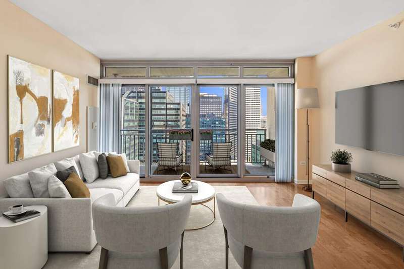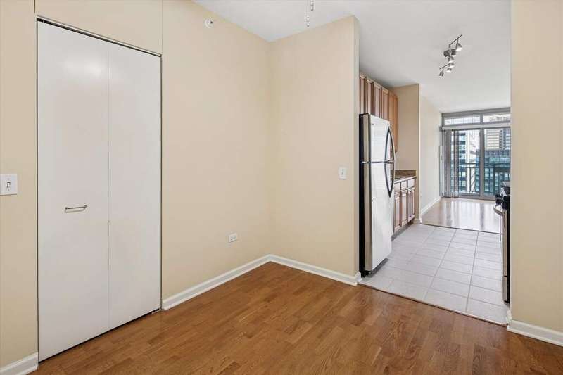 You're going to love this bright, east-facing Junior 1-Bedroom condo at Park Alexandria! Situated on a high floor, this home boasts stunning city views that will greet you every morning. The original studio layout has been modified with a partial wall to create a more private, separate bedroom. Step inside and you'll find hardwood floors flowing throughout. The island kitchen is a chef's delight, featuring stainless steel appliances, 42-inch maple cabinets, and a granite island/breakfast bar that seamlessly opens into the spacious living room area, perfect for entertaining. The home's highlight is the large private balcony that offers an amazing spot to take in the beautiful cityscape. With great closet space, you'll have plenty of storage. This is the perfect in-town residence or first home. Park Alexandria is a full-amenity building offering residents an incredible lifestyle, including a 24-hour door person, 9,000 sq. ft. outdoor terrace with a convenient dog run, exercise room, party/meeting room, and 2 fully furnished guest suites. Includes garage parking space (P-269) and an exterior storage cage (#45).