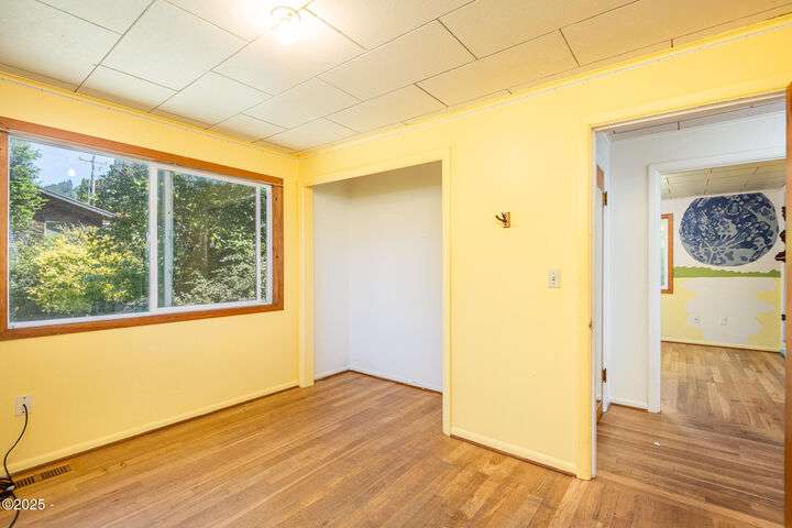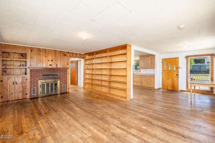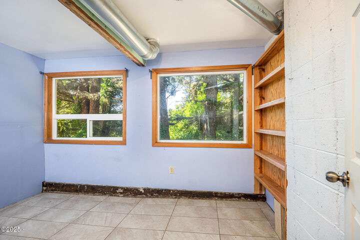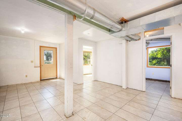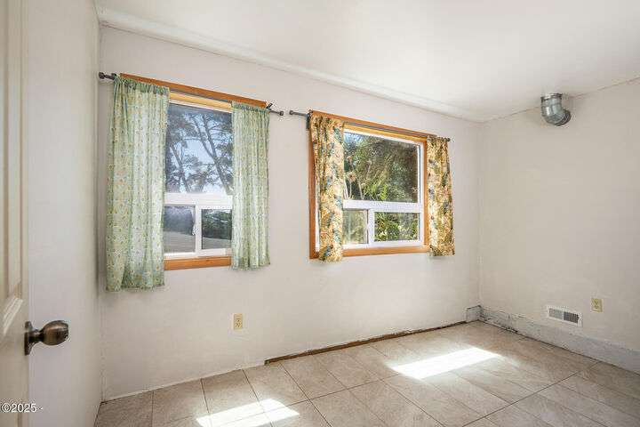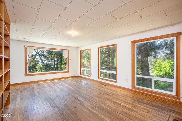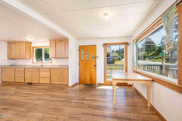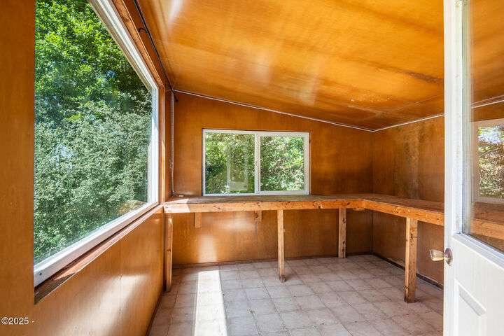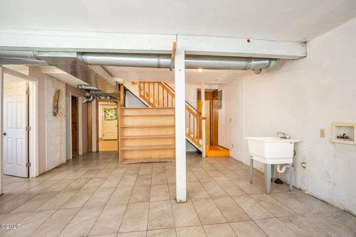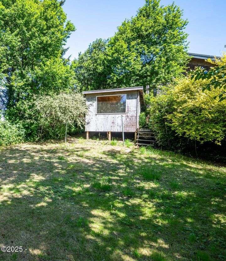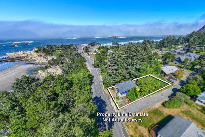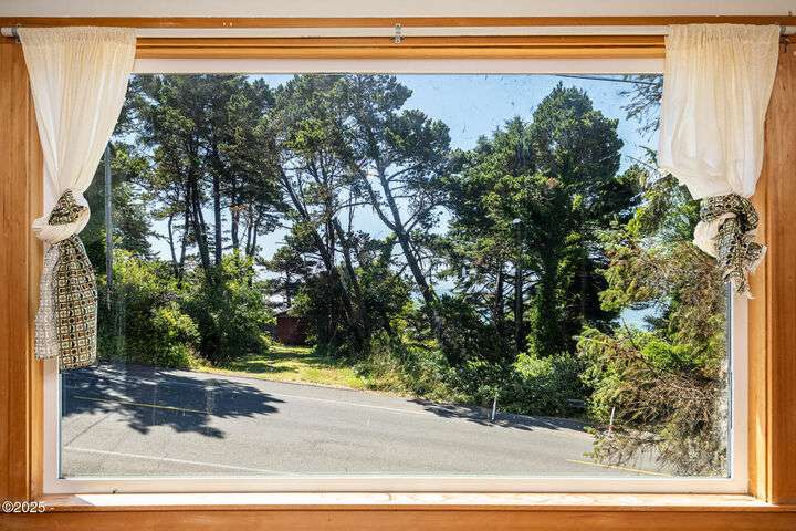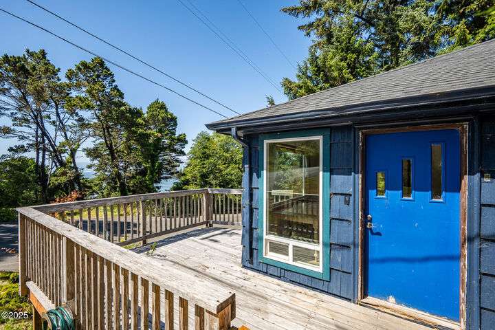 This ocean view house is located up the hill from Otter Rock beach access and it has a deck with an ocean view! There's a good sized kitchen with updated cabinets and countertop and a deep, under counter mounted, stainless steel sink. The dining area has an ocean view and the living room has big windows, an ocean view, oak flooring, a wood burning fireplace and built in shelving. There are also a full bath and two bedrooms on the main floor. The lower level has a big room with a tile floor, utility sink , washer/dryer hookups and an entry door. There are two bonus rooms, a bathroom with a tile shower and a bedroom with an entry door. You'll find a shed in the back yard. that could be used for an art studio. This home needs work and is offered ''As Is'