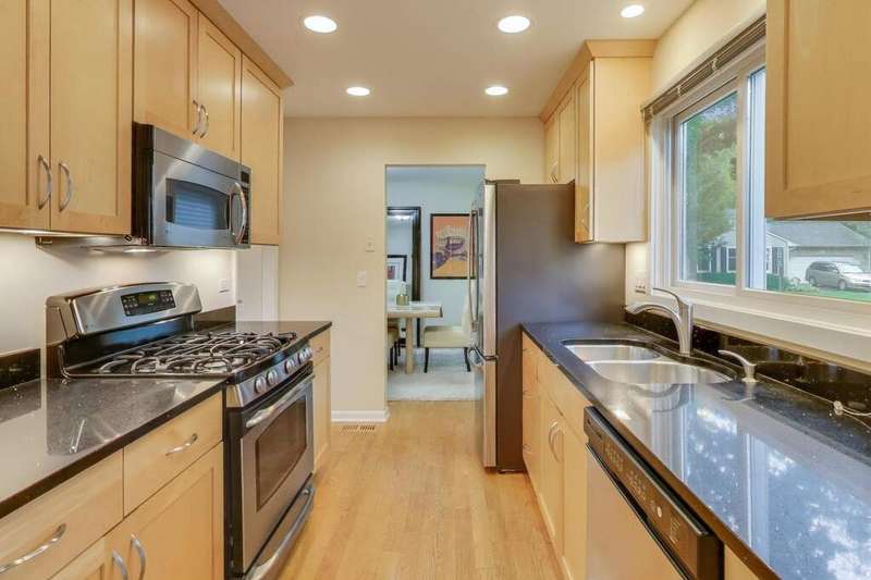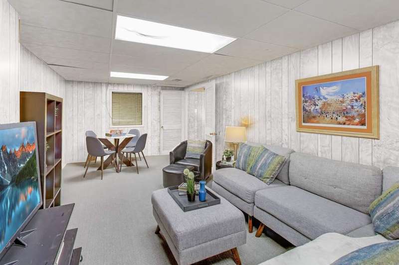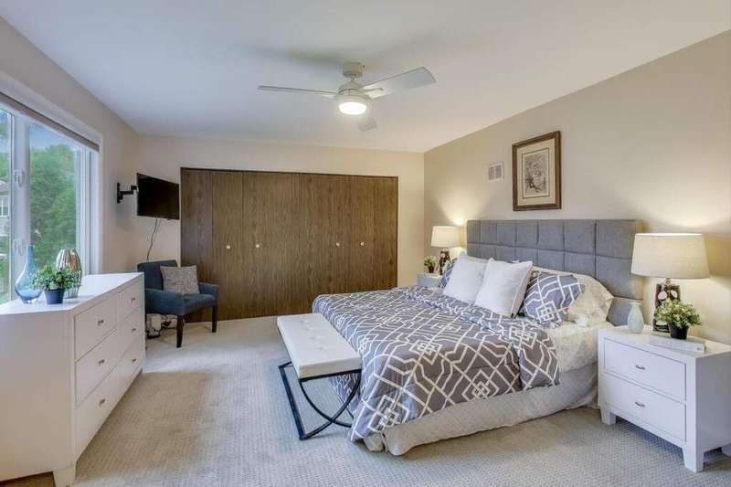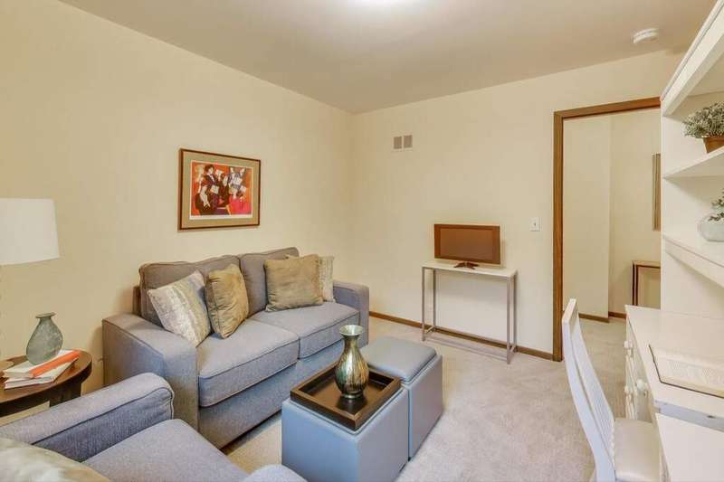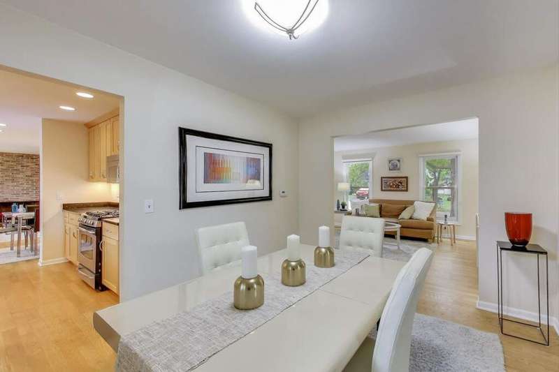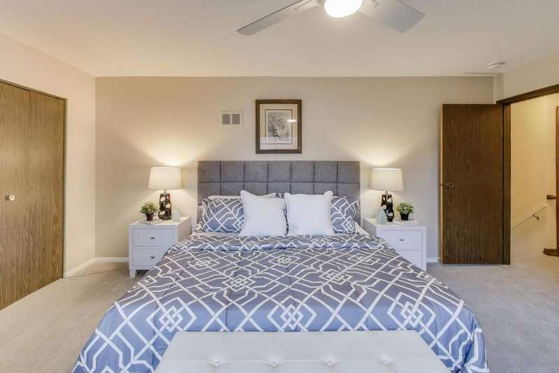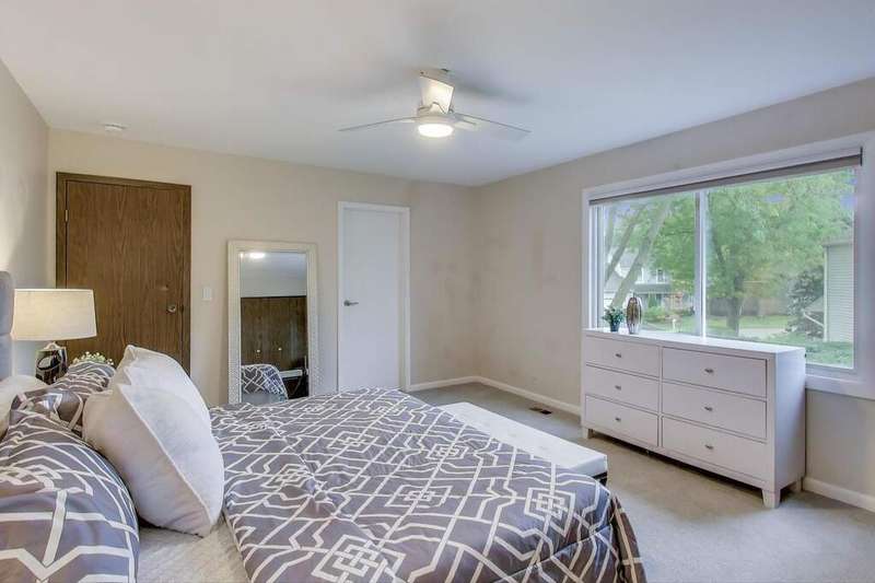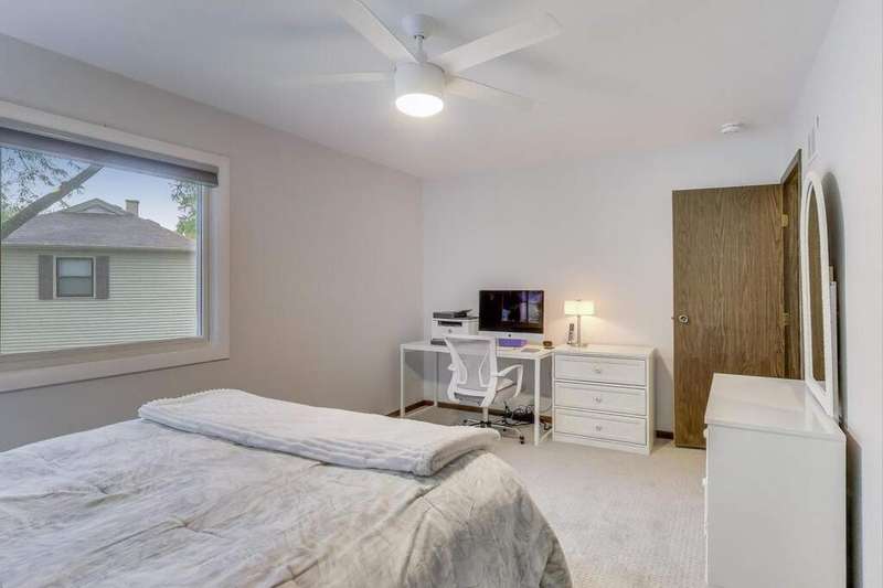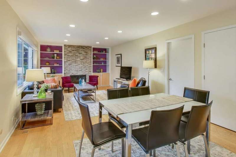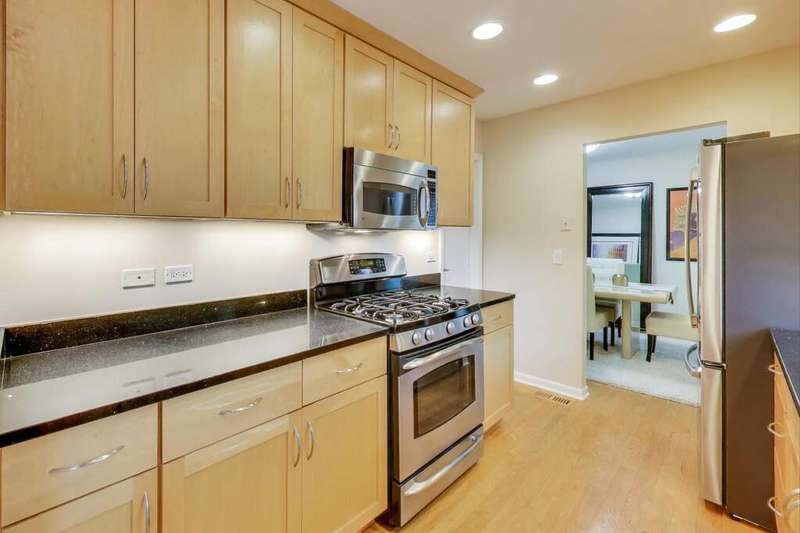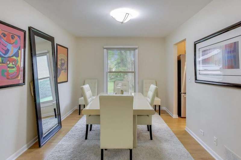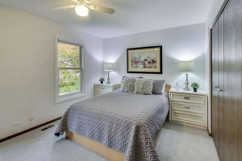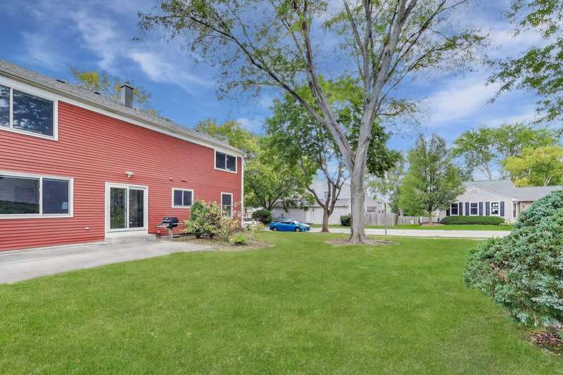 Highly Desirable 5 Bedroom (4 "Up") , 2 1/2 Bath Home in Buffalo Grove, in Award Winning Stevenson High School District 96! Impeccably Maintained Home with Almost New Roof & Windows! Situated on a corner lot, home has been recently refreshed and is ready to impress. Main entry foyer leads into a bright living/sitting room. The main level features hardwood floors throughout. A spacious family room with an eat in kitchen is perfect for entertaining, with built-in bookshelves, a wood burning fireplace, and generous natural light. The kitchen offers quartz countertops, stainless steel appliances (including a new refrigerator in 2022), and a "walk-in" pantry. A formal dining room links the kitchen to the living room in seamless flow. Upstairs you will find 4 generously sized bedrooms and a beautifully renovated second bathroom. The primary suite accommodates a king-size setup including dressers and nightstands, plus its own en-suite bathroom. A laundry chute adds everyday convenience. Brand-new carpeting installed throughout the upstairs and basement (2025). The finished basement extends your living space with a recreation area and a fifth bedroom - perfect for guests. There is also a spacious utility/storage room with a new furnace (2024) and a Whirlpool washer and dryer (2022). New windows (2022) have been installed in both the home and garage. The two-car attached garage has tons of additional built-in storage space. Outside, the home features a newly replaced tear-off roof with gutters and a leaf-guard system (2023). Mature trees and a paved patio create a tranquil backyard retreat. Directly across the street is a walkway to 'Children's Park' and playground. Just a few blocks from the heart of historic downtown Long Grove, provides easy access to shopping and dining! This one won't last long!