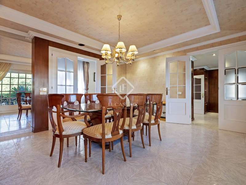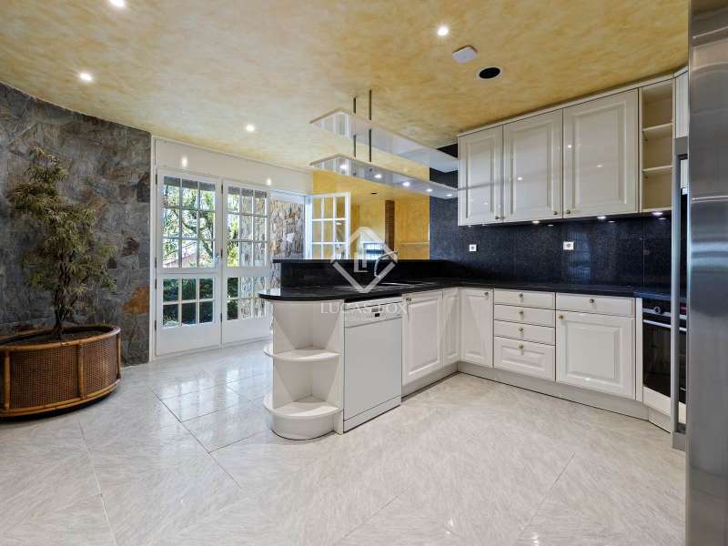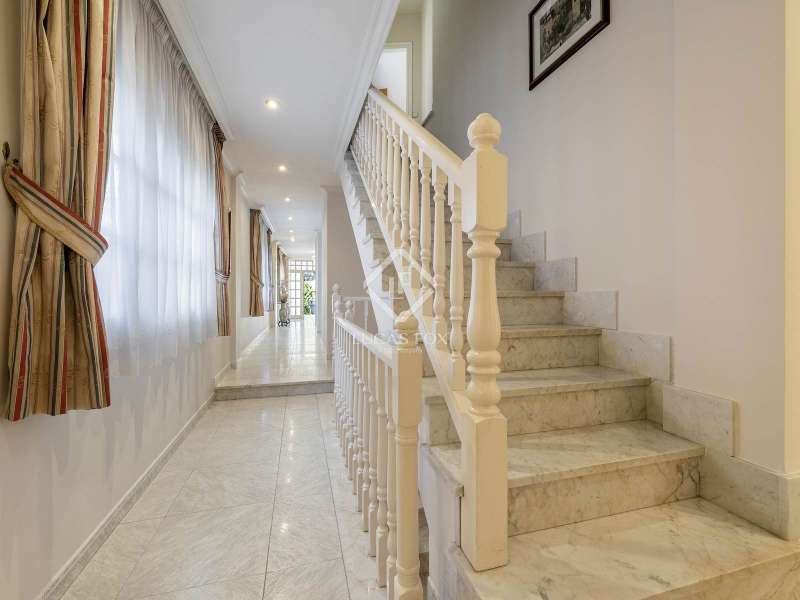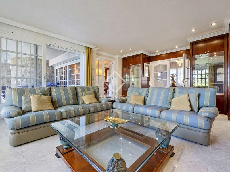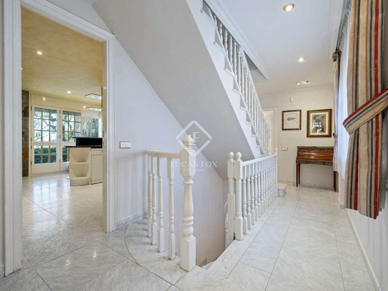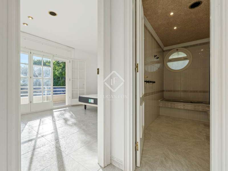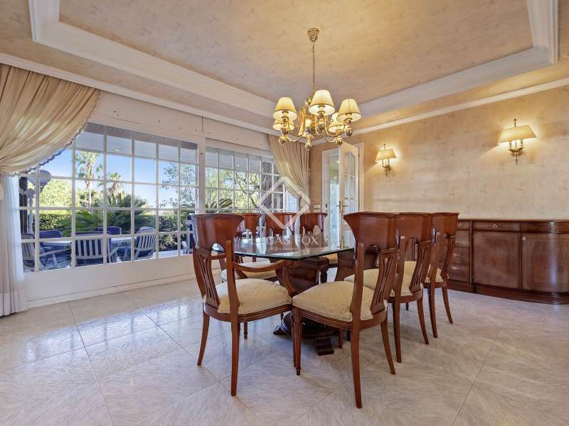 Lucas Fox presents this magnificent and elegant home in the prestigious Cala Romana development , in a peaceful and exclusive setting. The property has a surface area of 595 m² on a 1250 m² plot with a well-kept garden that welcomes us. Upon entering, a spectacular entrance hall leads us to the impressive main living room , which is complemented by a large library area with a cozy fireplace. Next, we find a spacious dining room that connects directly to a dreamy kitchen, complete with a dining area also equipped with a fireplace. From the kitchen, there is access to a sunny terrace, ideal for enjoying meals al fresco. In the west wing of the villa, there are four double bedrooms, one with a private bathroom. All rooms have built-in wardrobes and large windows that allow plenty of natural light. The property also has a dressing room, adding even more comfort. On the first floor, a spectacular attic bedroom awaits us, divided into three spaces: a bedroom, a dressing room, and a bathroom. From here, there's access to a terrace with panoramic views. On the ground floor, there is a summer dining room with access to a cool terrace. The property features a spacious wine cellar and generous parking space for several vehicles. The materials used in the construction are of high quality, such as aluminum frames with double glazing, high-security motorized blinds, hydraulic underfloor heating , marble floors, and a marble-clad master bathroom . The land, surrounded by Mediterranean trees, offers a beautiful and comfortable garden, as well as a swimming pool that invites you to enjoy the warm summers. This unique property represents an exceptional opportunity for those seeking a high-end residence in an exclusive setting. For more information or to arrange a viewing, please contact us.