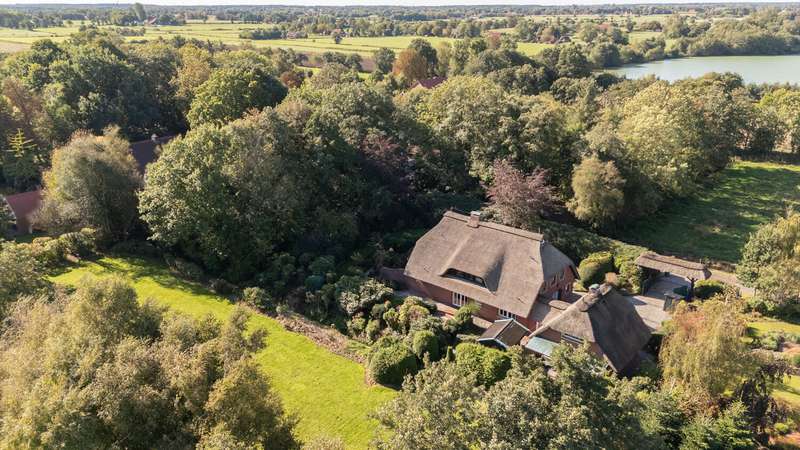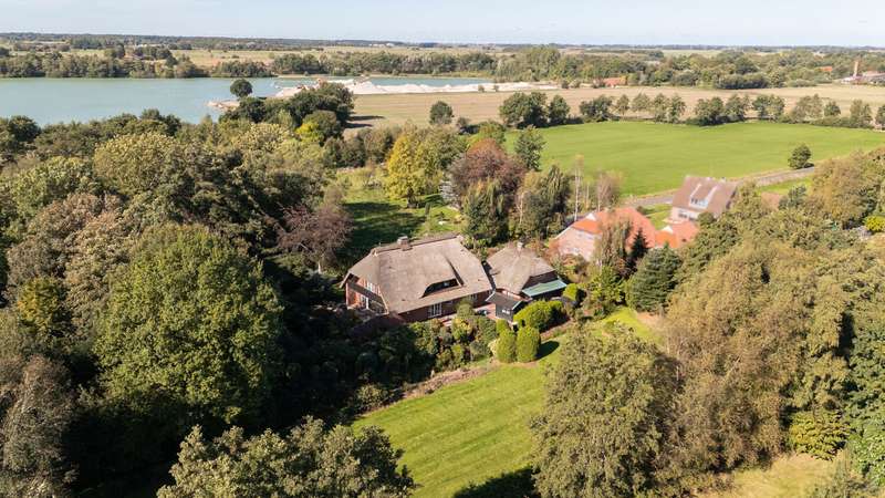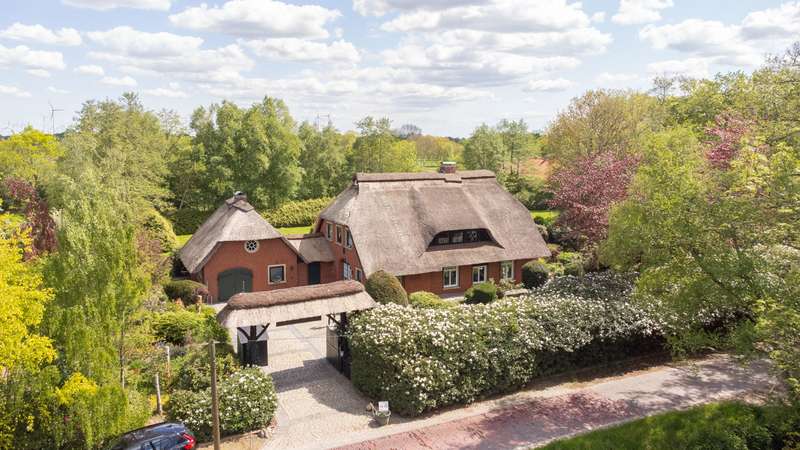 This impressive property in the unmistakable East Frisian style combines traditional construction and modern living comfort at the highest level. The property impresses with a generous living space of approx. 207 m², spread over two completely self-contained residential units, and a spacious plot of approx. 3,488 m². Even the driveway to the property, secured by a high-quality gate and elegant paving, conveys a feeling of exclusivity and tranquillity. The lovingly landscaped grounds offer a variety of uses and include beautifully manicured rhododendron and arborvitae hedges, trees and idyllic garden areas that invite you to linger. In addition to its aesthetic beauty, the high-quality renovated thatched roof promises first-class climate comfort and longevity. This claim is continued inside the house with selected materials and a well thought-out room layout: -High-quality floor coverings made of handmade tiles and fine real wood lend the rooms a timelessly elegant ambience. -Partial underfloor heating provides cozy warmth in the cooler months. -All living areas are fitted with aluminum exterior blinds to ensure sun protection and privacy. Two stylish built-in fireplaces create a cozy atmosphere: one is located in the dining area, the other in the fireplace room. -The large fitted kitchen on the first floor, in typical East Frisian style, combines country house charm with modern functionality. Thanks to the two separate living units, the property is ideal for a large family as well as for multi-generational living or for combining living and working. The ground-floor habitability of the main areas is an additional comfort feature. The park-like outdoor area leaves nothing to be desired: -Two spacious terraces invite you to enjoy a cozy get-together. -A covered loggia/balcony on the upper floor offers a wonderful view of the garden. -A solid garage, an additional bicycle room, a workshop and a charming garden shed offer space for hobbies and practical purposes. -A groundwater pump and a rainwater cistern facilitate garden irrigation. In addition to the idyllic ambience, the property boasts state-of-the-art infrastructure. A fiber optic connection guarantees fast internet and makes the property fit for the digital future. This dreamlike property combines traditional flair with the highest level of living comfort and offers a unique living experience in a quiet outdoor location. A special highlight for nature lovers and anyone looking for something special. Anyone who loves East Frisia will also love this property. See for yourself and arrange a viewing today.