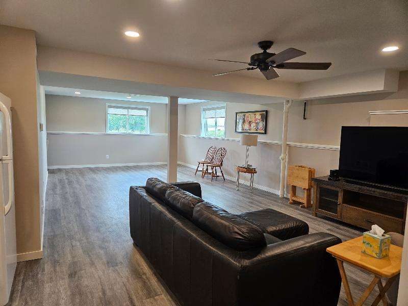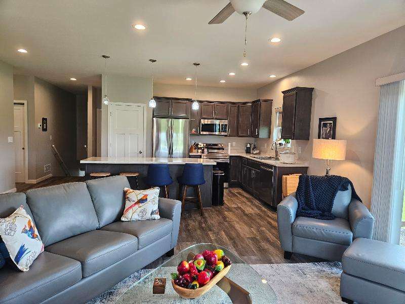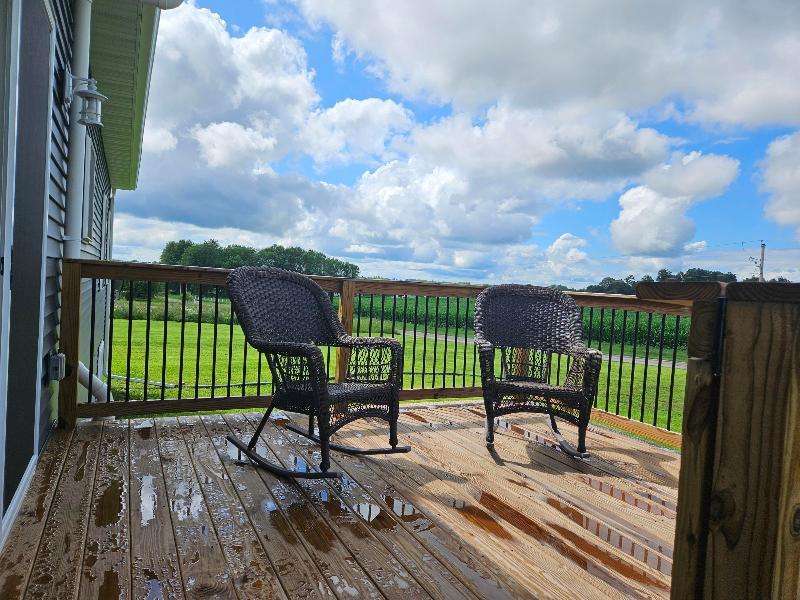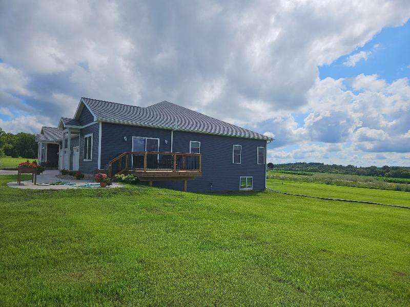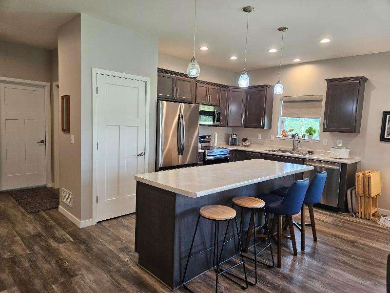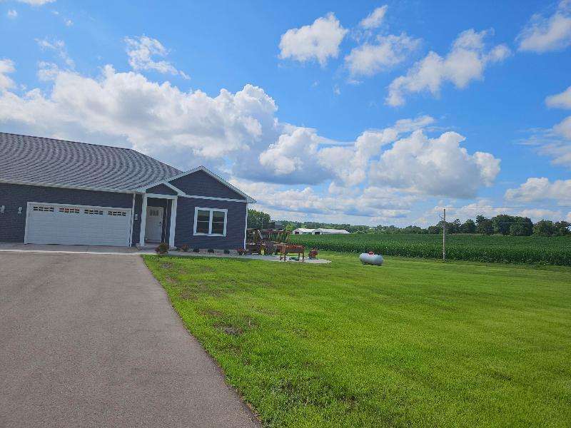 An incredible opportunity to own this almost new ranch condo on just over an acre lot. The open concept layout welcomes you at the front door. The great room is open to the eat-in kitchen & has a patio door to deck. The kitchen has a large island with seating for 4, plenty of counter and cabinet space as well as a pantry. The LVP is throughout, except the 3 bedrooms. The primary has a WIC & en-suite bath w/walk-in shower. 2 other bedrooms have double door closets. Laundry is conveniently located between bedrooms & kitchen. Sellers had basement finished with half bath, family room, & kitchenette. There is great storage and potential for an office as well. Shared well and shared septic. And you can have an outbuilding. Just minutes from town. A great place to call home!