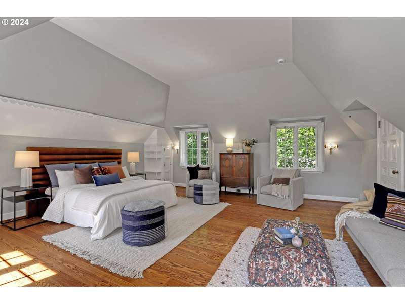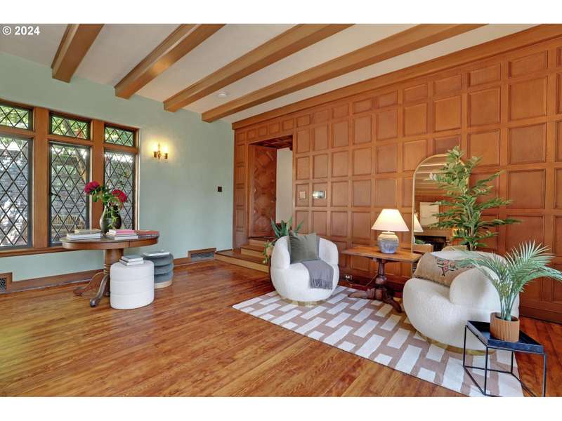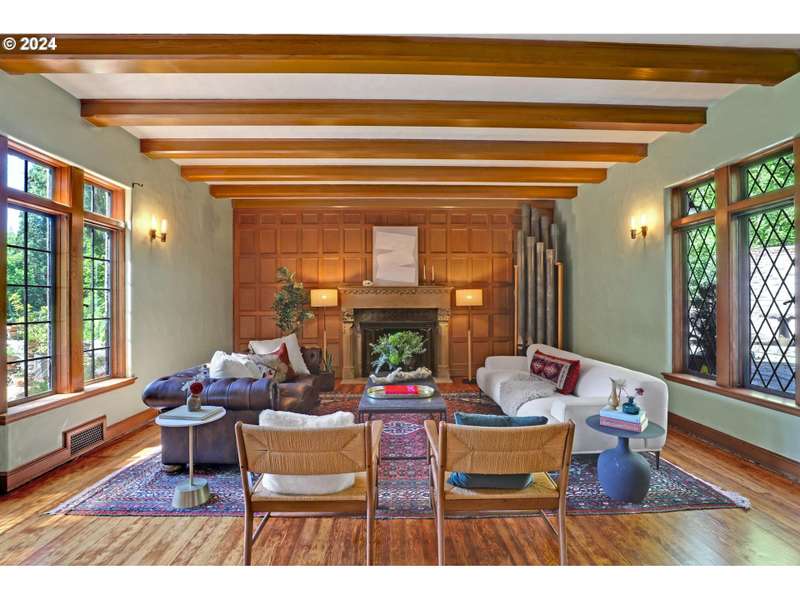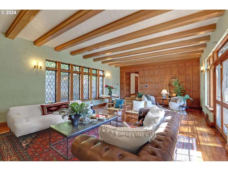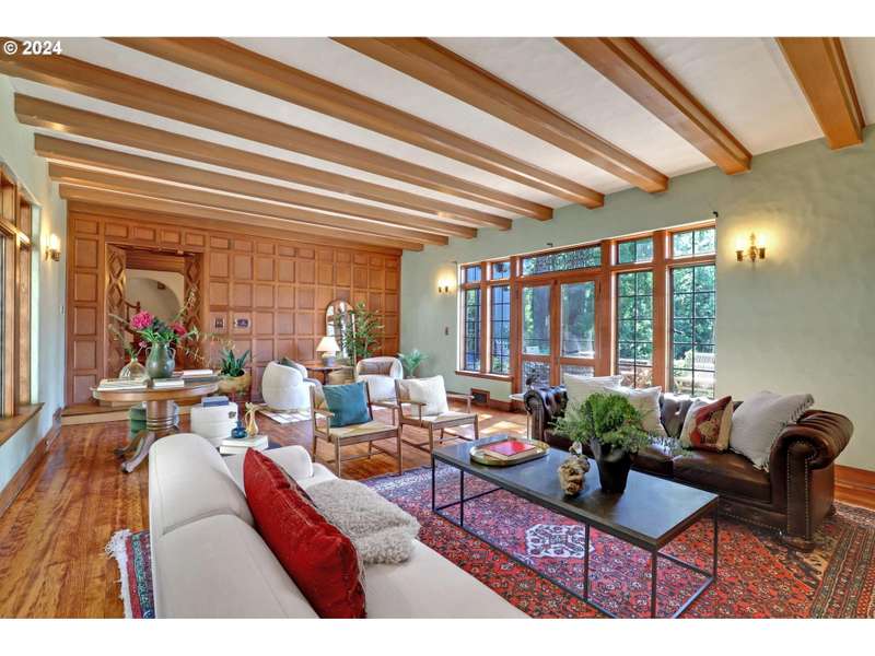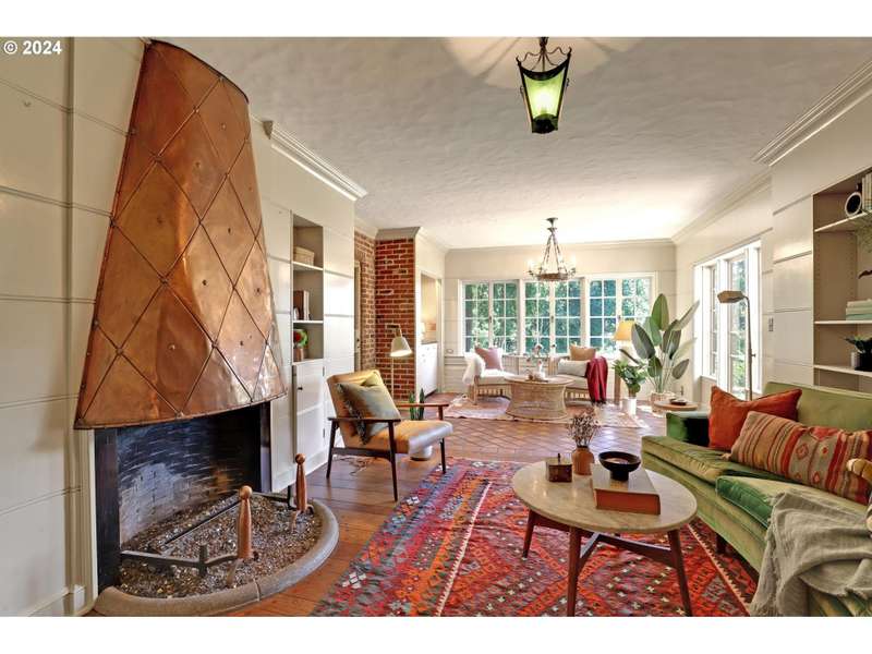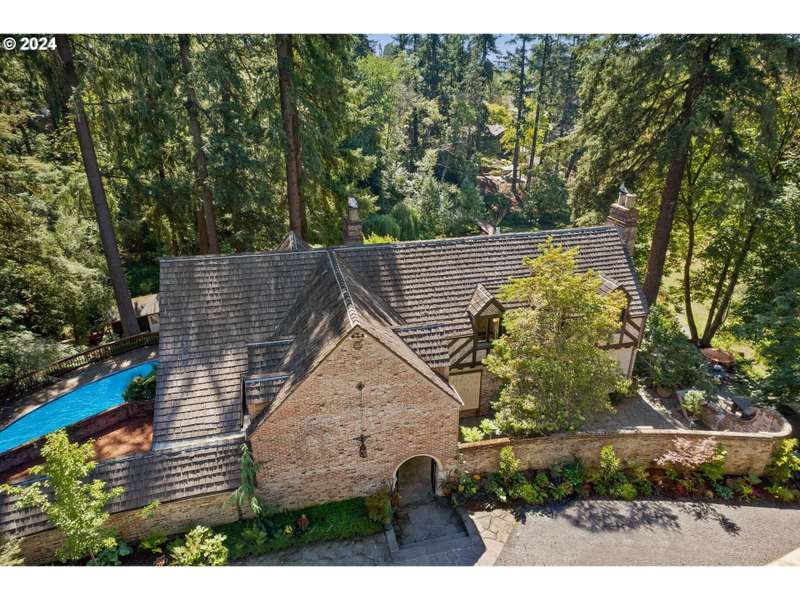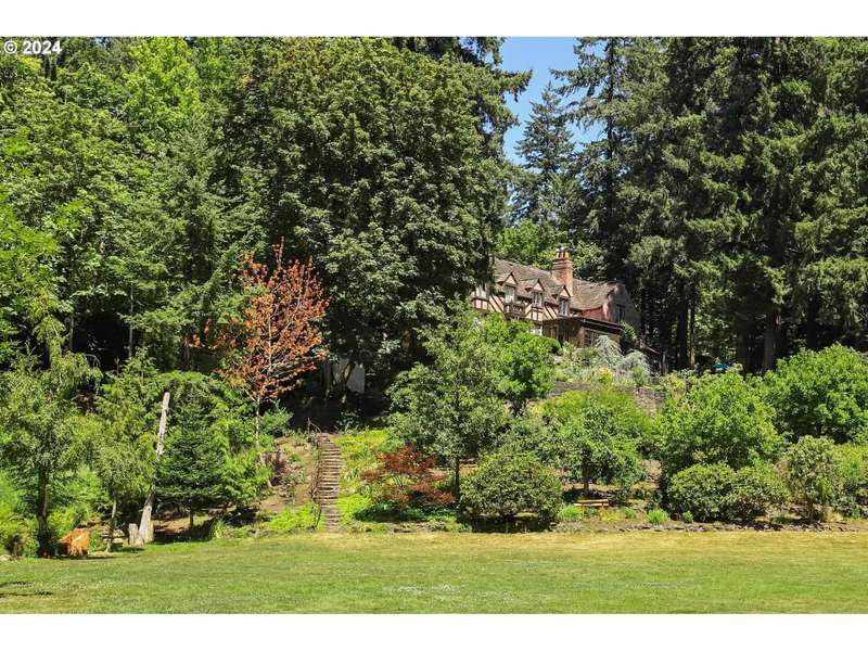 This architectural masterpiece is just waiting for the right buyer with true appreciation for old, quality, character and the desire to add final personal touches. Enter through the original copper front door to discover a 1933 Tudor, radiating with charm and character. This home showcases stunning original features, including leaded glass and bullet windows, whitewashed brick, solid oak and fir floors, exposed beams, and custom built-ins, all complemented by rich wood paneling. Truly exquisite craftsmanship! HVAC has been updated - new furnaces, tankless water heaters, and ductwork. Nestled on over 4 acres of serene beauty, the property offers a tranquil escape surrounded by lush greenery, natural springs, serene ponds, meandering pathways, raised garden beds, and mature landscaping. Upstairs, you'll find five spacious bedrooms, including a primary suite with a Juliet balcony offering enchanting views of the landscaped grounds. A separate studio provides a cozy cabin like space with its own exterior access. Additional amenities include an outbuilding for storage, a double-car garage, and ample parking space. This one-of-a-kind estate is a true reflection of Oregon’s natural beauty, where history, nature, and luxury seamlessly blend. A large portion of the land has a wetland and habitat overlay and the home is an identified Historic and Cultural Resource (Polskey Residence). Original windows throughout fully functioning and restored. Please do not disturb tenants, 24 hour notice and loan preapproval or proof of funds required before viewing.