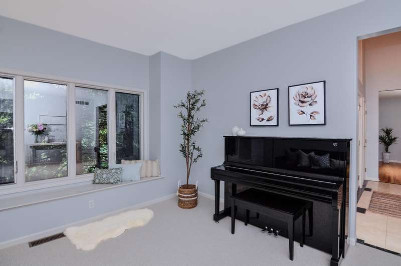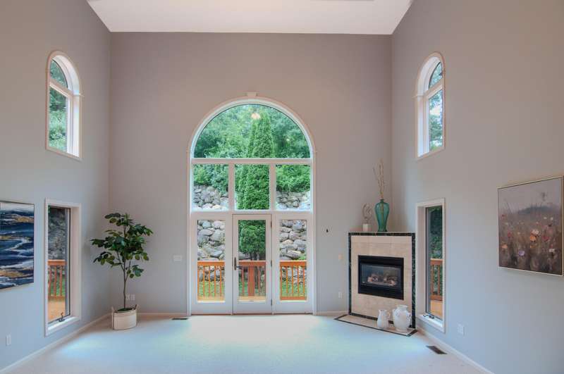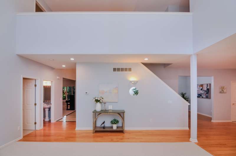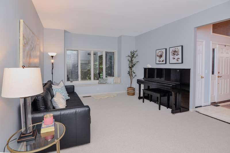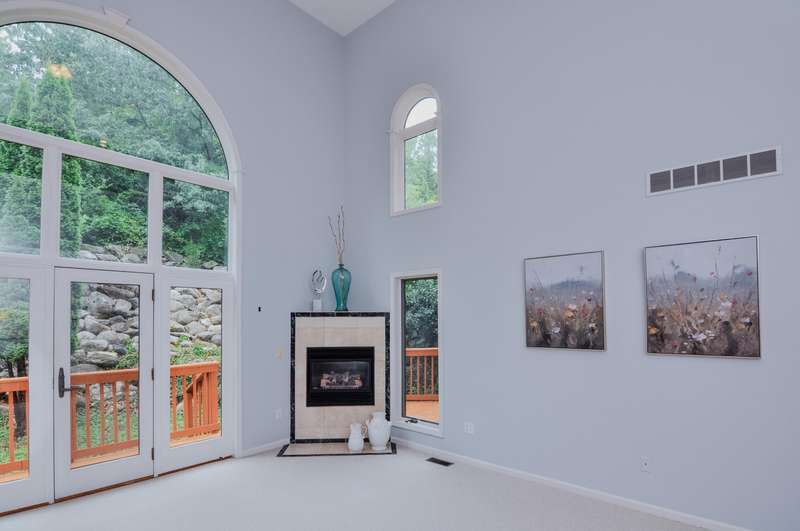 Spacious hilltop home backing to scenic Narrow Gauge Park offers privacy, wooded views, and updated landscaping. The impressive two-story foyer opens to a main floor with soaring 10' ceilings. The gourmet kitchen boasts a huge island, custom cherry cabinets, hardwood floors, granite counters, tile backsplash, and a walk-in pantry. The adjoining two-story family room features a gas fireplace and expansive windows framing beautiful park views. Also on the first floor: a formal dining room with hardwood floors and a private study. The luxurious primary suite offers a tray ceiling, walk-in closet, spa bath with Jacuzzi tub, separate shower, and a private deck. Upstairs are three spacious bedrooms, a Jack-and-Jill bath, plus another full bath.Home Energy Score of 4. Download report at stream.a