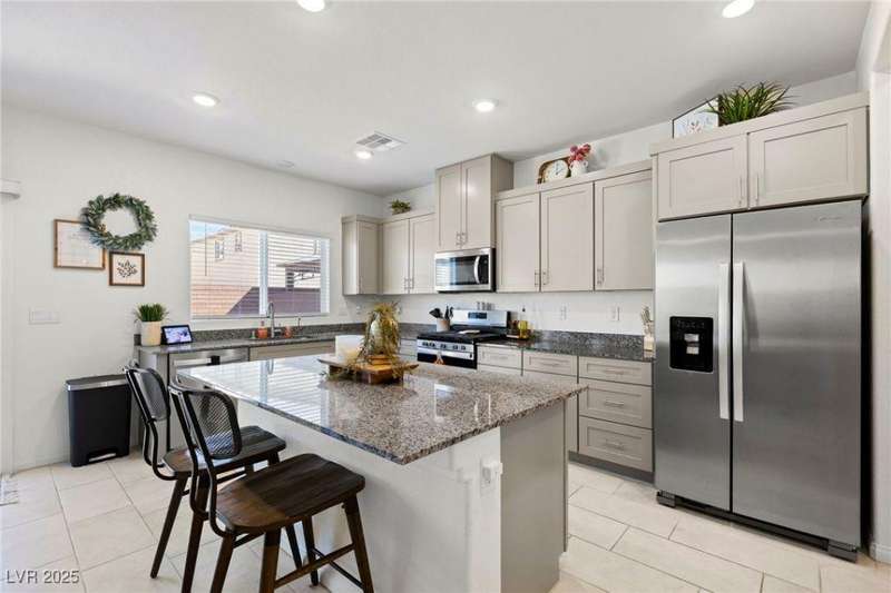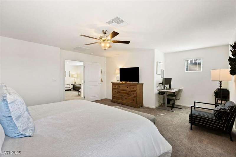 Beautifully maintained and nearly new DR Horton home located in a gated, highly sought-after community! This spacious 5-bedroom floor plan offers a full bedroom and bathroom on the first floor?perfect for guests, multi-gen living, or a private home office. Upstairs, enjoy a versatile loft space and generous room sizes throughout. This home is truly move-in ready! Enjoy mountain views, community walking trails, a private park, and easy access to Nellis AFB, with Creech AFB also within reach. Why wait to build? This stunning home is ready for you now?and seller financing is available! A great opportunity for qualified buyers looking for flexible options?reach out for details! *Solar panels will be removed with sale of the home*