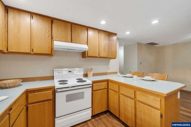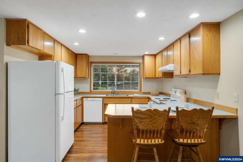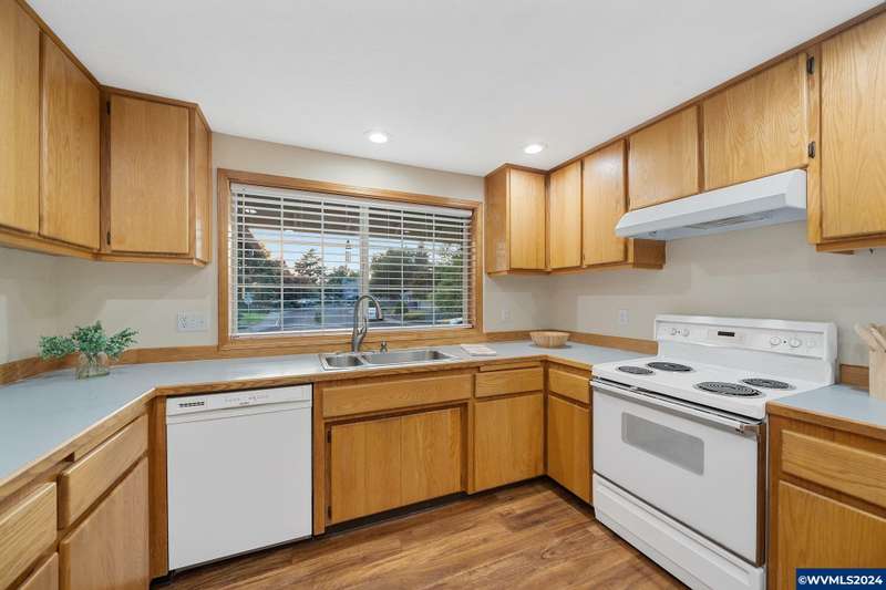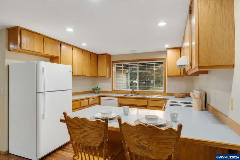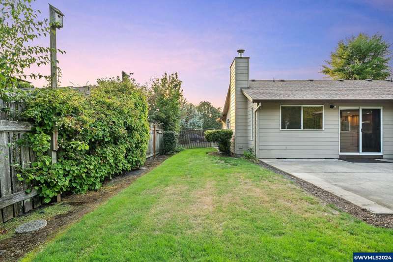 Immaculate one-level home centrally located on large lot near park & schools, move-in ready. Open living & dining with vaulted ceilings, large family room with wood flooring, open to expansive patio & private backyard. Spacious primary suite with walk-in closet & tiled shower, two other bedrooms with tub/shower. Fully fenced & well planted with UGS. Electric air heating with efficient heat pump, 2-car attached garage. Newer roof, hardwood flooring, fresh paint, all vinyl windows.