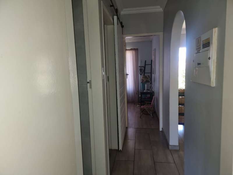 Welcome to this low maintenance face brick property, where comfort and convenience come together seamlessly. Nestled at the back of a panhandle erf, this property offers a peaceful and secure lifestyle — perfectly located within walking distance of the golf course. This inviting home features 3 spacious bedrooms and 2 modern bathrooms, including a main bedroom with an en-suite. The well-appointed kitchen boasts a gas stove, ideal for those who love to cook, while the open-plan lounge and dining area provide a warm, welcoming atmosphere, complete with a ceiling fan and laminated flooring throughout. Step outside to a neat, partially walled garden — a safe haven for children and pets to enjoy. Yes, it’s pet friendly! With its prime location near the golf course, this home combines tranquillity with convenience, offering easy access to main routes and nearby amenities.