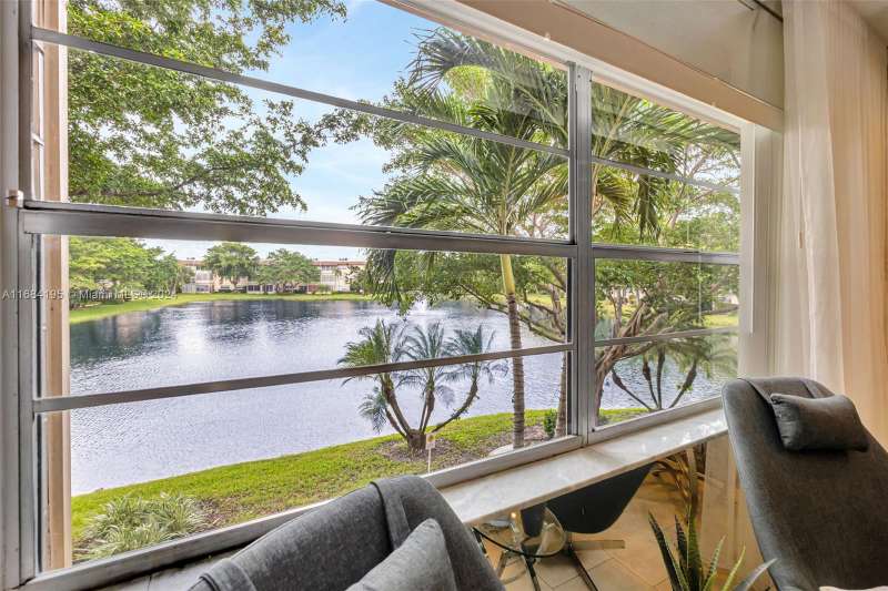 Beautifully updated unit in the popular Hawaiian Gardens Phase 4, Dogwood building. As soon as you step inside, you'll be captivated by the stunning water views & the elegance of the unit. Gorgeous kitchen featuring stainless steel appliances & recessed lighting. Living room highlighted by a charming stone wall, tile flooring throughout. Large & bright Florida room to enjoy water views. This turnkey property is tastefully furnished & ready for you to move in. New AC, Central Vacuum, stunning bathroom with new tile shower & a stylish vanity! Wow, this one has it all! Comes with an extra storage & Internet is included! Community with lots of activities, Heated pool, gym, shuffleboard and more. Peaceful place to walk around the lakes, close to restaurants, highways and shopping!