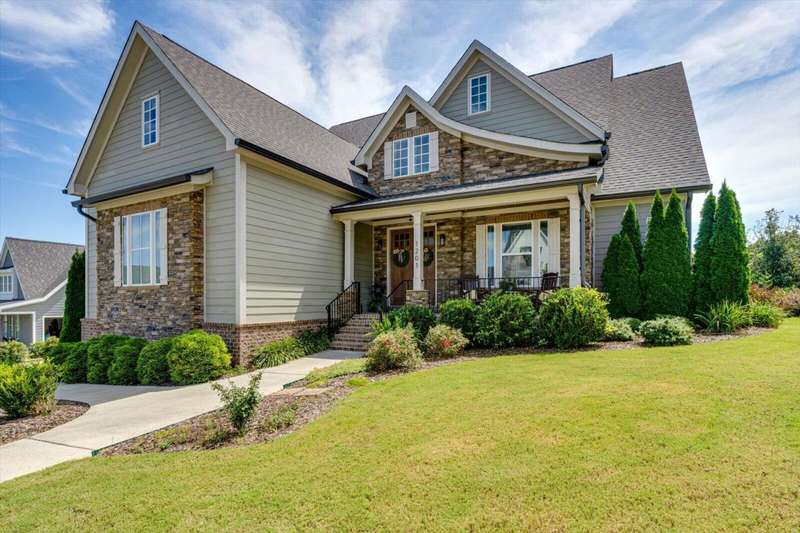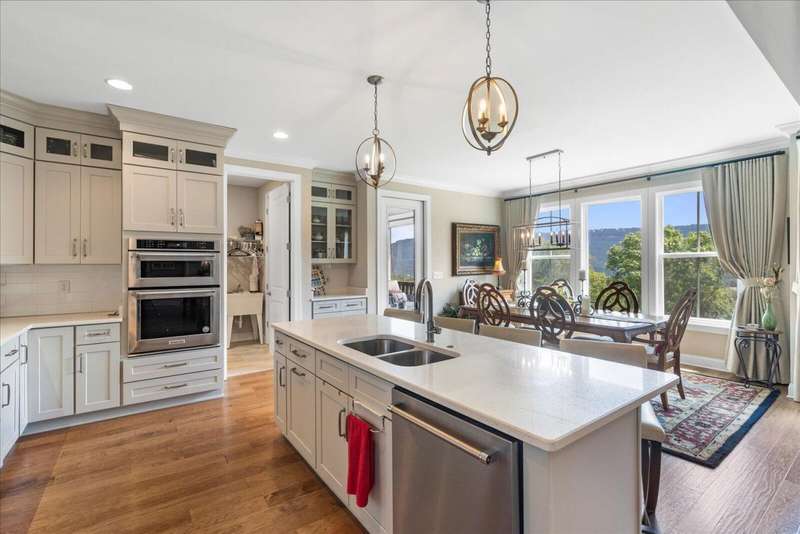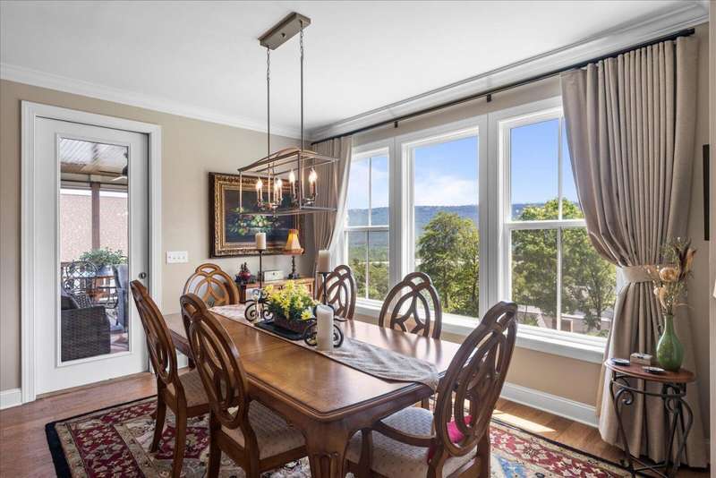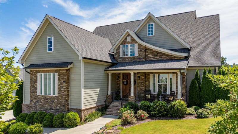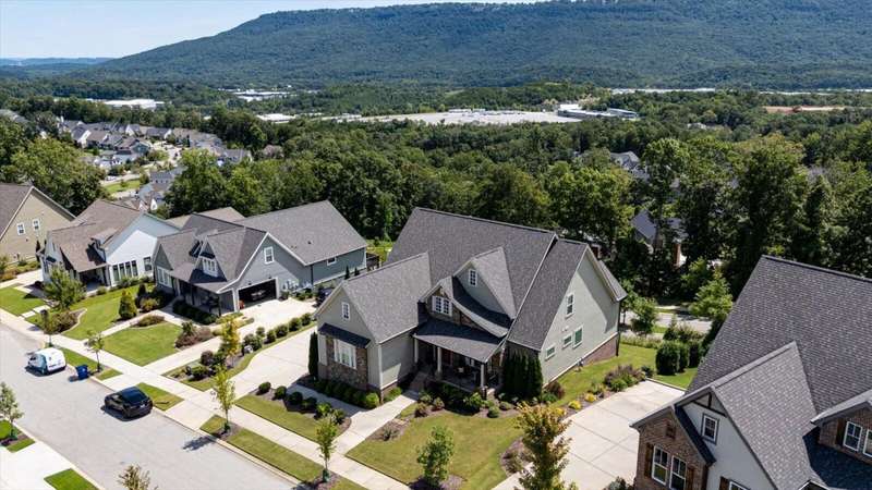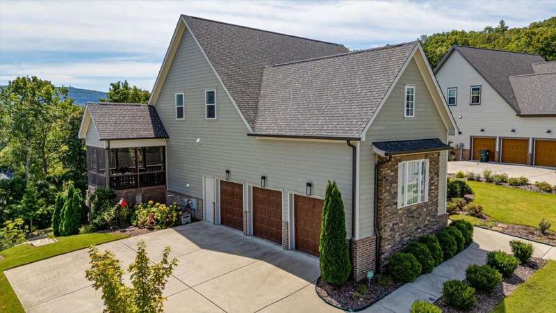 Welcome to the prestigious Black Creek Community, where luxury combines with resort-style living at its best. This exclusive neighborhood offers unparalleled amenities including a championship golf course, clubhouse, dining, swimming pool, fitness center, and miles of hiking trails. This beautifully designed home at 1201 LeConte Circle was custom built by Curate Home Builders and offers many unique features. The open-concept floor plan boasts outstanding views, three bedrooms, three full bathrooms, engineered hardwoods, decorative lighting, the primary suite on main level, bonus/recreation room, and three car garage. You will be welcomed by a covered front porch and double 8 foot doors that open into the attractive two story foyer. A well appointed guest bedroom and full bathroom are located off of the hallway. The centrally located Great Room features a soaring vaulted ceiling, creating a bright and airy atmosphere. The gas log fireplace and recessed lighting add to the relaxed ambiance, and this living space is open to the kitchen and dining area. Spacious primary bedroom is located off of the Great Room and includes a sitting area, tray ceiling, crown molding, linen closet and beautiful views. Primary bathroom includes a separate bathtub, glass shower with heat lamp, double sink vanities, and walk-in closet. The gourmet kitchen offers all stainless appliances, soft-close cabinetry, tile backsplash, large center island with double stainless sink, built-in cabinetry, pendant lighting, and plenty of room for seating. Kitchen/dining area includes a custom built-in china cabinet, as well as a large picture window. Spacious screened porch off of the kitchen provides the perfect retreat to relax and enjoy the stunning mountain views, and includes a gas stove and ceiling fan. Upstairs you will find the third bedroom with excellent closet space, as well as a full bathroom. Spacious bonus room is located upstairs, and includes an alcove with built-in desk. You will also find excellent storage space on the second level with two separate walk-in attics, one of which could easily be converted to another bedroom or flex space. Three car garage includes an EV electric car charging outlet and the extended driveway has additional space for parking. Other amenities include 9 foot ceilings on the first and second levels and 8 foot doors on the main level. Outdoor areas are professionally landscaped, and include a RainBird irrigation system. Whether you are seeking tranquility, recreation, or a strong sense of community, Black Creek offers a wonderful blend of luxurious living along with the convenience of being only minutes from downtown Chattanooga.